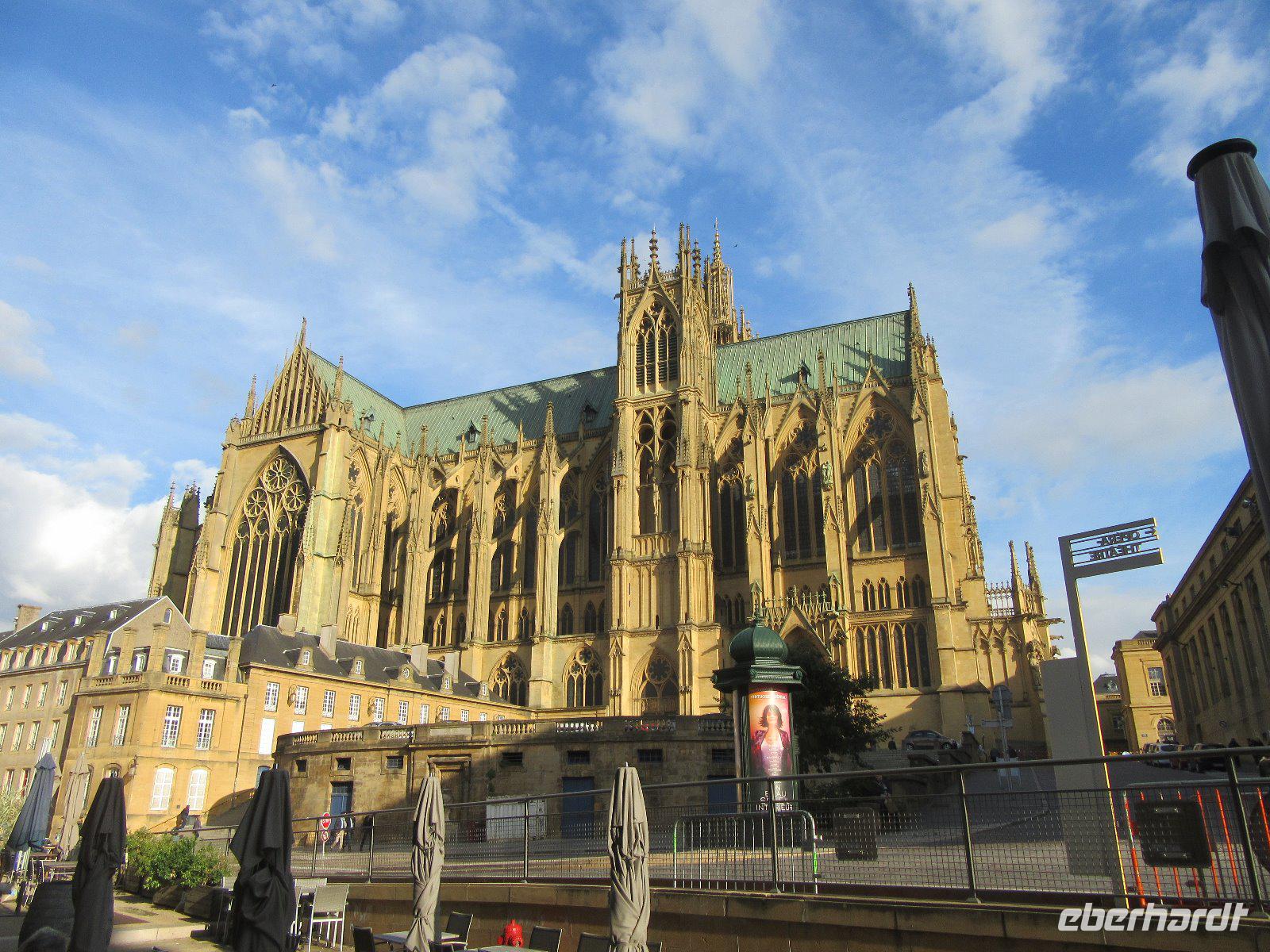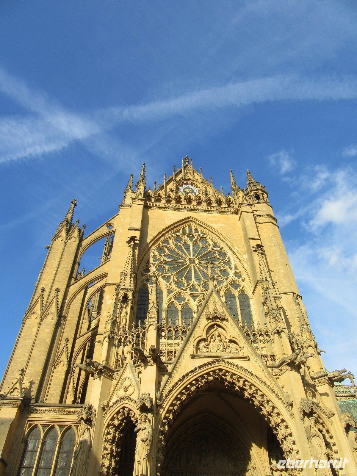 Nach dem Frühstück machten wir uns auf den Weg nach Metz, wo wir am Nachmittag ankamen und unsere letzte Nacht verbrachten. Es kam uns ganz merkwürdig vor, dass die unbeschwerten Urlaubstage schon vorbei sein sollten. Wir haben uns doch gerade erst auf den Weg an die Loire gemacht oder? Um die lange Fahrt unterhaltsam zu gestalten, hörten wir eine amüsante „Gebrauchsanweisung" über die Französin und ihre Eigenheiten. In Metz angekommen durfte ein Besuch der Kathedrale Saint-Étienne, ein Meisterwerk gotischer Baukunst, nicht fehlen. Die Besonderheit der Kathedrale sind ihre vielen berühmten Glasfenster, vor allem diejenigen des französischen Malers polnisch-jüdischer Herkunft Marc Chagall, der zu den bedeutendsten Künstlern des 20. Jahrhunderts zählt. Weiter ging es zu den alten Festungsmauern und der Porte des Allemands, eine historische Toranlage, die als einzige von 17 mittelalterlichen Stadttoren erhalten geblieben ist. Vorbei an prächtigen Gartenanlagen gelangten wir zurück zum Bus und erreichten unser Hotel. Wir genossen unser letztes gemeinsames Abendessen und ließen unsere Erlebnisse der letzten Tage in gemütlicher Runde noch einmal Revue passieren. Etwas Wehmut kam schon auf........sollten die schönen Tage wirklich schon zu Ende sein?