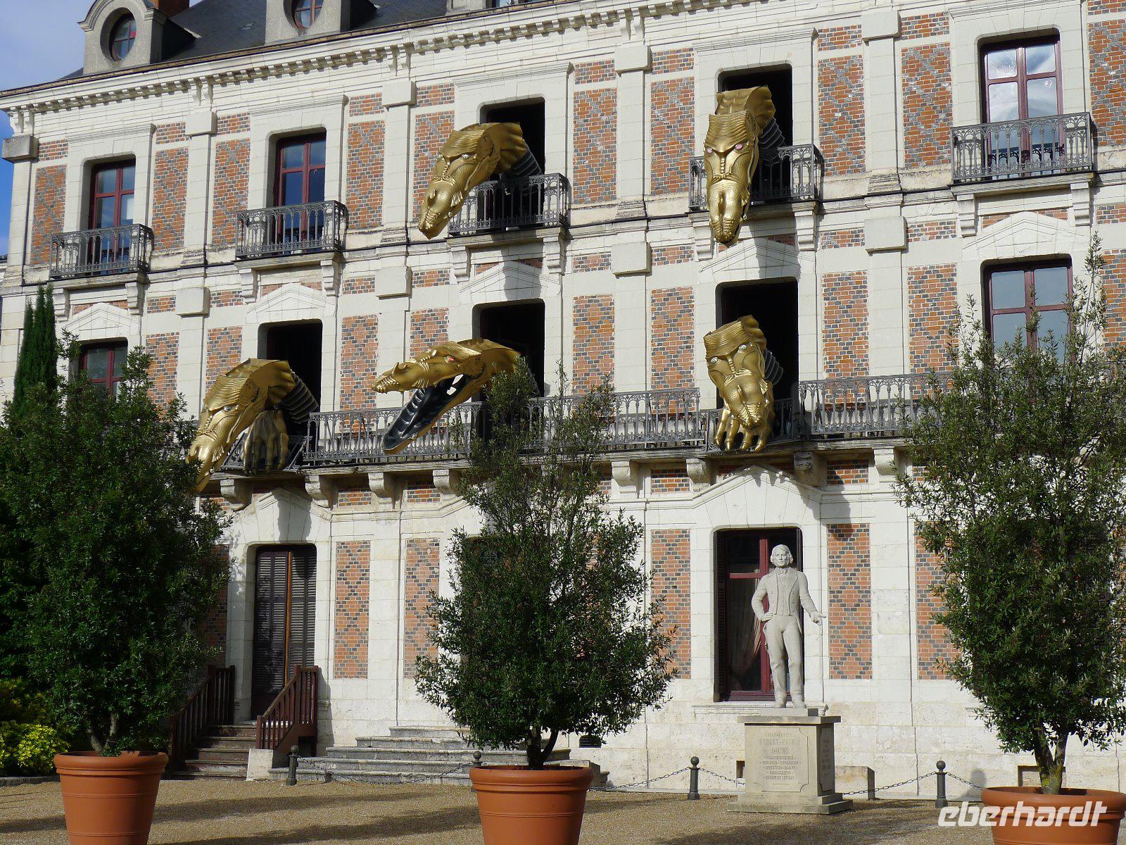 Nach einem gemeinsamen Spaziergang durch das reizvolle Beaugency mit Einkauf für unser heutiges Picknick fuhren wir mit den Rädern zum größten Schloss an der Loire, dem Château de Chambord. Auf dem Weg hatten wir unsere erste Reifenpanne. Zum Glück war unser Busfahrer Ingo nicht weit und eilte uns mit einem Ersatzrad zu Hilfe. In der Zwischenzeit genossen wir die angenehmen Temperaturen und die Sonne bei einem gemeinsamen Picknick am Fluss und machten uns bei einer Vorstellungsrunde näher miteinander bekannt. Gestärkt und mit neuem Rad erreichten wir schließlich das Schloss. Es liegt inmitten eines unglaublich großen Waldgebietes. Ideale Voraussetzungen für seinen Erbauer, König Franz I., der ein leidenschaftlicher Jäger war. In seiner langen Regierungszeit hat er jedoch nur kurze Zeit in diesem Prunk- und Jagdschloss verbracht. Mit seinem zentralen Zwinger, seinen von einer Mauer umgebenen vier Türmen und zwei Flügeln hat das Schloss fast unverändert seine ursprüngliche Gestalt beibehalten. Nach der individuellen Erkundung des Schlosses setzten wir unsere heutige Fahrradtour bis nach Blois fort. Leicht auf und ab ging es durch die landwirtschaftliche geprägte Region. Erst kurz vor Blois erreichten wir wieder ‚unsere' Loire. In Blois unternahmen wir einen gemeinsamen Stadtspaziergang und erklommen die steilen Treppenstufen, die uns zum Schloss hinaufführten. Auf dem Vorplatz des Schlosses erwartete uns eine kuriose Drachenshow. Fünf goldene Drachenköpfe ragten aus den Fenstern eines Museums hervor und boten uns eine amüsante Vorstellung. Nachdem heute schon das Schloss Chambord auf dem Programm gestanden hatte, entschlossen sich alle Gäste gegen einen weiteren Schlossbesuch in Blois und so bummelten wir durch die Altstadtgassen. Nach fast 50 Kilometern auf dem Drahtesel machte sich Müdigkeit breit und etwas erschöpft erreichten wir schließlich den Bus und machten uns auf den Weg nach Tours, wo wir unser Hotel für die nächsten fünf Nächte bezogen. Mit einem schmackhaften Abendessen schlossen wir den erlebnisreichen Tag ab. Wir genossen eine landestypische Geflügelpastete, Fischfilet mit Gemüsereis und eine der unverwechselbaren französischen Kuchen, eine tarte aux abricots.