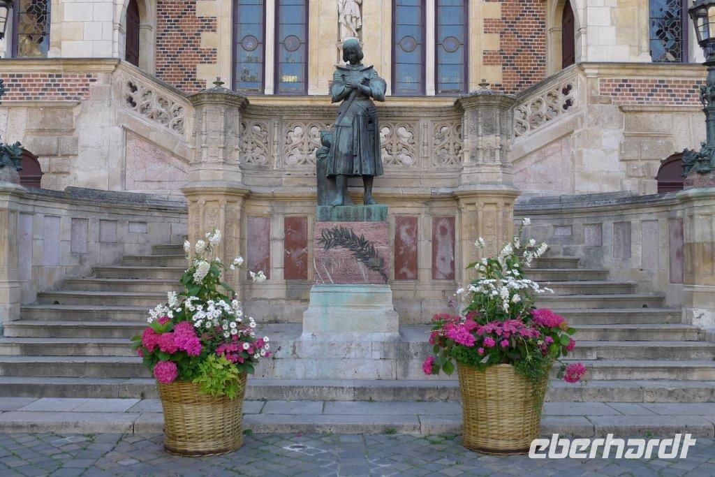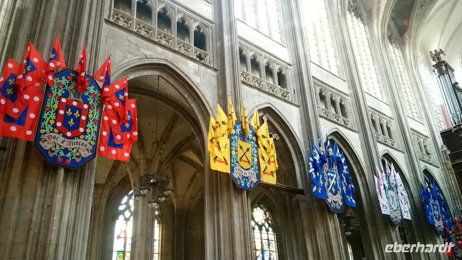 Am Vormittag des zweiten Tages unserer Reise fuhren wir zunächst mit dem Bus von Troyes nach Sully-sur-Loire, wo das zum UNESCO-Weltkulturerbe gehörige Gebiet des Loiretals beginnt. Direkt am Ufer der Loire ist auch das mit einem Wassergraben umgebene Chateau gelegen, welches zur Besichtigung einlud. Während die Gäste sich einen ersten Eindruck von der beim Bau der Loire-Schlösser an den Tag gelegten Architektur verschafften, wurden die Räder entladen. Zur Freude aller konnte so nach der langen Busfahrt vom Vortag endlich die erste Radtour starten. Diese begann bereits nach wenigen Kilometern abenteuerlich zu werden, da der eigentliche Radweg „La Loire à vélo" aufgrund von Bauarbeiten gesperrt war und uns die offizielle Umleitung auf den recht zugewachsenen Wanderweg führte. An dieser Stelle ein großes Dankeschön an alle Gäste, dass Sie diese nicht ganz leicht zu bewältigende Ersatzstrecke in Kauf genommen und sich dabei die gute Laune nicht verderben lassen haben. Nachdem wir schließlich den Weg zurück auf den Radweg gefunden hatten, ging es auf ebener Strecke weiter bis nach St. Bénoît-sur-Loire. In der dort gelegenen Abtei Fleury fand während unseres Besuches eine Messe der hiesigen Benediktinermönche statt. Nachdem wir dieser Prozedur eine Weile gelauscht hatten, radelten wir über Chateauneuf-sur-Loire nach Jargeau, wo uns Steffen mit dem Bus bereits erwartete. Doch unser Kulturprogramm war für diesen Tag noch nicht beendet und so fuhren wir nach dem Verladen der Räder in das Zentrum von Orléans. Bekannt ist diese Stadt vor allem durch die französische Nationalheldin Jeanne d'Arc, zu deutsch „Johanna von Orléans". So erzählte uns Claudia vor der Kathedrale von Orléans von dieser jungen Frau, welche eine göttliche Eingebung hatte und daraufhin den französischen König um militärische Unterstützung bat, um in den Hundertjährigen Krieg gegen England eingreifen zu können. Die erste dadurch befreite Stadt war Orléans, sodass noch heute jedes Jahr am 8.Mai der Befreiung mit einem Fest gedacht wird. In Folge dieser Feierlichkeiten konnten wir im Inneren der Kathedrale auch die Wappen der früheren Grafen sehen, welche Johanna von Orléans bei ihrem Wirken unterstützten. An den Mut der jungen Jeanne d'Arc wird in der ganzen Stadt mit Skulpturen erinnert, so unter anderem vor dem früheren Rathaus, welches durch seine Backsteinfassade ins Auge fällt. Begeistert hat uns auch der viele Blumenschmuck, welcher Hausfassaden und Plätze schmückte und Orléans zu einer „Ville Fleurie" („Blumenstadt") mit vier Blumen, der höchsten zu erreichenden Auszeichnung, gebracht hat. Nach einem Bummel über den Wochenmarkt, fuhren wir hungrig zu unserem heutigen Hotel. Bei frischem Salat mit pochiertem Ei und geräucherter Wurst, Schweinekassler mit Kartoffelgratin sowie Crème brûlée stärkten wir uns ausgiebig, um neue Kräfte für den folgenden Tag zu sammeln.