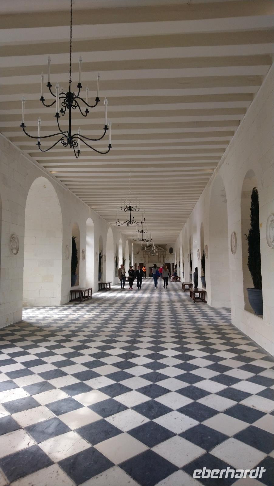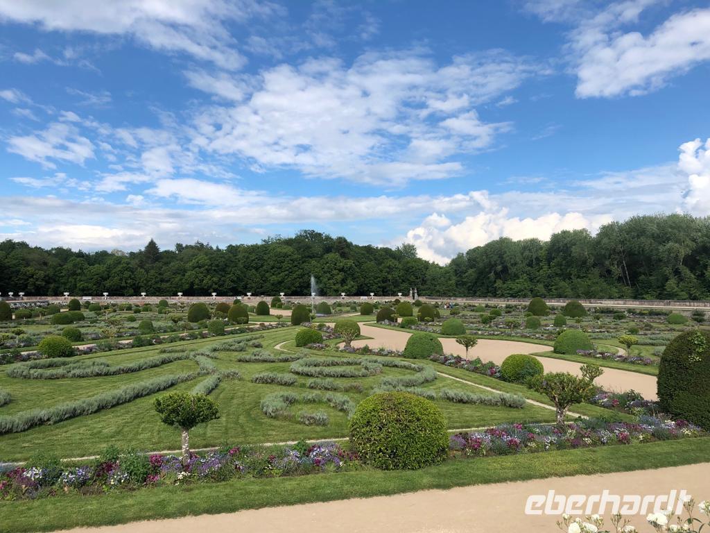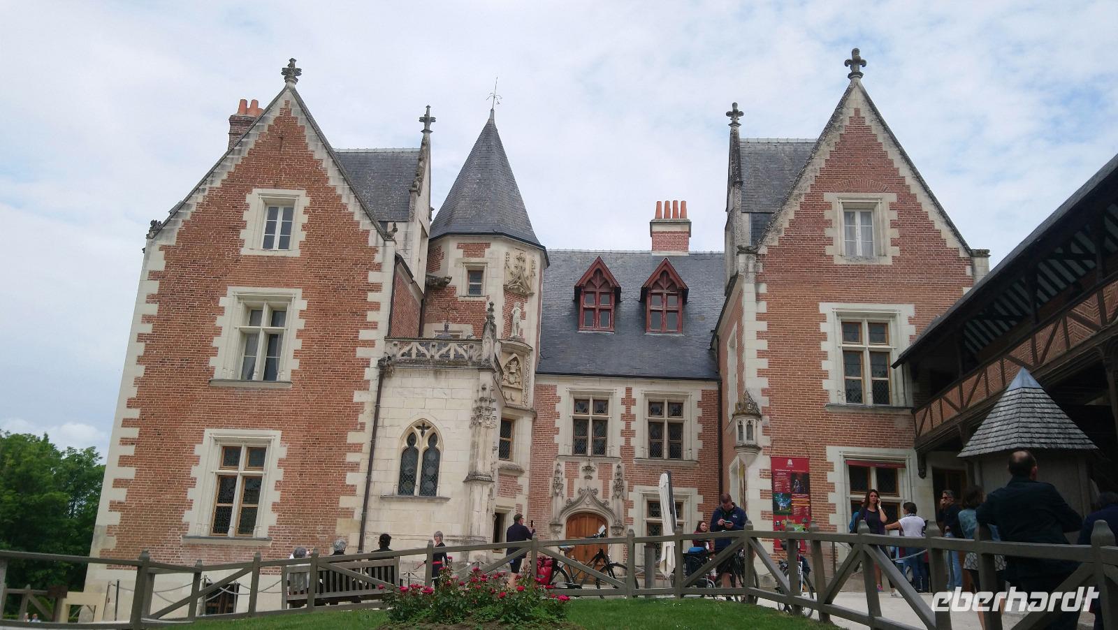 Mit dem Bus fuhren wir am Freitag Morgen zunächst ein Stück entgegen der Fließrichtung der Loire bis nach Chaumont. Bei bewölktem Himmel starteten wir unsere heutige Radtour, welche uns für ein paar Kilometer in Flussnähe durch kleine Wälder führte, bevor wir einen steilen Anstieg mit ca. 50 Metern Höhenunterschied zu überwinden hatten. Wir durchfuhren im Anschluss das hügelige Hinterland mit seinen verschlafenen Dörfern und erreichten gegen Mittag die kleine Stadt Amboise. Erste Station war dort das Clos Lucé. In diesem am Berg gelegenen Herrenhaus mit Backsteinfassade verbrachte Leonardo da Vinci seinen Lebensabend. Die Erinnerungen an da Vinci werden in diesem Museum am Leben gehalten und zeigen, dass da Vinci vielerlei Interessengebiete hatte. So erhält man Einblick in sein Atelier und kann im Garten der Anlage verschiedene Modelle des Erfinders hautnah erleben. Nachdem die Gruppe das Wirken da Vincis kennengelernt hatte, wurden die Räder am Ufer der Loire in den Radanhänger geladen und Steffen chauffierte uns an den Cher, einem Nebenfluss der Loire. In der Nähe von Chenonceau bestiegen wir ein kleines Boot, um uns das gleichnamige Schloss von der Wasserseite aus anzusehen. Begleitet von den französischen Erzählungen einer Bootsfrau zur Geschichte des Schlosses schipperten wir ca. 45 Minuten auf dem Cher entlang. Dabei fuhren wir unter der eindrucksvollen Galerie des Chateau entlang, welche den Cher überspannt und unter anderem im ersten Weltkrieg als Lazarett diente. Da vor allem Frauen, wie Katharina von Medici und Diane de Poitiers, die Geschicke in diesem Gemächern lenkten, wird Chenonceau auch als „Schloss der Damen" bezeichnet. Nachdem wir zurück an Land waren, besichtigten wir die weitläufige Anlage zu Fuß. Hierzu gehören neben den nach historischem Vorbild gestalteten Gärten auch die im Renaissancestil eingerichteten Räume im Chateau. Besonders die in den Brückenpfeilern befindlichen Küchen und das gänzlich in schwarz gehaltene Zimmer, in welchem Louise von Lothringen nach dem Tod ihres Mannes wohnte, hinterließen bleibende Eindrücke. Am frühen Abend ging es mit dem Bus zurück in unser Hotel in Tours, wo wir den Tag bei einem Glas Wein zu einer schmackhaften Tarte mit Tomaten und Basilikum, Truthahnspieß mit Ratatouille-Gemüse und einer Art Bayerischer Creme ausklingen ließen.