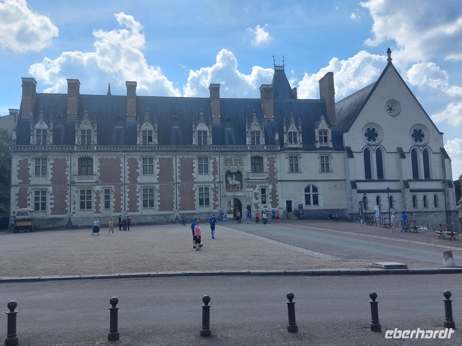 Den Abschluss unserer heutigen Etappe bildet die Königstadt Blois mit ihrem weitläufigen Platz vor dem Schloss. Nachdem wir die Fassade mit dem Reiterdenkmal des König Ludwig XII. und seine vielen Stachelschwein-Embleme besichtigt und einen Blick in den Schlosshof mit seinen unterschiedlichen Baustilen geworfen haben, wird uns pünktlich um 16.30 h (die Zeit musste der Reiseleiter unbedingt einhalten) eine furchterregende Drachenshow aus dem Hause des Zauberkünstlers Houdin geboten.