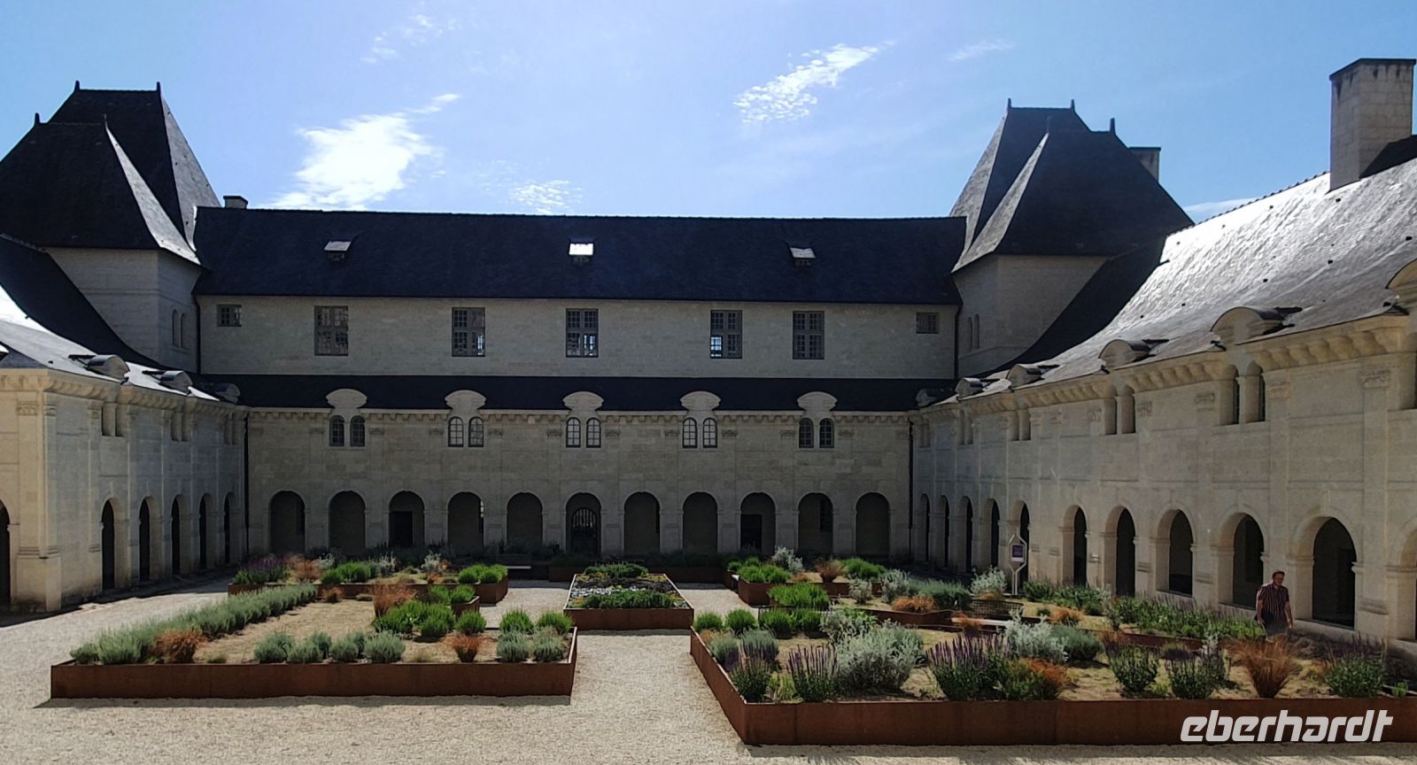 Da die Radkilometer sich in den letzten Tagen zu einer erklecklichen Summe angehäuft haben, drehen wir unsere heutige Fahrt einfach um und können so einige Gefällstrecken genießen. Zuerst erkunden wir die altehrwürdige Abtei von Fontevraud, in deren Kirche die Größen des Herrschergeschlechtes der Plantagenets ihre letzte Ruhe gefunden haben. Vor allem die berühmteste Frau des Mittelalters, Eleonore von Aquitanien und ihr nicht weniger berühmter Sohn Richard Löwenherz fesseln unsere Aufmerksamkeit. Aber auch der Kreuzgang mit seinen bemerkenswerten umliegenden Räumen und vor allem die exaltierte spitzgieblige Küche üben eine eigentümliche Faszination aus. Dann fahren wir wieder zu unserer liebgewonnenen Loire hinunter, um uns dort am letzten lauschigen Picknick zu erfreuen. Etwas träge radeln wir im Anschluss nach Saumur, schlendern durch das Städtchen oder erklimmen das schöne Chateau, das durch ein bekanntes Stundenbuch des Herzogs von Berry zu einem Modellschloss wurde. Nach einem wohltuenden Kaffee oder einem kühlen Bier müssen wir nach kurzer Zeit erneut einkehren. Da die Gegend berühmt für seine Sektherstellung ist, statten wir dem Marktführer Ackerman einen Besuch ab und probieren drei unterschiedliche Cremants, ehe wir uns entlang der Loire auf unsere letzten Radstrecke machen. Nach exakt 220 Kilometern steigen wir etwas müde, aber doch alle sehr zufrieden in den Bus zurück nach Tours.