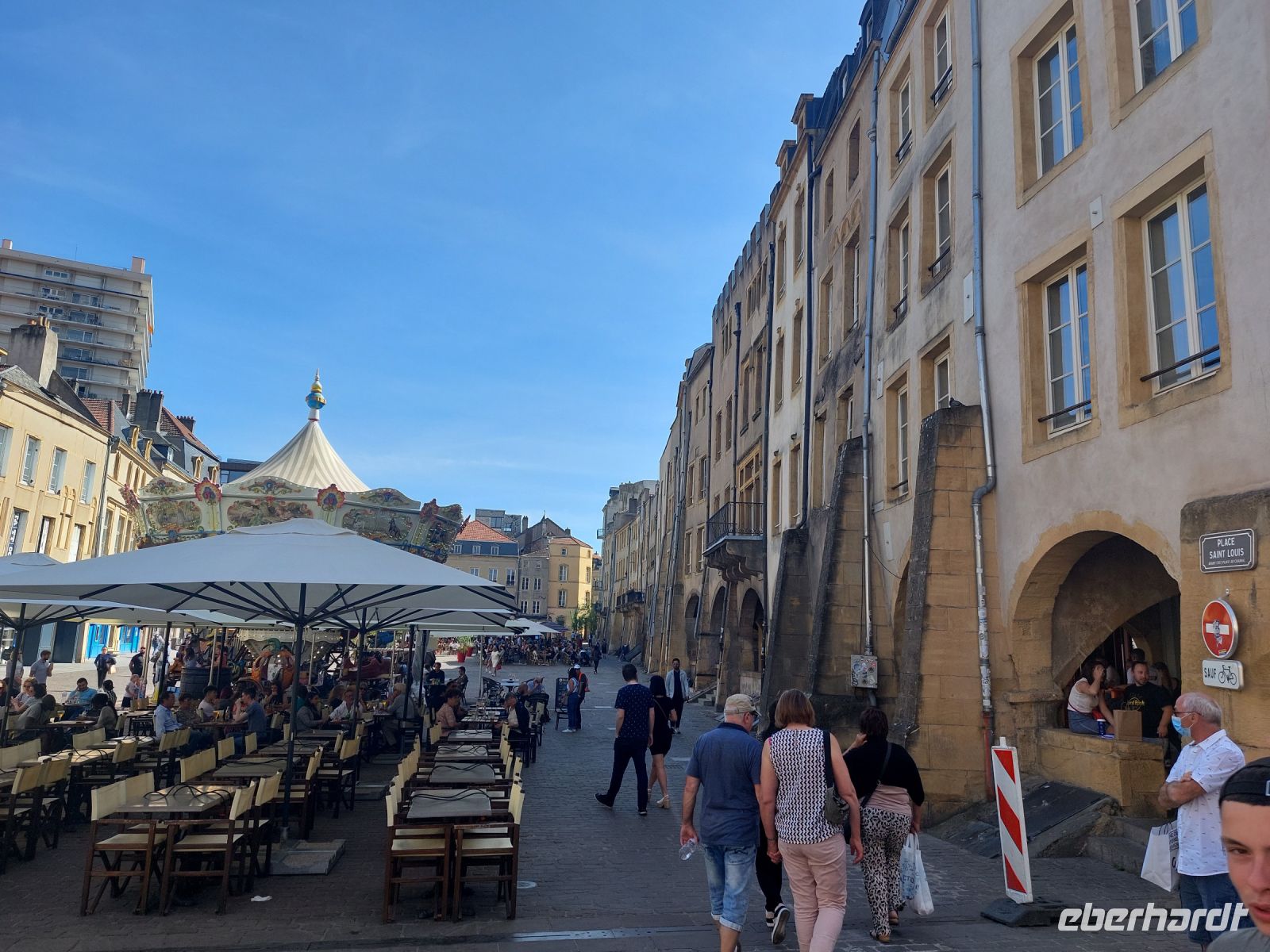 Nachdem die Koffer gepackt sind, machen wir uns heute auf die lange Heimreise, welche die Reiseleiter nutzen, um die Reisegäste mit den noch fehlenden Facetten des Reiselandes Frankreich vertraut zu machen. Nach ungefähr 600 Kilometern unterbrechen wir die Busfahrt, um uns in der schönen lothringischen Metropole Metz einen schönen Nachmittag zu gönnen. Bei einem letzten Stadtrundgang erleben wir die extrem hohe Kathedrale mit ihren herrlichen Fenstern, bei denen vor allem die des berühmten Künstlers Marc Chagall hervorstechen. Aber auch die mittelalterlichen Plätze mit ihren Laubengängen, die an diesem Samstag voller Menschen sind, erregen ebenso unsere Aufmerksamkeit wie der heitere Theaterplatz auf der Moselinsel, der vom Temple Neuf, einer Kirche abgeschlossen wird, die zur Zeit der deutschen Herrschaft nach dem Vorbild des Speyrer Domes geschaffen wurde. Auf dem Rückweg ins Hotel haben alle noch die Möglichkeit, sich mit letzten Souvenirs zu versorgen und ihre Postkarten loszuwerden.