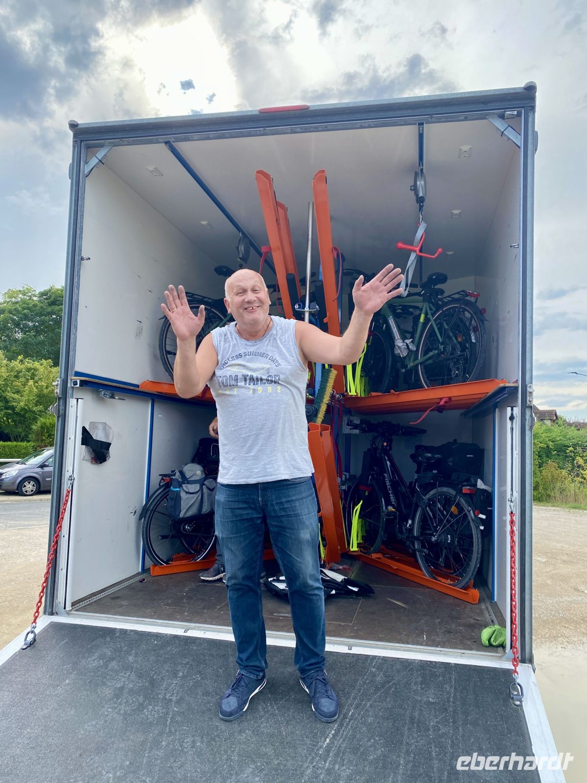 Liebe Pedaleure, liebe EBERHARDT-Reisefreunde - ich möchte mich bei Euch allen für die schöne, interessante und unterhaltsame (Monsieur Henri!) Woche herzlich bedanken. Es hat großen Spaß gemacht, Euch diese herrliche Radregion näher zu bringen, Euch eine heitere Ferienstimmung zu vermitteln und die perfekt geplante Reise zu einem echten Erlebnis werden zu lassen. Bedanken will ich mich auch für die vielen angenehmen Gespräche mit Euch.