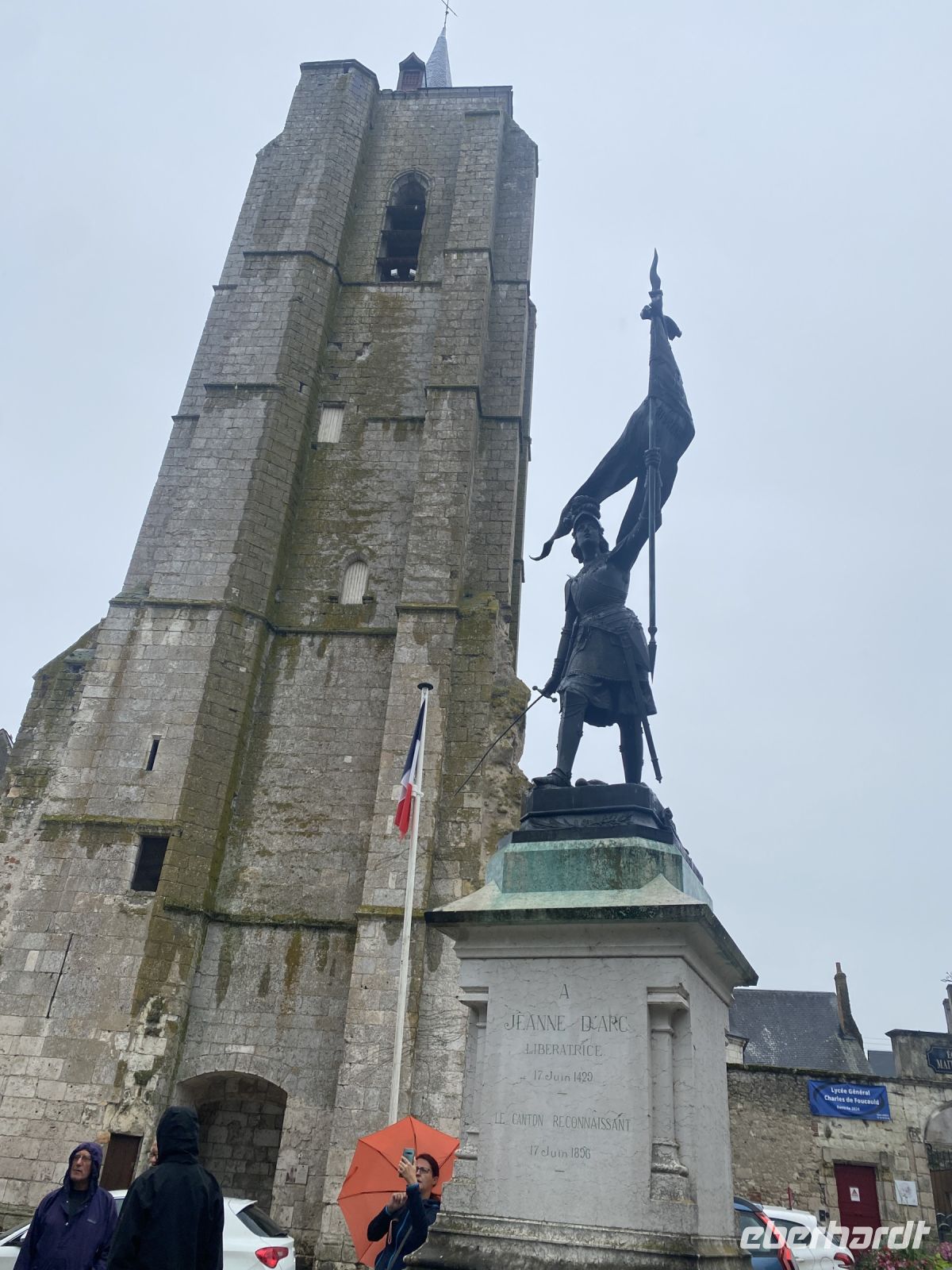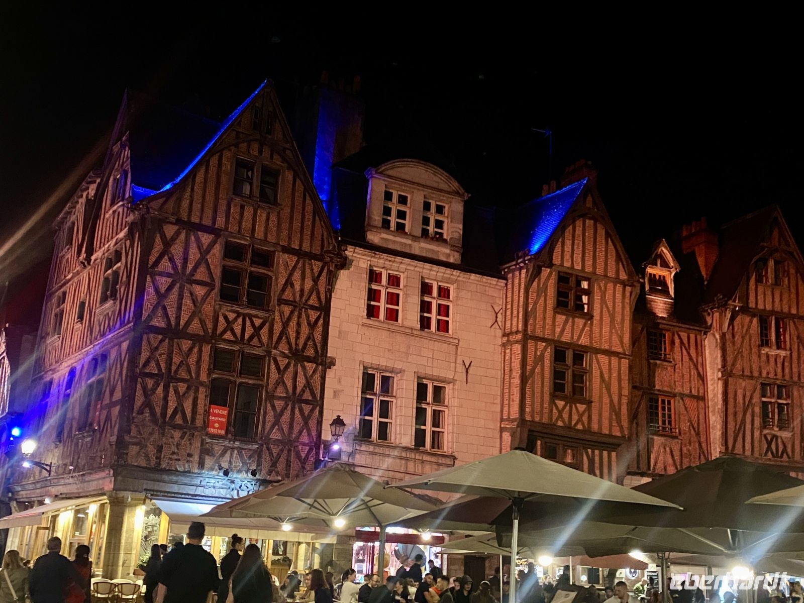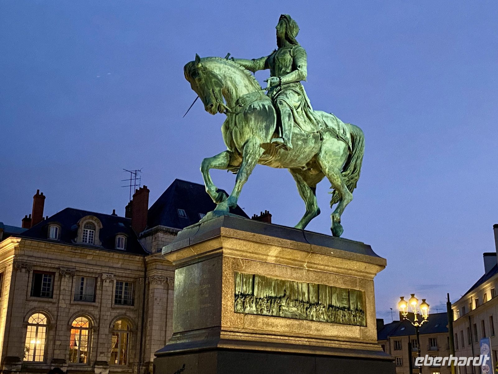 Und dann steht nach weiteren Radkilometern schon unser Bus da, um uns zu unserem heutigen Zielort nach Orleans zu bringen. Diese Stadt steht ganz im Zeichen einer Frau, die jedes Jahr von ihren Einwohnern gefeiert wird. Sie, Jeanne d´Arc, hat als sehr junges Bauernmädchen dank ihrer Überzeugungskraft vor fast 600 Jahren die Belagerung durch das englische Heer beenden können. Diese Heldentaten, aber auch ihr schnöder Tod auf dem Scheiterhaufen, sind der Grund für die vielen Denkmale, die wir bei einem stimmungsvollen nächtlichen Spaziergang besuchen.