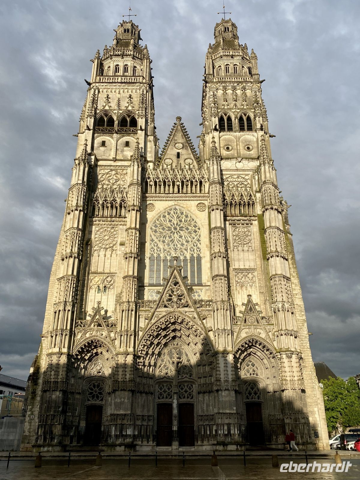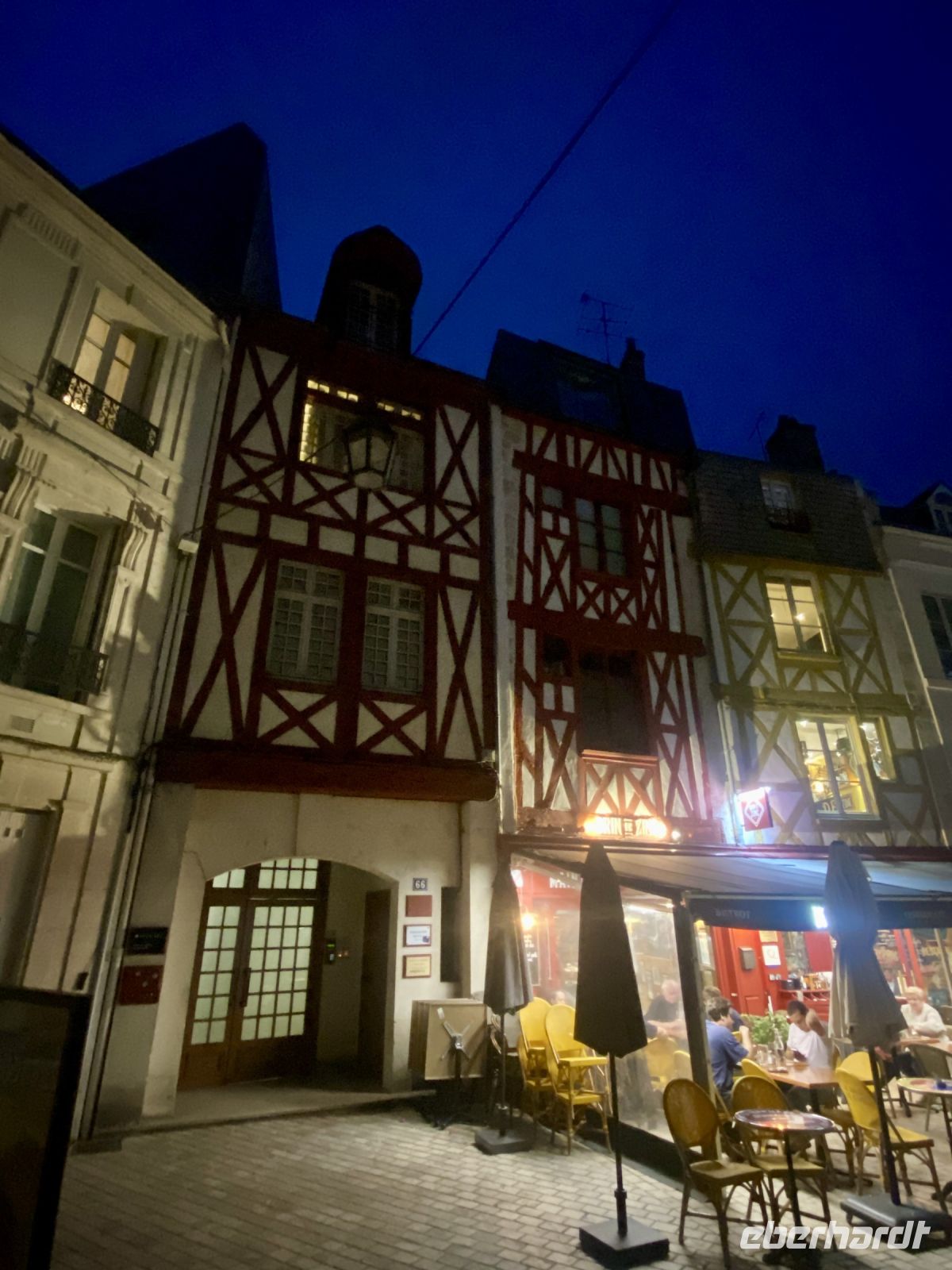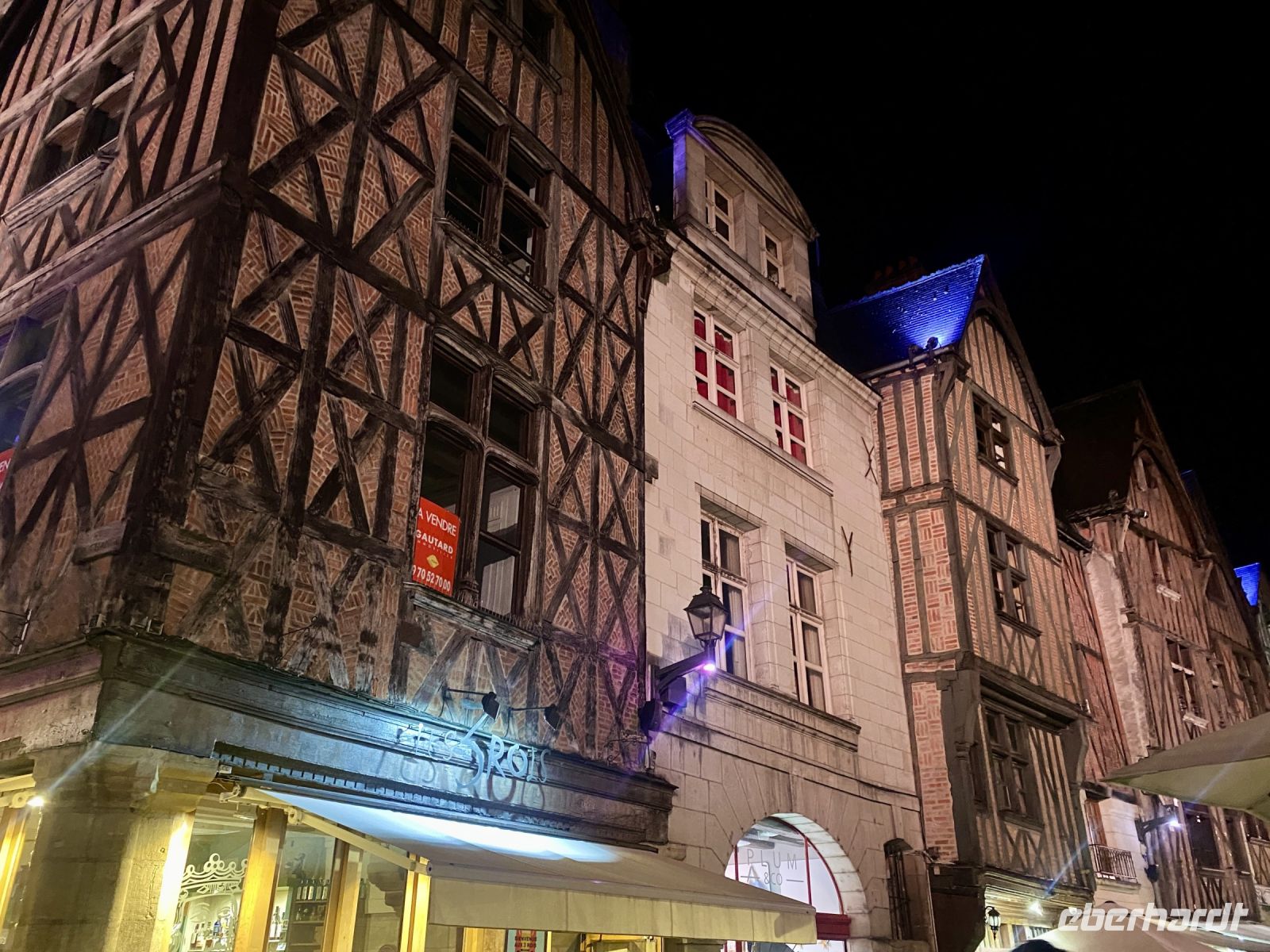 Bretonisch geht es auch am Abend zu: Nach einen schönen Stadtrundgang in Tours mit erhabener Kathedrale (vor dem Regen flüchten wir hinein, nach der Führung scheint für die "reisenden Engel" die Sonne) , uralter Libanonzeder und dem ausgestopften Zirkuselefanten Fritz begeben wir uns in ein bretonisches Lokal, das sehr kreativ eingerichtet ist und einen Teil von uns sogar im großen Ehebett unterbringt. Bei Kir, Cidre und den salzigen wie süßen Galettes kommen alle auf ihre Kosten. Ein Spaziergang bei Nacht über den belebten, wunderschönen Place Plumereau schließt diesen Stadtbesuch ab, wobei der Regenschirm schwingende Sergej die Gruppe eindrucksvoll zusammenhält.