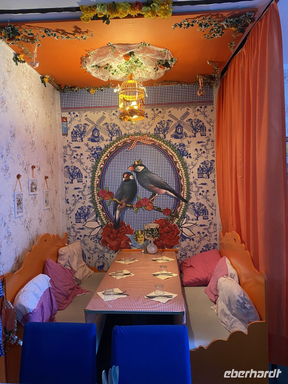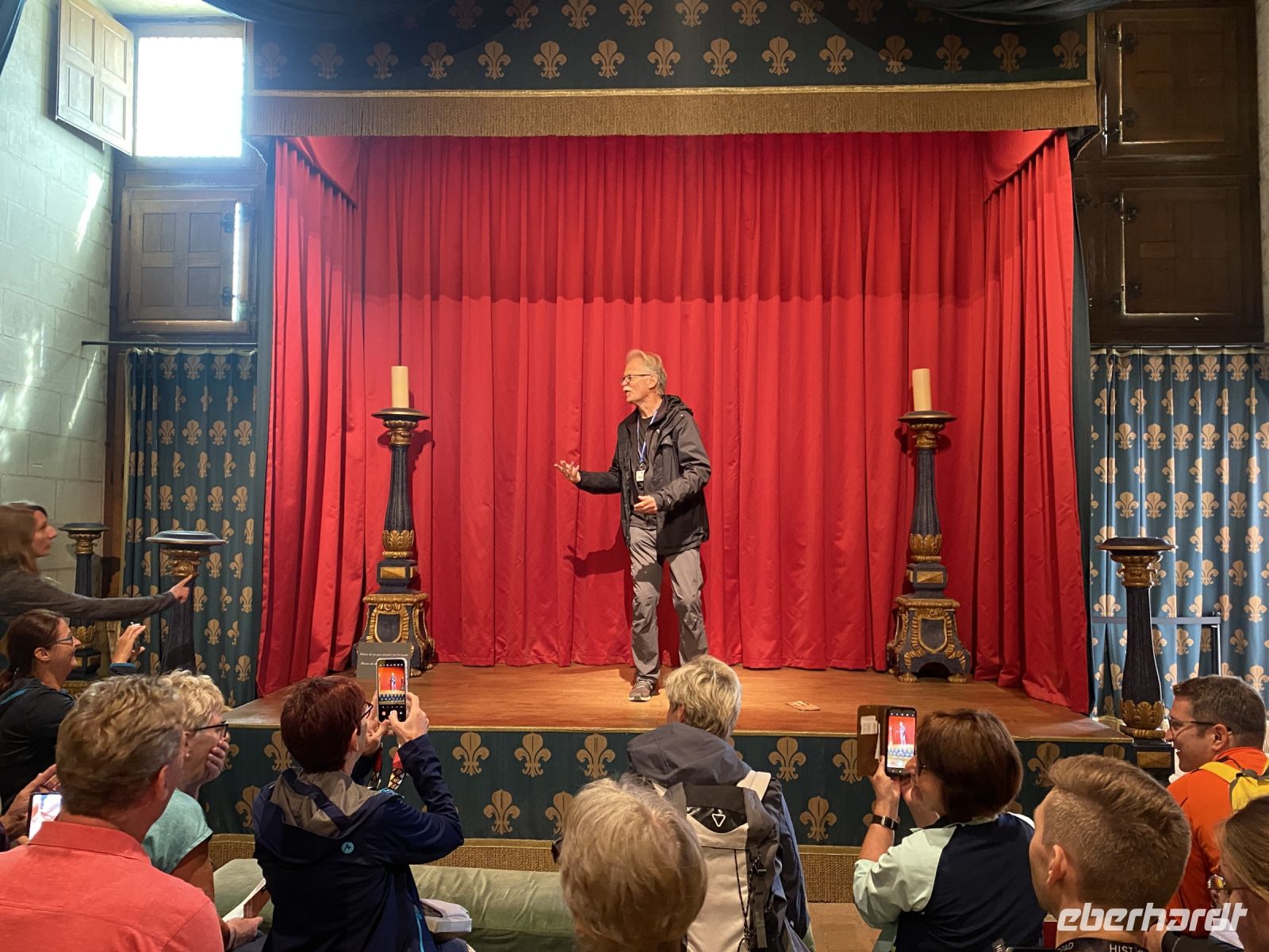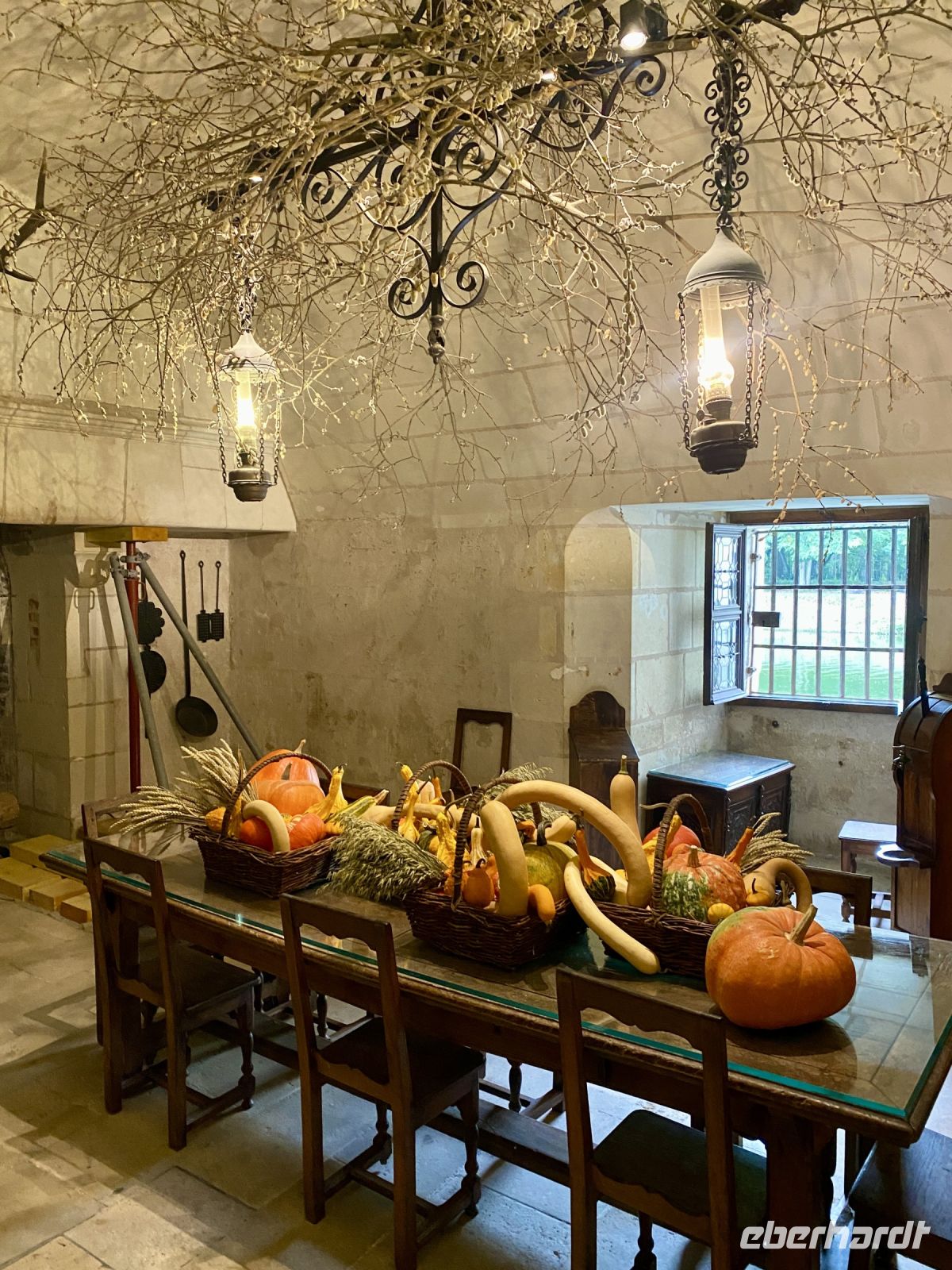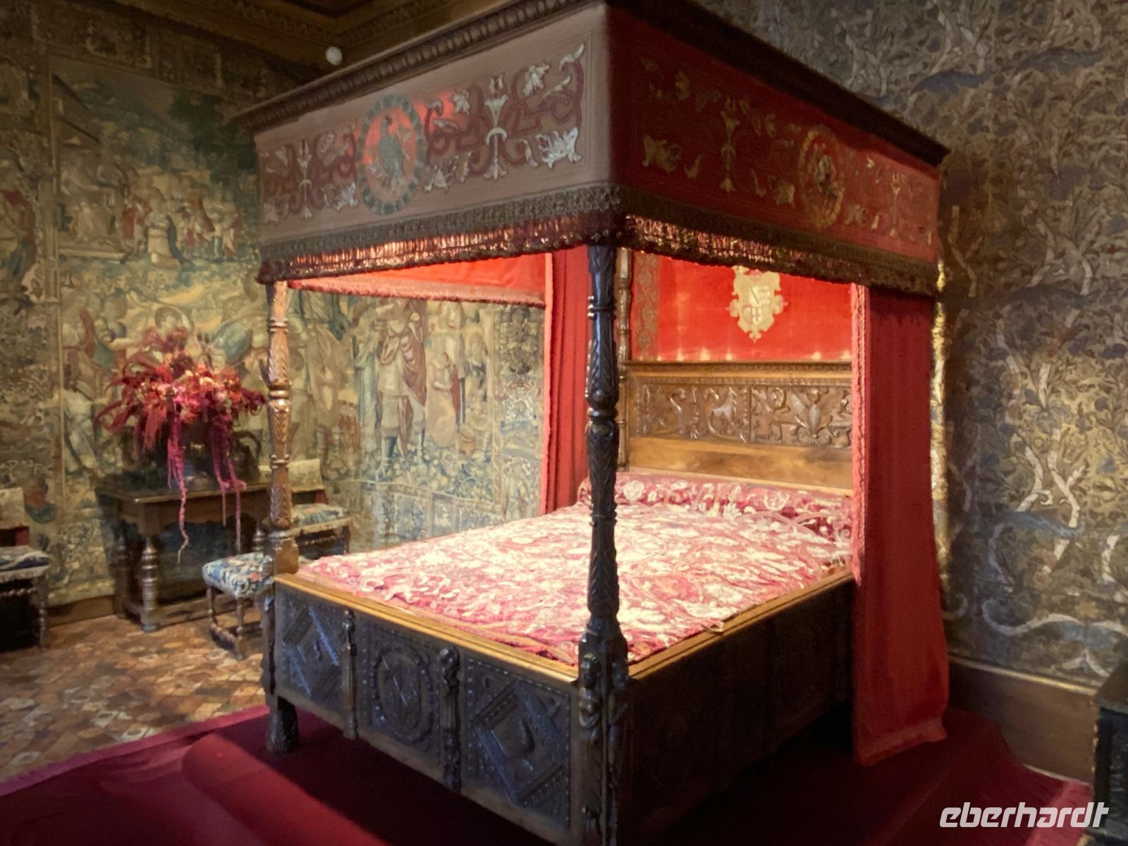 Also begeben wir uns ins zauberhafte Schloss der Damen. Hier ist jeder der wirkmächtigen Frauenfiguren ein Raum zugeordnet, der - immer mit Bett- mal mehr, mal weniger prachtvoll ausfällt und ob der Trauer auch mal düster und spartanisch gestaltet ist. Sehr eindrucksvoll ist auch die weitläufige Galerie über den Fluss und die Küche in den Brückenpfeilern. Danach haben alle noch Lust, die schönen Gärten zu beiden Seiten des Schlosses zu besichtigen, was für die Biologinnen und die Hobbygärtnerinnen ein weiteres Highlight darstellt.