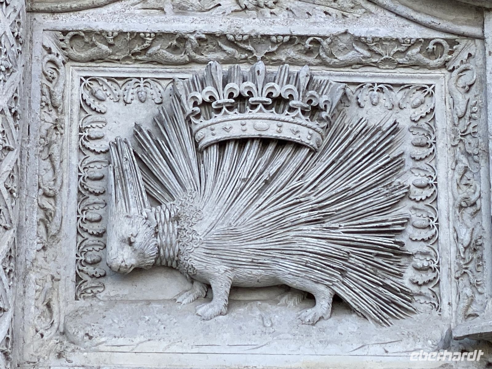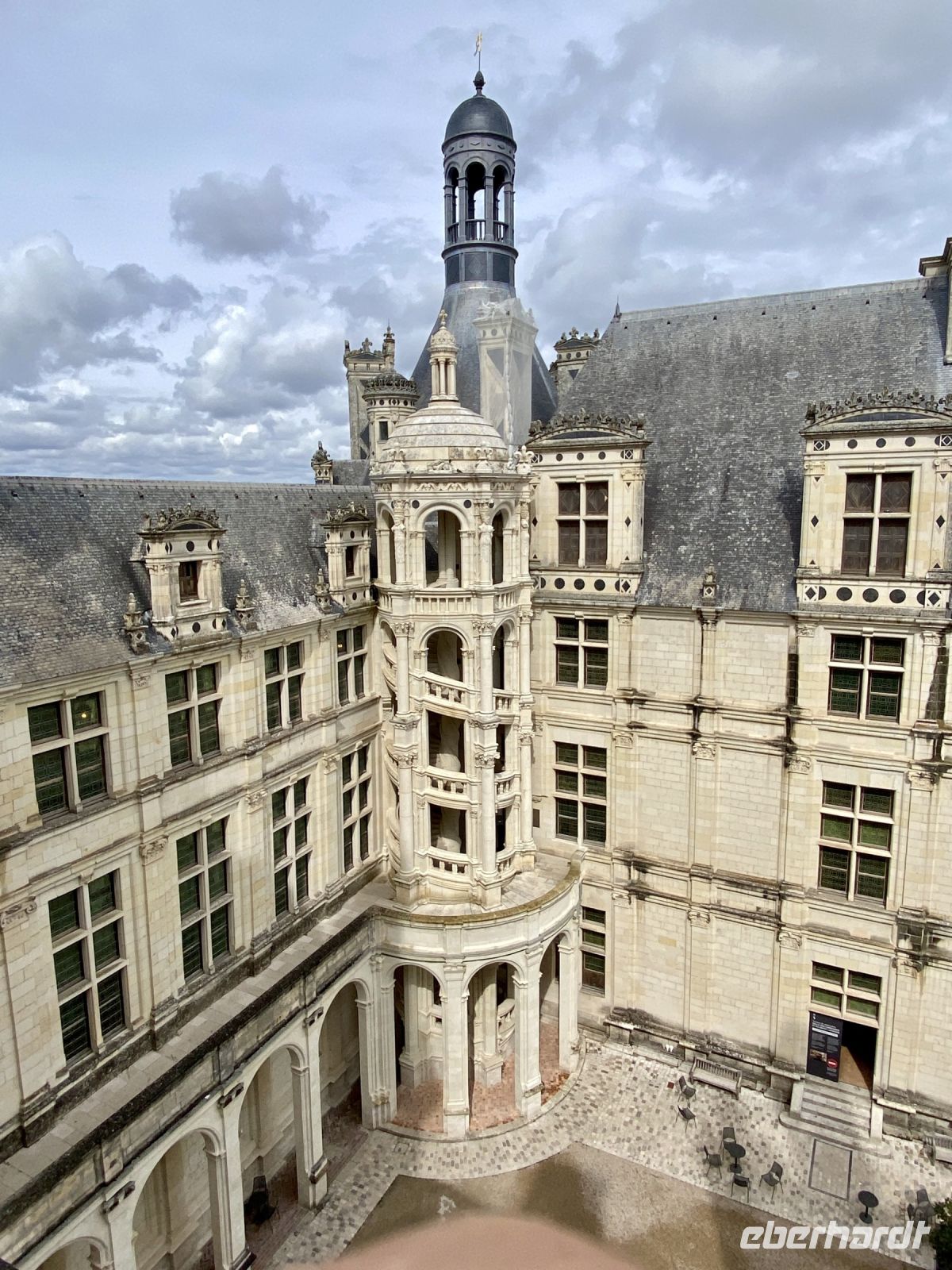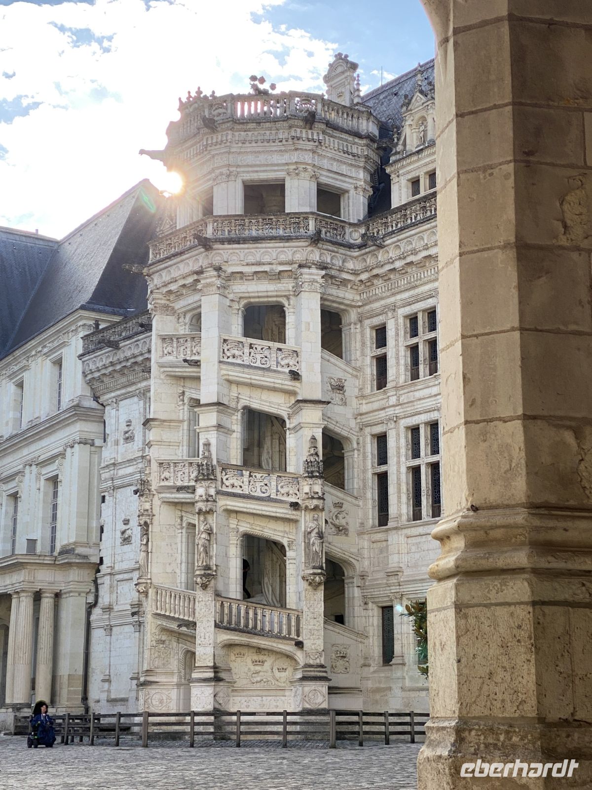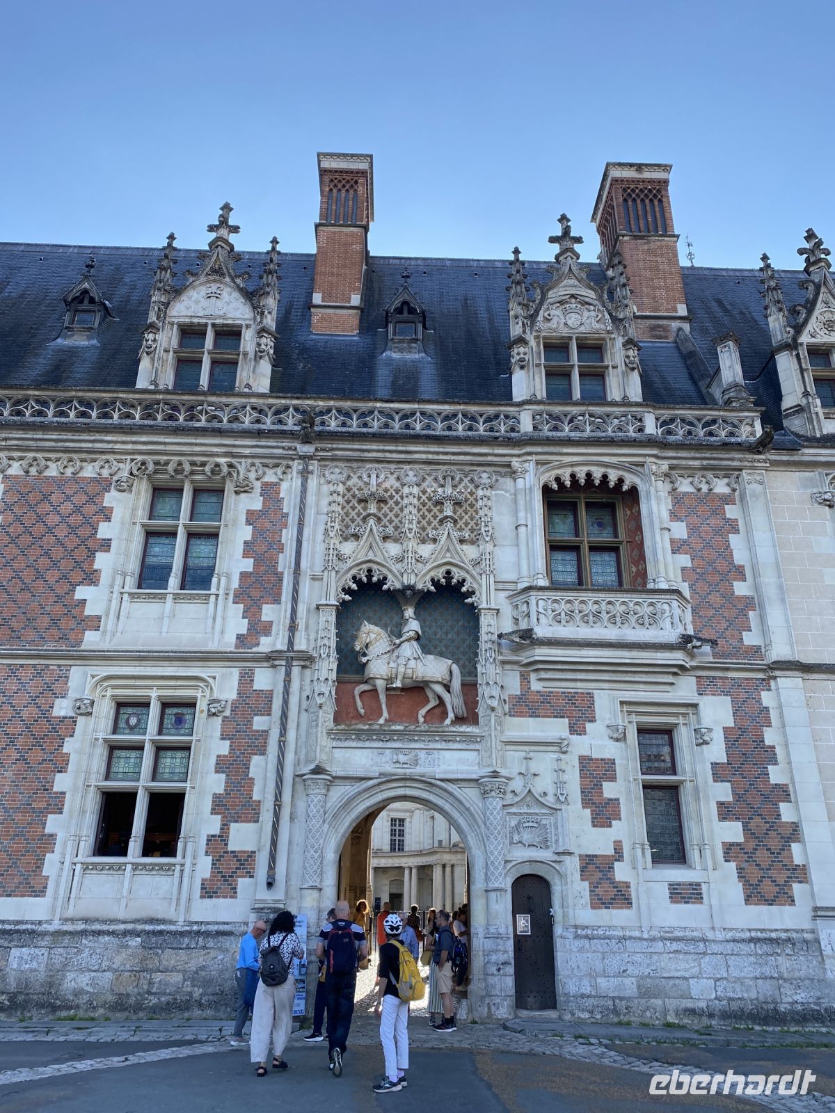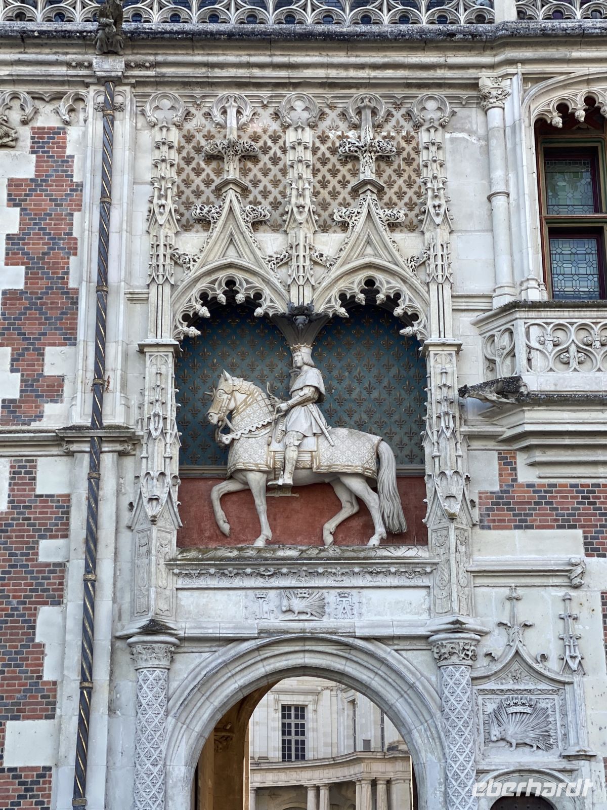 Den Abschluss unserer heutigen Etappe bildet die Königsstadt Blois mit ihrem weitläufigen Platz vor dem Schloss, auf dem wir die Fassade des schönen Bauwerkes mit dem Reiterdenkmal des König Ludwig XII. und seine vielen Stachelschwein-Embleme besichtigen und einen Blick in den Innenhof mit seinen vier unterschiedlichen Baustilen werfen.