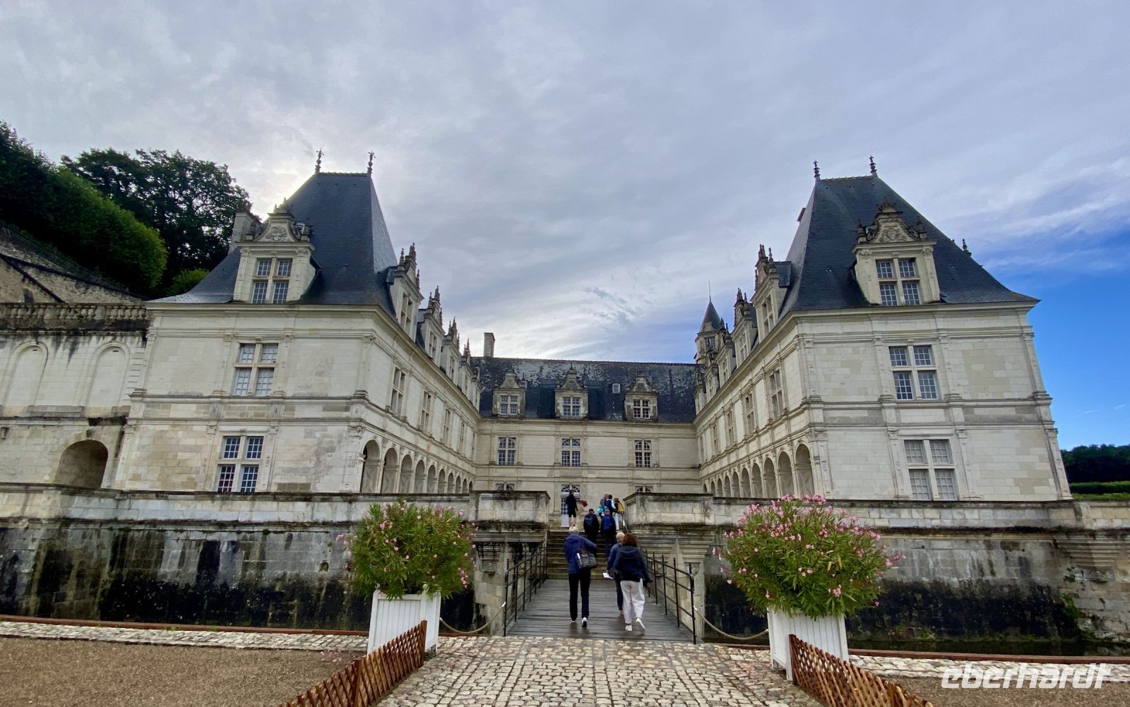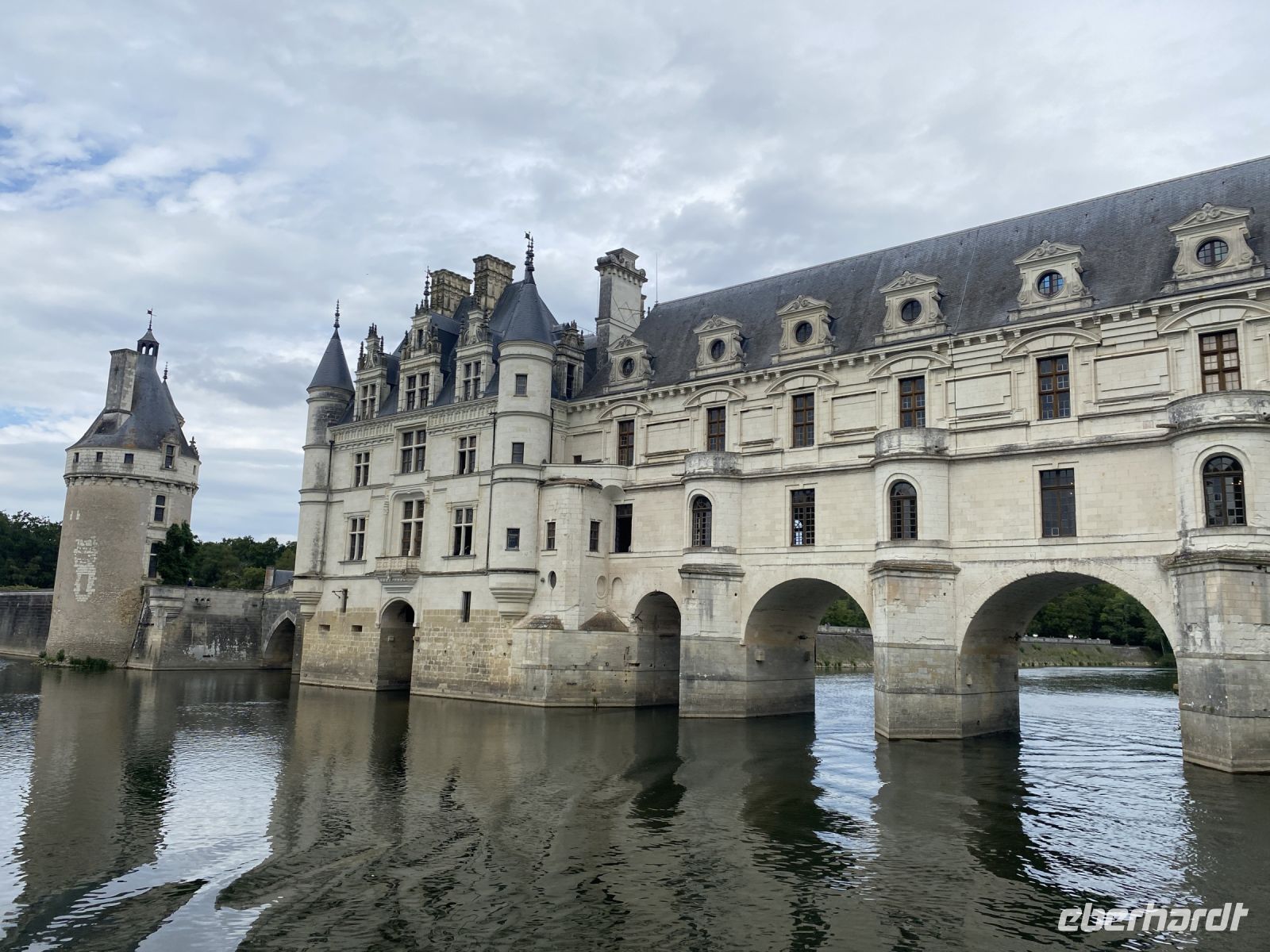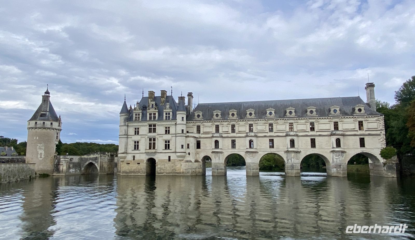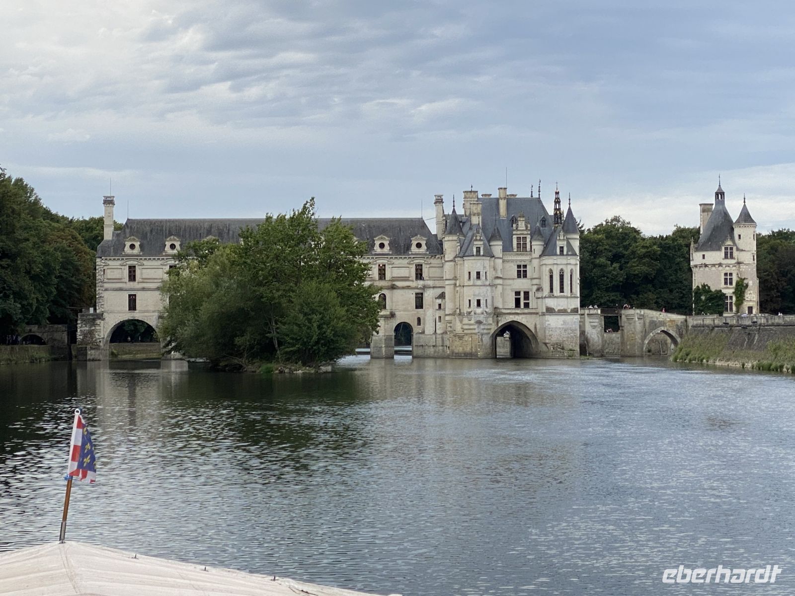 Doch zunächst machen wir uns zu einer Bootsanlegestelle auf, um unsere Schifffahrt auf dem Cher zu starten. Gemächlich tuckern wir über den Fluss in Richtung des berühmten Schlosses und unterqueren den herrlichen Brückenflügel. Und da wir nach einem Wendemanöver die zweistöckige Galerie ein weiteres Mal passieren, können wir dieses Kleinod von allen Seiten bestaunen und ausdruckstarke Bilder schießen. Die Informationen der jungen französischen Gästeführerin können wir, zumal deutsche Infoblätter vorliegen, getrost vernachlässigen, da der Reiseleiter bei der anschließenden Besichtigung des Schlosses alle wichtigen Fakten erläutern wird.