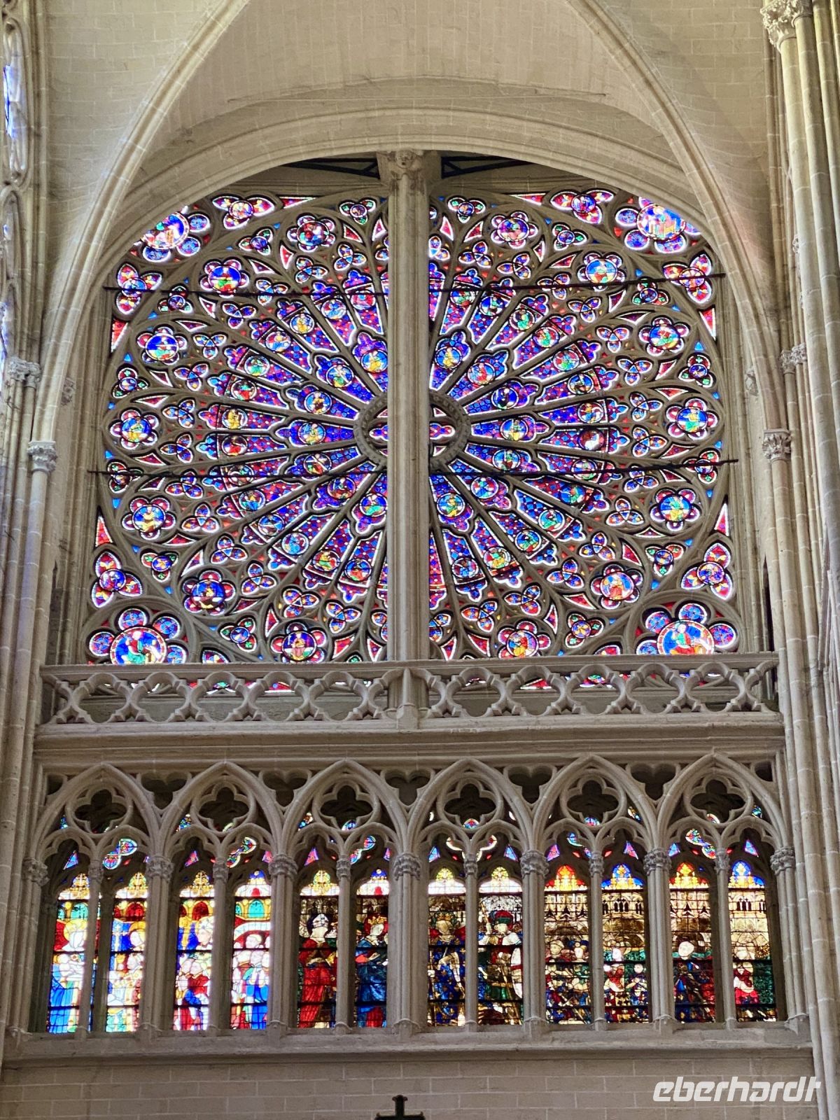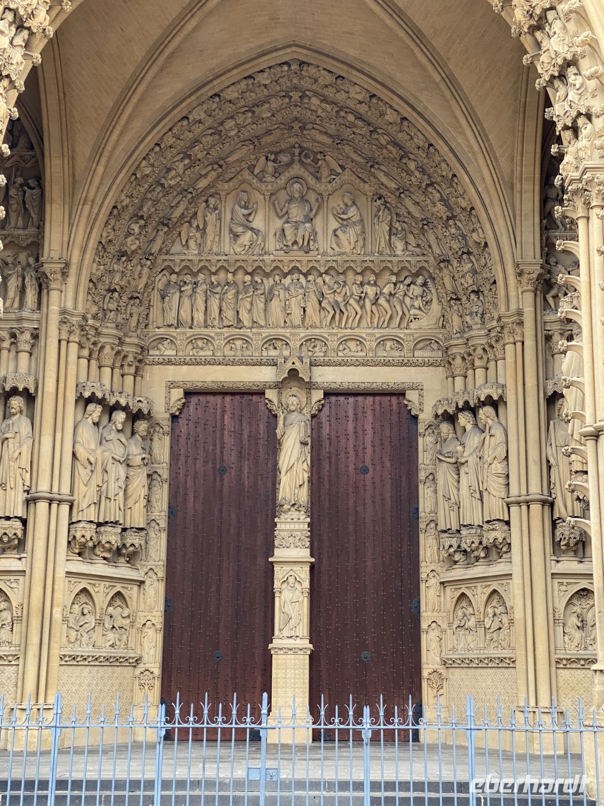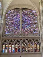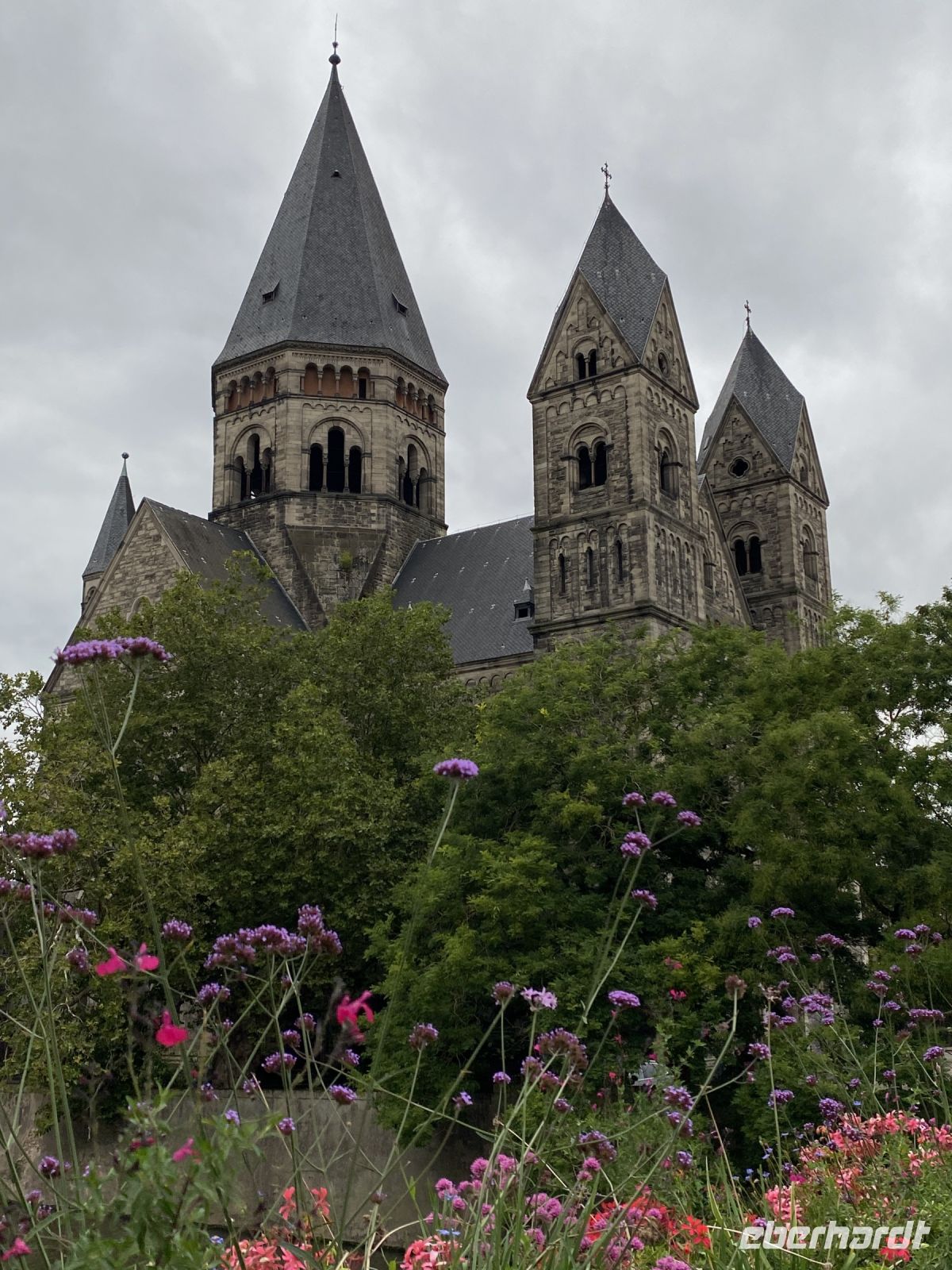 Nachdem die Koffer gepackt und im Bus verstaut sind, machen wir auf die Heimreise, die wir nach ungefähr 600 Kilometern unterbrechen, um uns in der bedeutenden lothringischen Metropole Metz einen schönen Abend zu gönnen. Da unser Hotel im Viertel Imperial nahe am Bahnhof liegt, lässt sich die wechselvolle Geschichte dieser Stadt sehr gut erläutern.. Den sehr deutsch anmutenden Häusern folgen in der Altstadt Bauten französischer Prägung aus allen Jahrhunderten. Der Höhepunkt dieses letzten Stadtrundgangs stellt die extrem hohe Kathedrale mit ihren riesengroßen herrlichen Fenstern dar, bei denen vor allem die des berühmten Künstlers Marc Chagall hervorstechen. Aber auch die mittelalterlichen Plätze mit ihren Laubengängen, die auch an diesem Dienstag voller Menschen sind, erregen ebenso unsere Aufmerksamkeit wie der heitere Theaterplatz auf der Moselinsel, der vom Temple Neuf, einer Kirche abgeschlossen wird, die zur Zeit der deutschen Herrschaft nach dem Vorbild des Speyrer Domes geschaffen wurde. Auf dem Rückweg in Richtung Hotel kehren wir dann in einer für die Gegend typischen Brasserie ein, in der wir unter dem Hirsch tafeln und dazu ein kühles Bier trinken. Danach lassen einige den Abend etwas wehmütig an der Hotelbar ausklingen, da sie wissen, dass der Urlaub sich dem Ende zuneigt.
