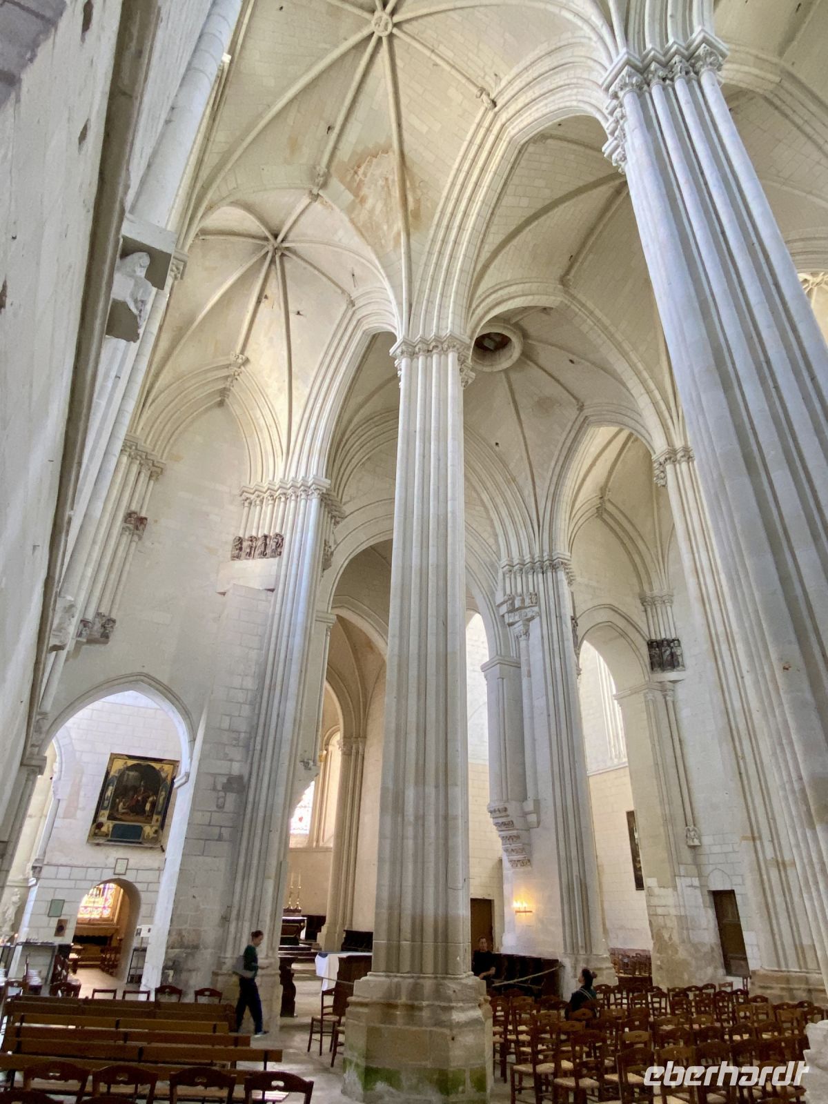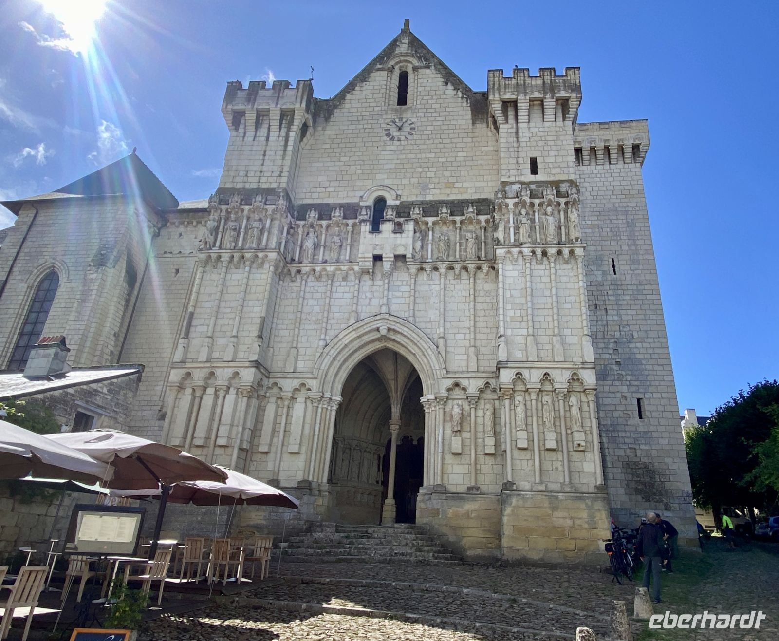Wie gesagt beginnt unsere Radtour am Märchenschloss von Usse, das mit seinen Zuckertürmchen und filigranen Zinnen durchaus an Dornröschen denken lässt. Dann fahren wir die ersten Kilometer an der Indre, einem kleinen Nebenfluss der Loire, entlang, halten in einem typisch französischen Städtchen, um uns mit Proviant zu versorgen, ehe wir uns zu einem weiteren Nebenfluss, der Vienne, aufmachen. An deren Mündung in die Loire gelangen wir in Candes zur uralten Kirche St. Martins, die über dem Sterbeort des Heiligen erbaut wurde und in der zahlreiche Bilder über seine Geschichte informieren.
