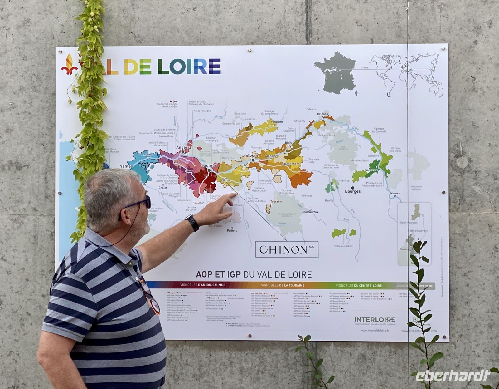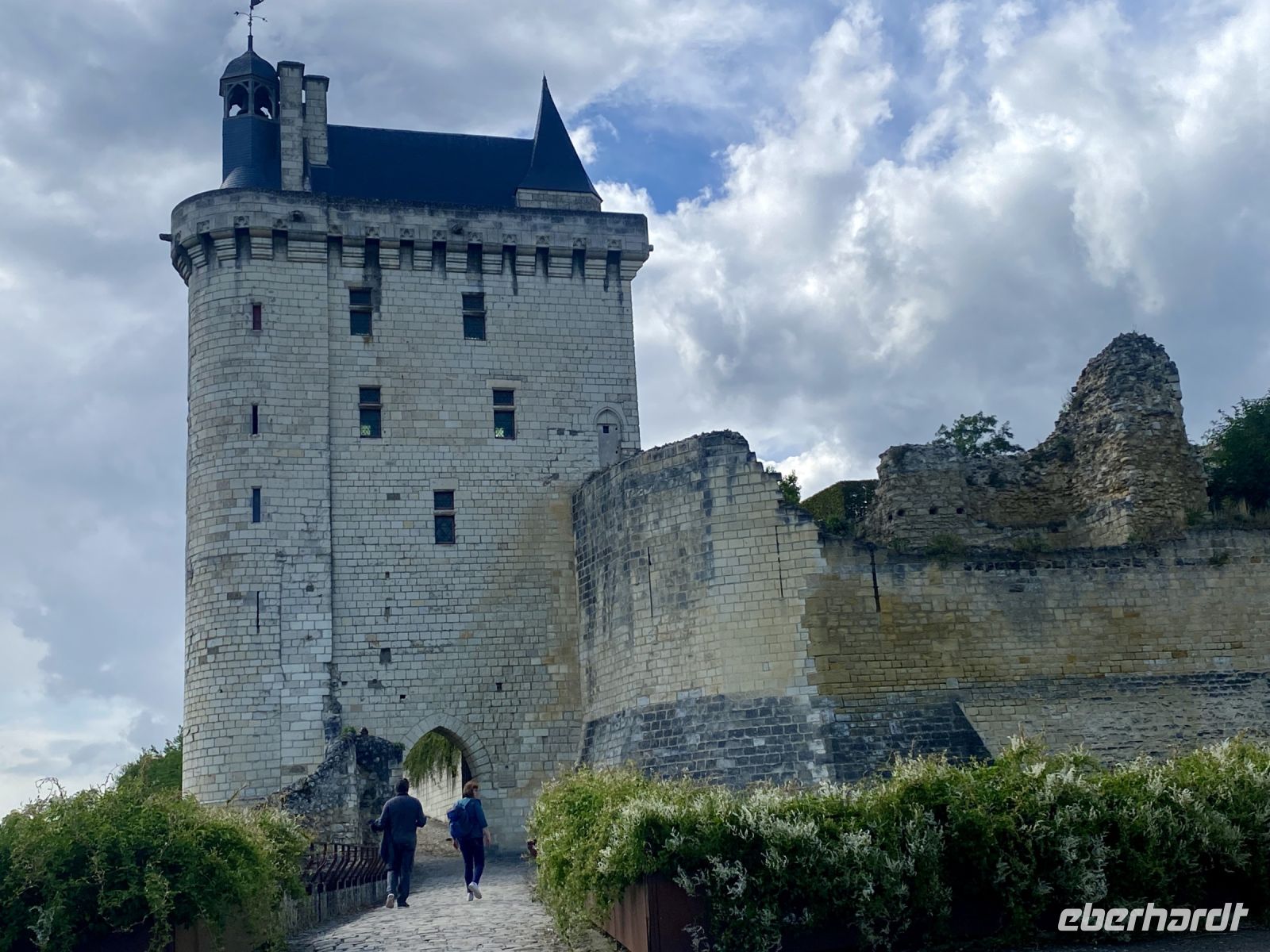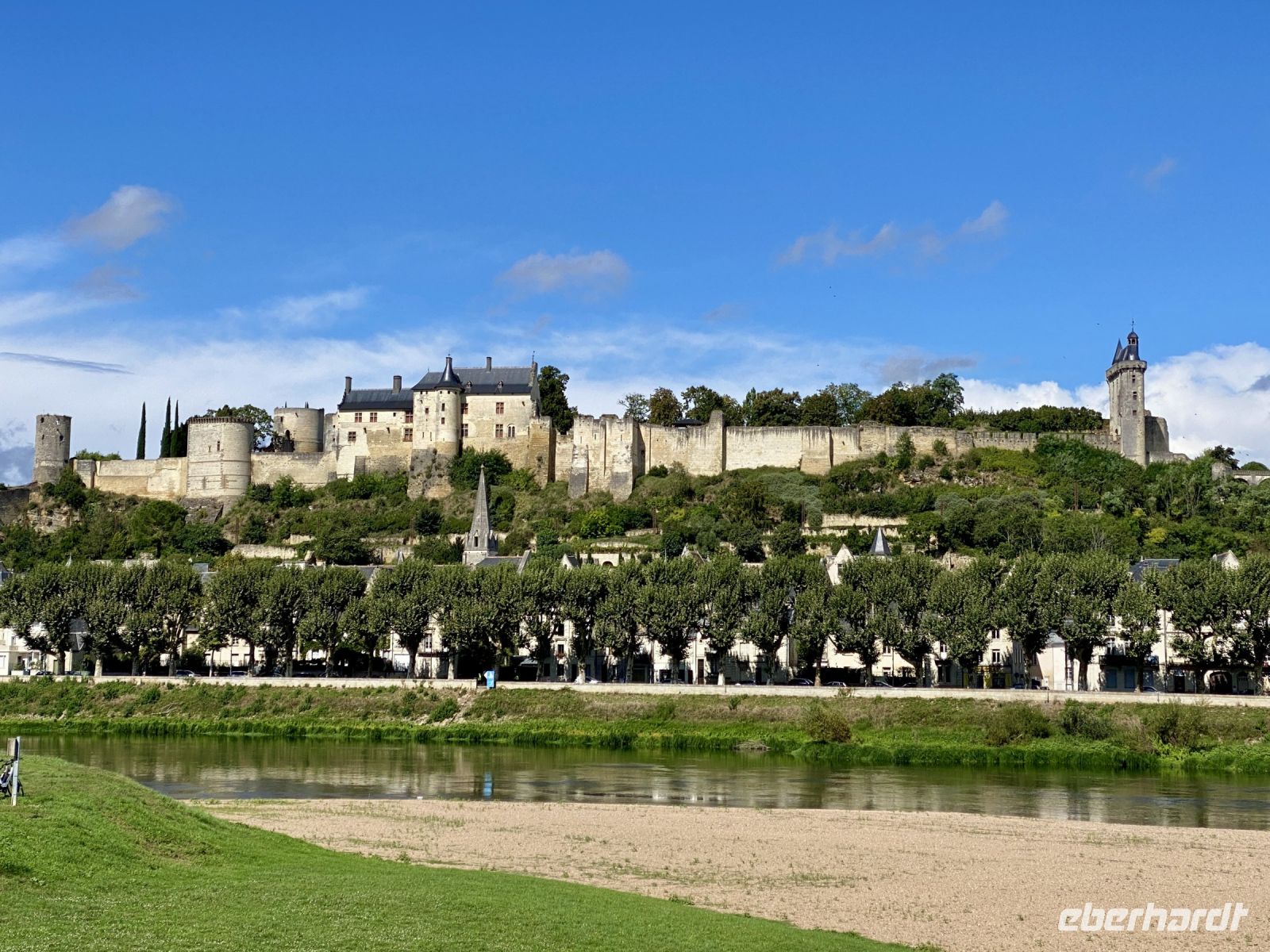 Da sich der Naturradweg am Fluss durch den vielen Regen in Morast verwandelt hat, müssen wir ein großes Stück auf Landstraßen fahren, um zu unserem nächsten Ziel, dem Weinbaustädtchen Chinon, zu gelangen. Es empfängt uns mit einem monumentalen Blick vom Fluss über die geduckte Altstadt bis hin zur hoch oben gelegenen breiten Festung. Hier schlendern wird durch die pittoreske Innenstadt, ehe als krönender Abschluss noch eine Weinprobe ansteht. Als der Reiseleiter die Gruppe auf die Degustation hoch in den Weinbergen einstimmt, schlagen die gewitzten Radler vor, ein Großteil der Höhenmeter mit dem Aufzug zurückzulegen, der die Unterstadt mit dem hochgelegenen Festungsschloss verbindet. Also hieven wir uns zum Erstaunen der Einheimischen immer zu dritt mit den Rädern nach oben.