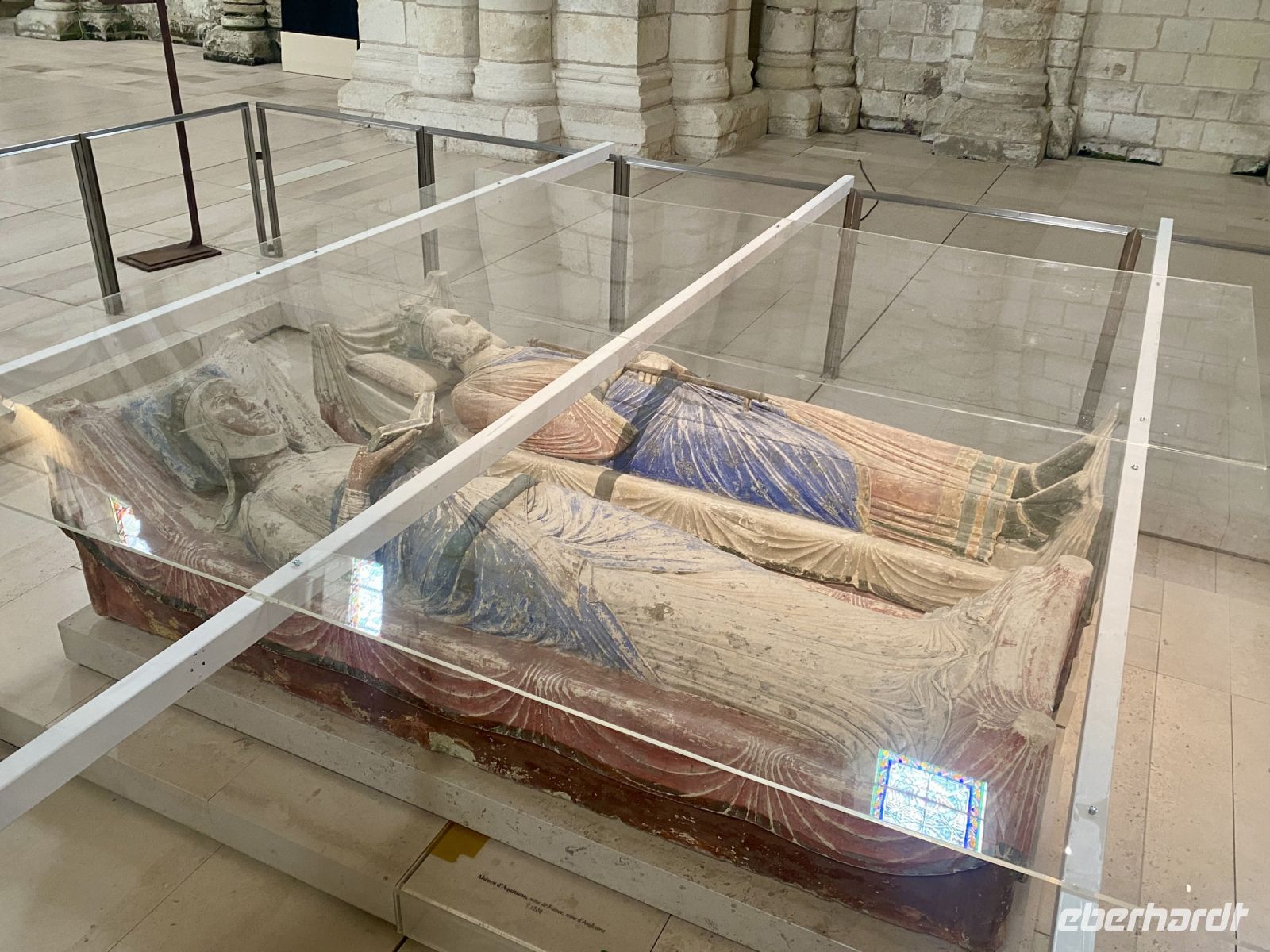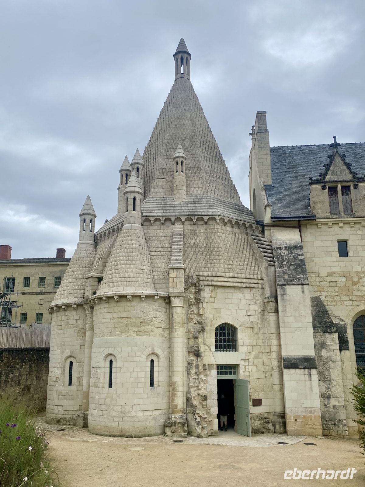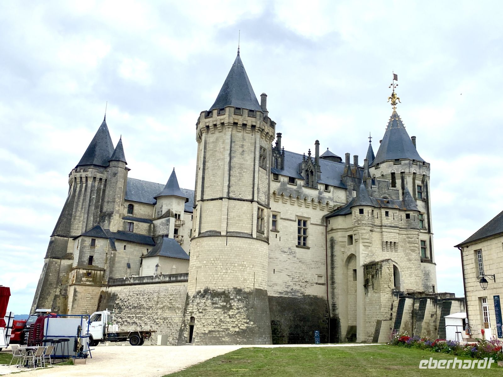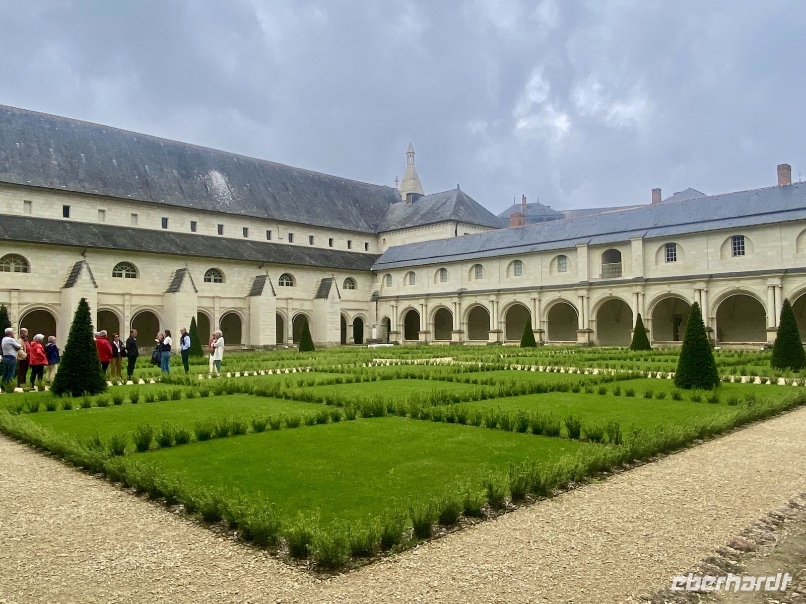 Da die Radkilometer sich in den letzten Tagen zu einer erklecklichen Summe angehäuft haben, drehen wir das Programm unserer heutige Tour einfach um und können so einige Gefällstrecken genießen. Zuerst erkunden wir die altehrwürdige Abtei von Fontevraud, in deren Kirche die Größen des Herrschergeschlechtes der Plantagenets ihre letzte Ruhe gefunden haben. Vor allem die berühmteste Frau des Mittelalters, Eleonore von Aquitanien und ihr nicht weniger berühmter Sohn Richard Löwenherz fesseln unsere Aufmerksamkeit. Aber auch die beiden Kreuzgänge mit ihren bemerkenswerten umliegenden Räumen und vor allem die exaltierte spitzgieblige Küche üben eine eigentümliche Faszination aus. Dann fahren wir wieder zu unserem Fluss hinunter, um mit Hilfe unseres Chef-Navigators zu den bemerkenswerten Höhlenbehausungen von Souzay zu gelangen, um dort in der urigen Kneipe bei guter Musik unsere Mittagspause zu machen. Mit etwas Verspätung (die beiden hinter dem Tresen sind mit unseren Bestellungen etwas überfordert) schwingen wir uns wieder auf unsere Räder und fahren entlang der immer breiter werdenden Loire nach Saumur. Dort schlendern wir durch die Straßen der Altstadt und manche erklimmen gar das schöne Chateau, das durch ein bekanntes Stundenbuch des Herzogs von Berry zu einem Modellschloss wurde. Da die Gegend berühmt für seine Sektherstellung ist, statten wir dem Marktführer Ackerman einen Besuch ab und probieren vier unterschiedliche Cremants, ehe wir uns au bord de la Loire auf unsere letzten Radstrecke machen. Nach über 200 Kilometern steigen wir müde, aber doch alle sehr zufrieden in den Bus zurück nach Tours.