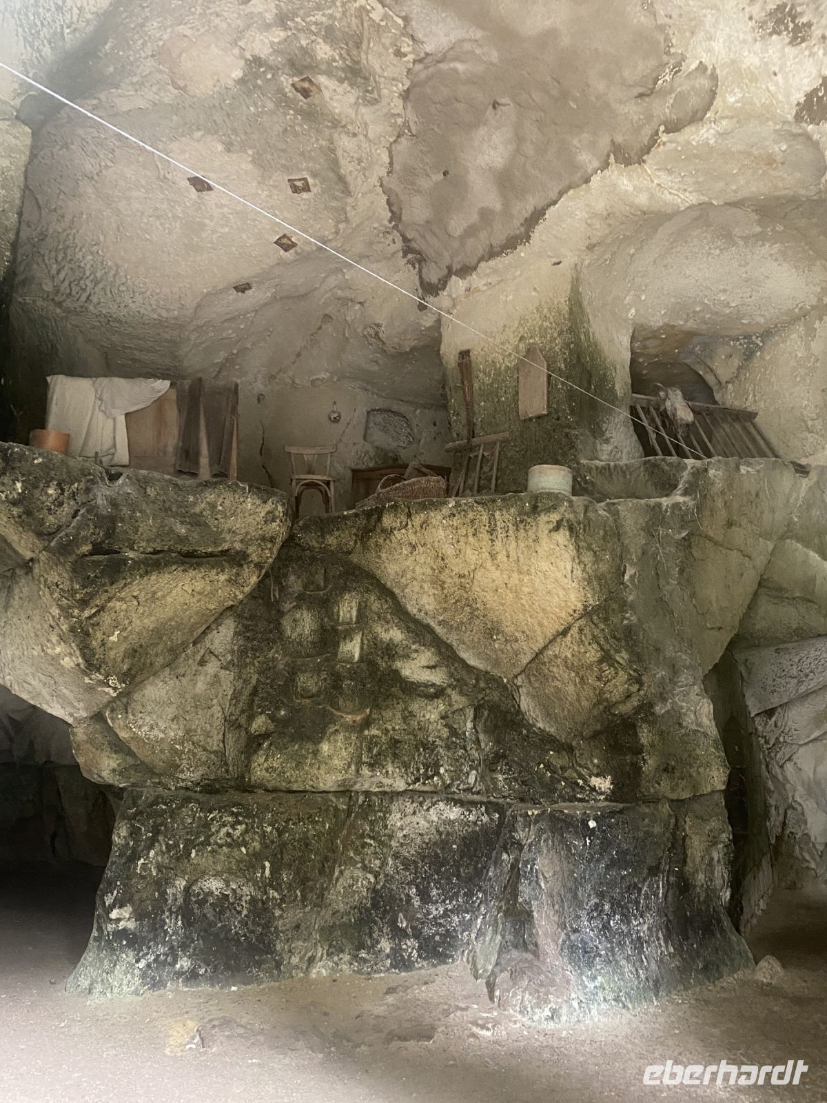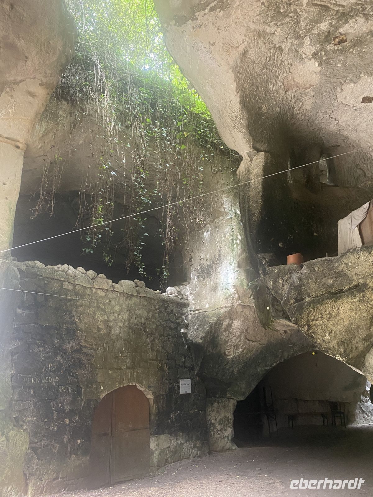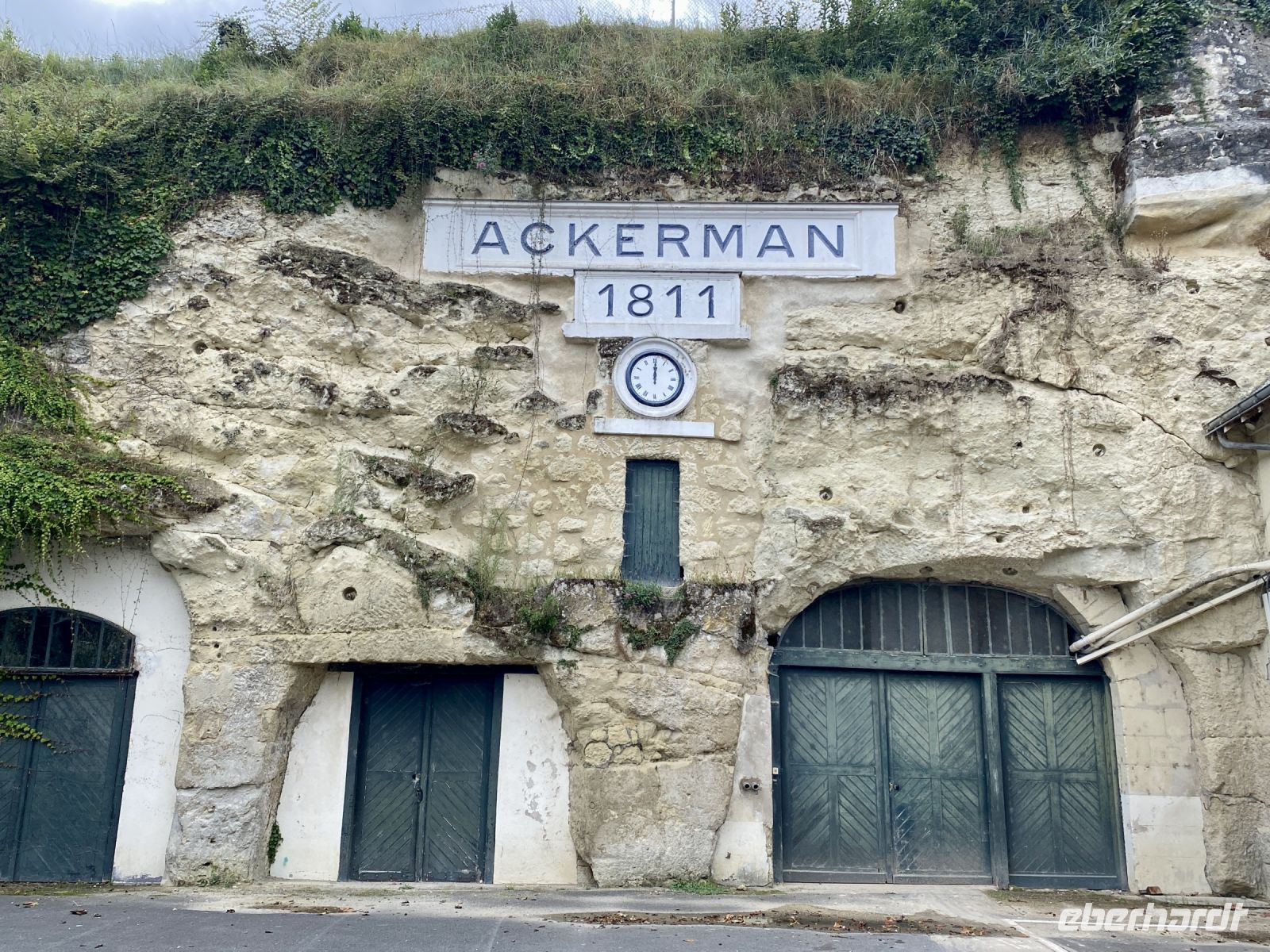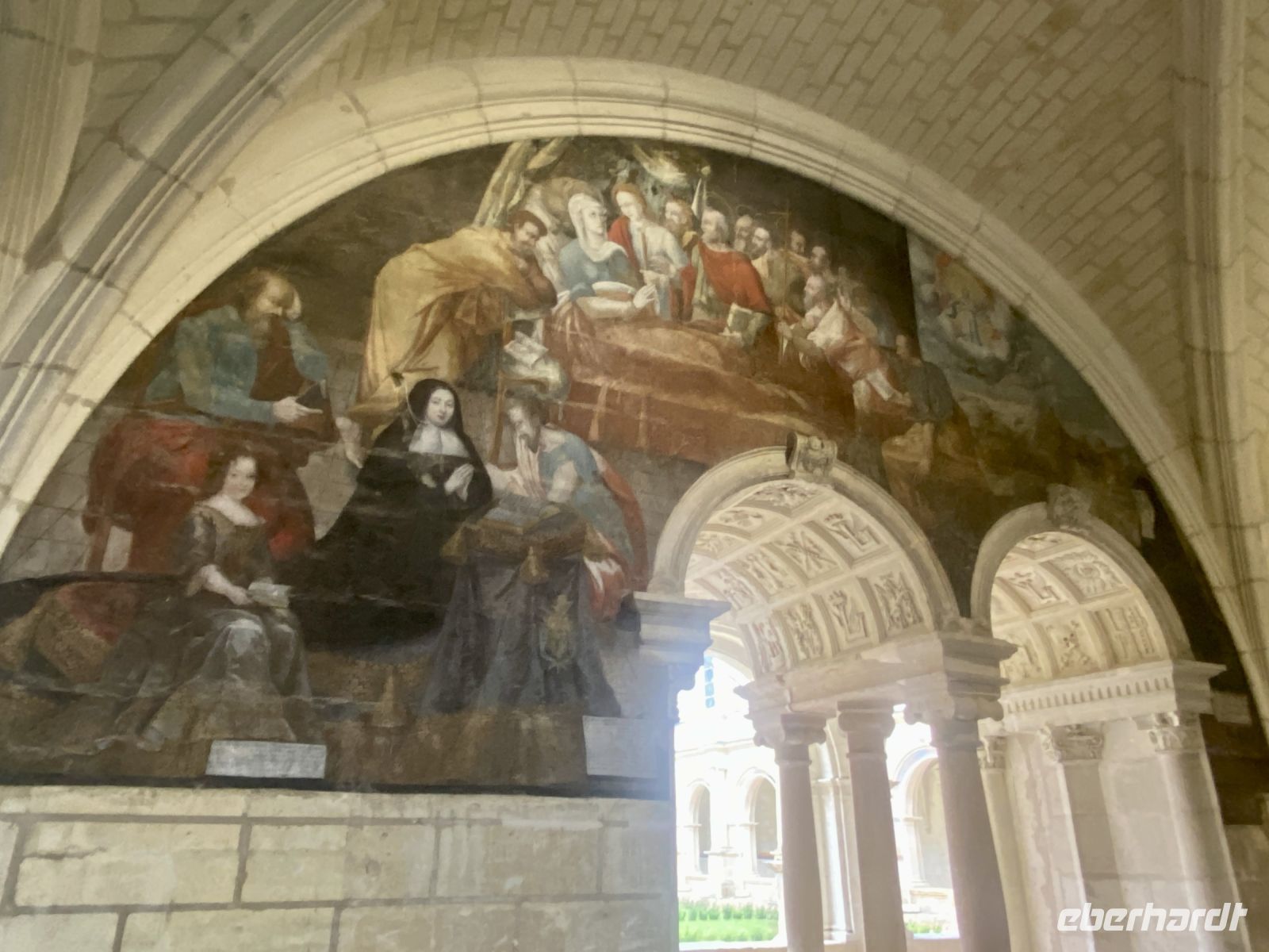 Da die Radkilometer sich in den letzten Tagen zu einer erklecklichen Summe angehäuft haben, drehen wir das Programm unserer heutige Tour einfach um und können so einige Gefällstrecken genießen. Zuerst erkunden wir die altehrwürdige Abtei von Fontevraud, in deren Kirche die Größen des Herrschergeschlechtes der Plantagenets ihre letzte Ruhe gefunden haben. Vor allem die berühmteste Frau des Mittelalters, Eleonore von Aquitanien und ihr nicht weniger berühmter Sohn Richard Löwenherz fesseln unsere Aufmerksamkeit. Aber auch die beiden Kreuzgänge mit ihren bemerkenswerten umliegenden Räumen und vor allem die exaltierte spitzgieblige Küche üben eine eigentümliche Faszination aus. Dann fahren wir wieder zu unserem Fluss hinunter, um mit Hilfe unseres Chef-Navigators zu den bemerkenswerten Höhlenbehausungen von Souzay zu gelangen, um dort in der urigen Kneipe bei guter Musik unsere Mittagspause zu machen. Mit etwas Verspätung (die beiden hinter dem Tresen sind mit unseren Bestellungen etwas überfordert) schwingen wir uns wieder auf unsere Räder und fahren entlang der immer breiter werdenden Loire nach Saumur. Dort schlendern wir durch die Straßen der Altstadt und manche erklimmen gar das schöne Chateau, das durch ein bekanntes Stundenbuch des Herzogs von Berry zu einem Modellschloss wurde. Da die Gegend berühmt für seine Sektherstellung ist, statten wir dem Marktführer Ackerman einen Besuch ab und probieren vier unterschiedliche Cremants, ehe wir uns au bord de la Loire auf unsere letzten Radstrecke machen. Nach über 200 Kilometern steigen wir müde, aber doch alle sehr zufrieden in den Bus zurück nach Tours.