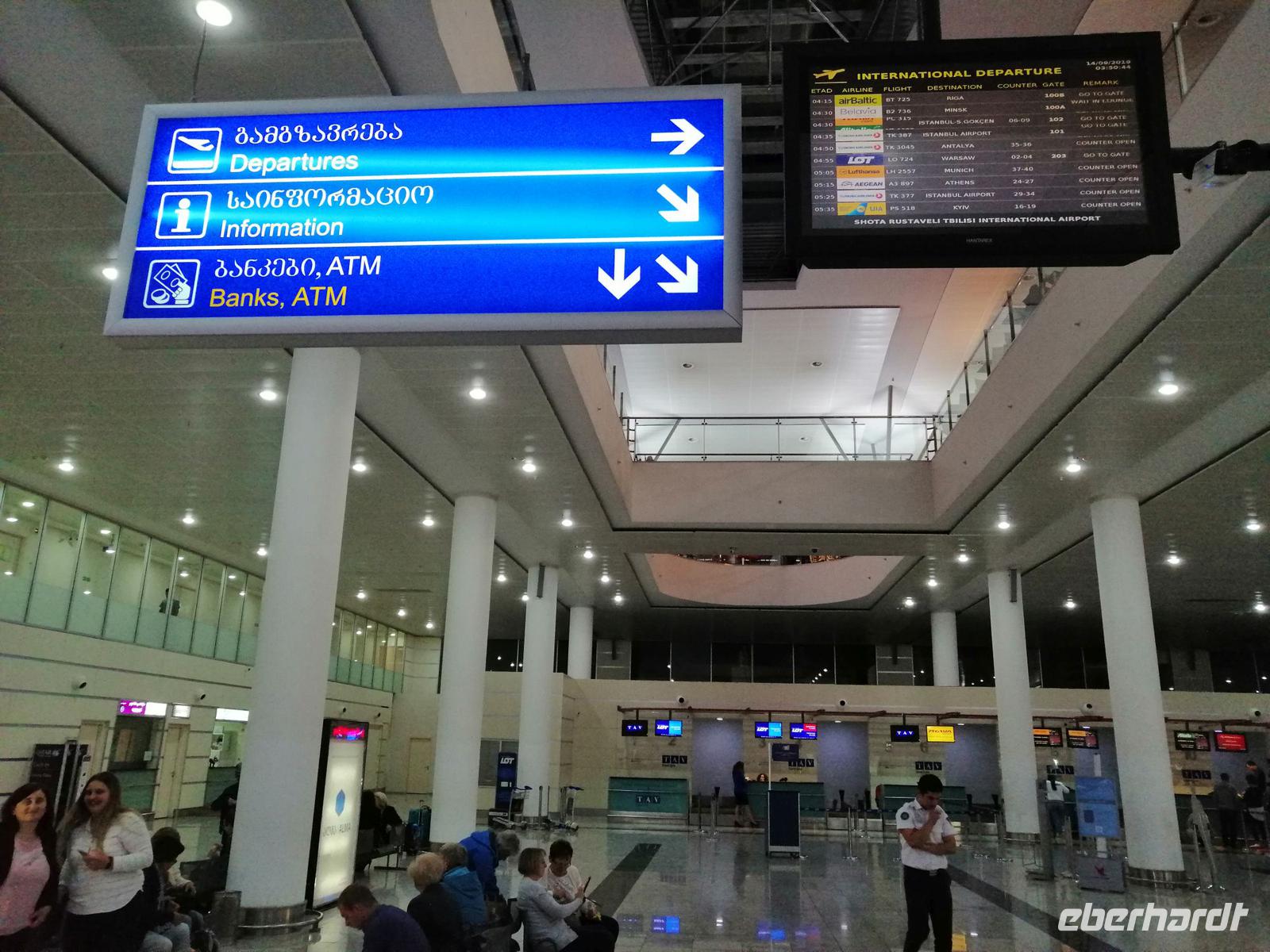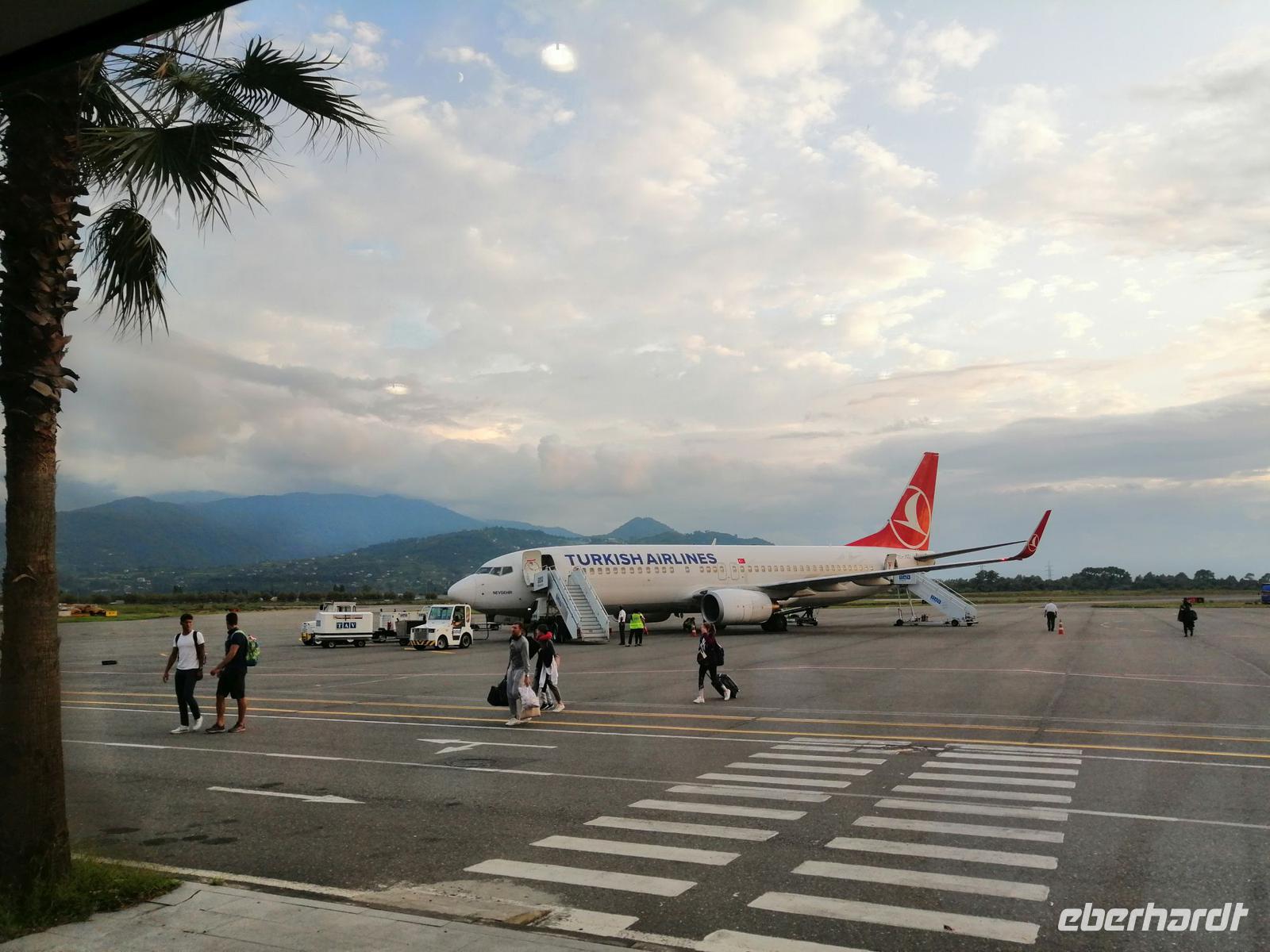 Ein Teil unserer Reisegruppe hat sich am Flughafen Leipzig um 9 Uhr getroffen. Unser Flug hatte 20 Minuten Verspätung, die unser Pilot anteilig unterwegs ausgleichen konnte. Der Flughafen in Istanbul ist riesig, wir haben aber ohne Probleme auch die anderen Reisegäste getroffen. Die Zeit zum Umsteigen ins Flugzeug nach Batumi war zwar sehr kurz aber es hat alles gut geklappt. Der Flug verlief sehr komfortabel: großes Lob an Türkisch Airlines!