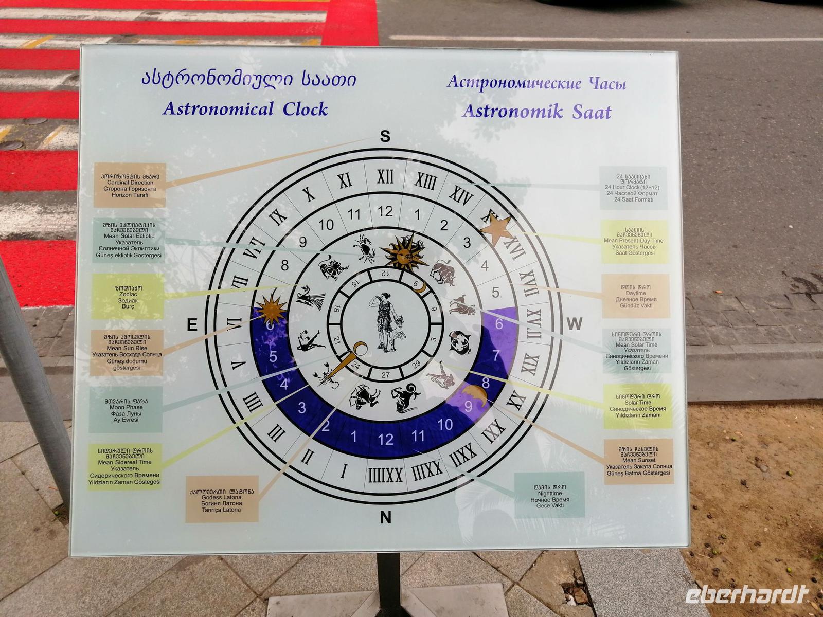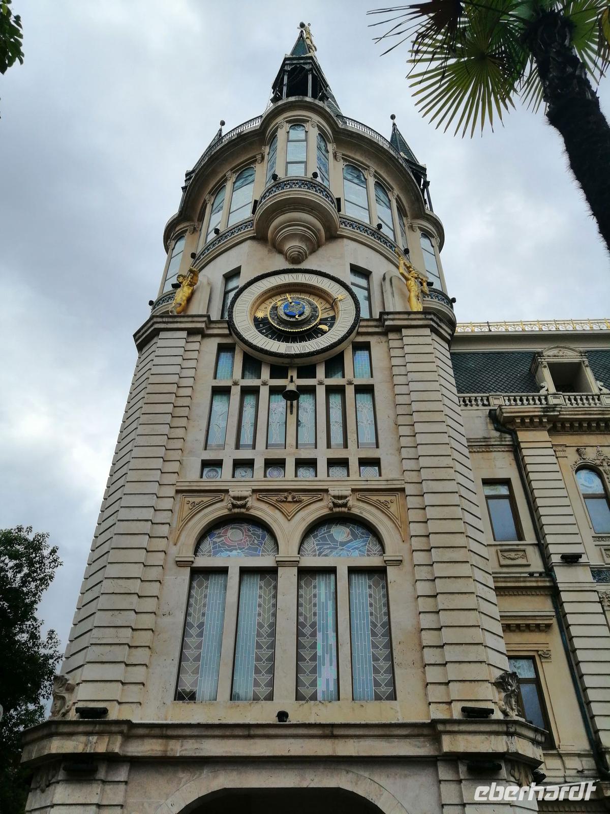 Nach dem leckeren Frühstück starteten wir unsere Stadtführung mit Sopo in Alt-Batumi (Altstadt von Batumi) um 10 Uhr. Zuerst gingen wir zum Europa - Platz, wo Sopo uns über Eckdaten von Georgien informierte. Besonders spannend war es über das Zusammenleben der verschiedenen Religionen zu erfahren. Außerdem erzählte uns Sopo auch über die astronomische Uhr am Europaplatz und ihre Funktionsweise. Anschließend besichtigten wir die neue gestaltete sogenannte Piazza. Dabei handelte es sich um einen Platz in der Altstadt auf dem sich verschiedene Cafés und drei edel Hotels befanden.