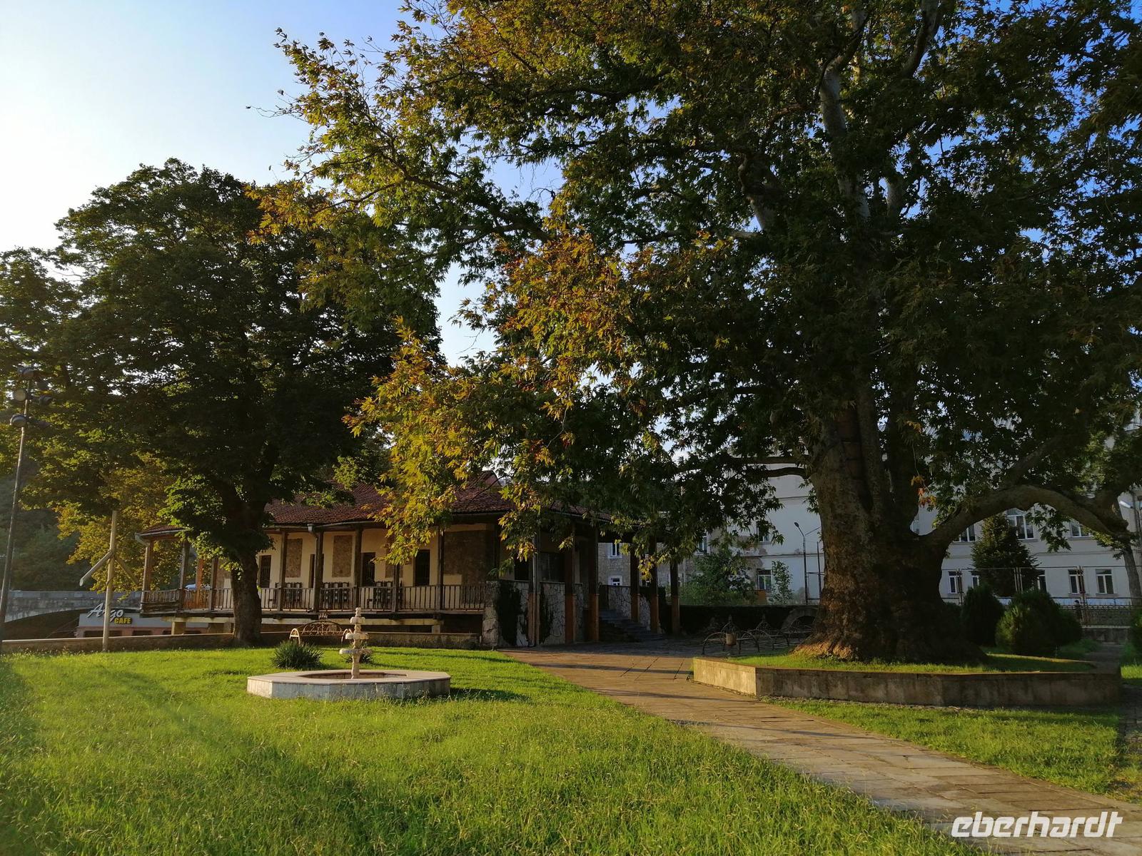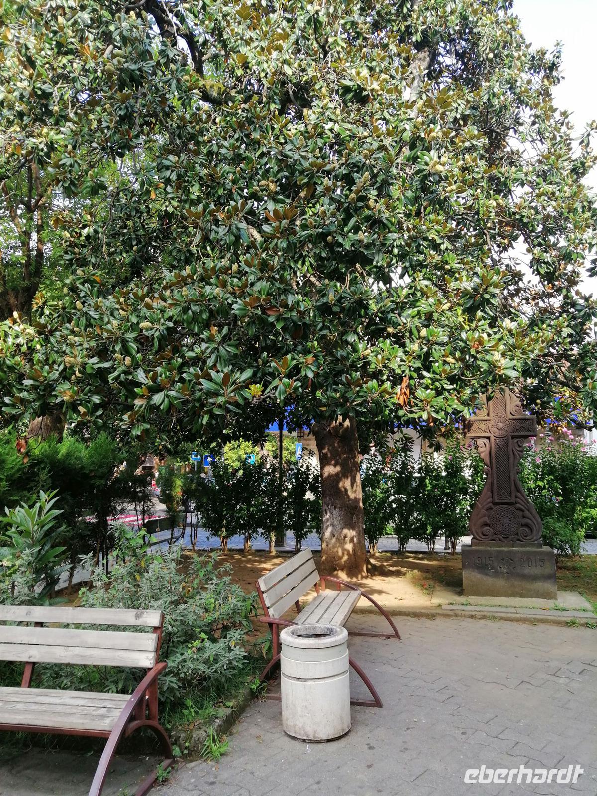 Danach fuhren wir mit unserem Bus zum Park des 9. Aprils. Diese schattige Parkanlage wurde als Erinenrung an Niederschlagung der antisowjetischen Demonstration errichtet. Viele Sitzbänke luden zum Ausruhen an, was wir auch gerne gemacht haben. Ein Straßenhändler lief mit einem Wagen durch den Park und bot Wasser und Eis an.