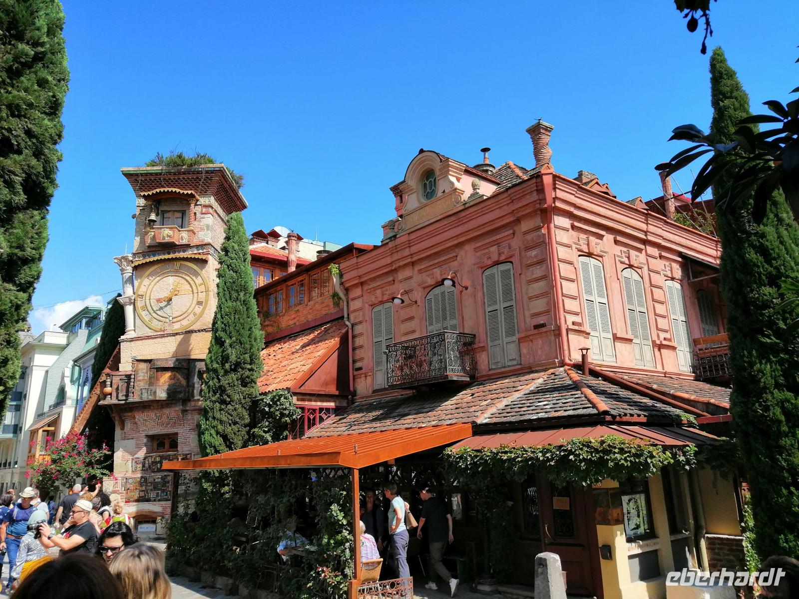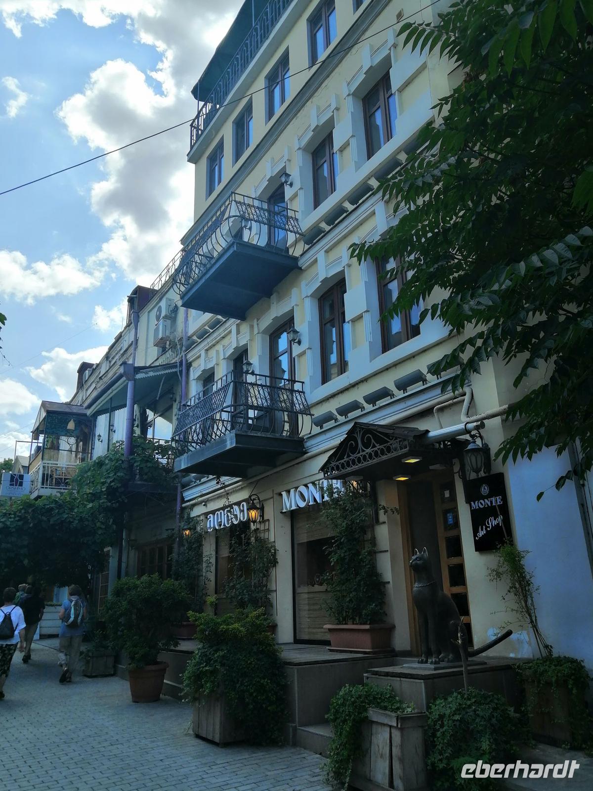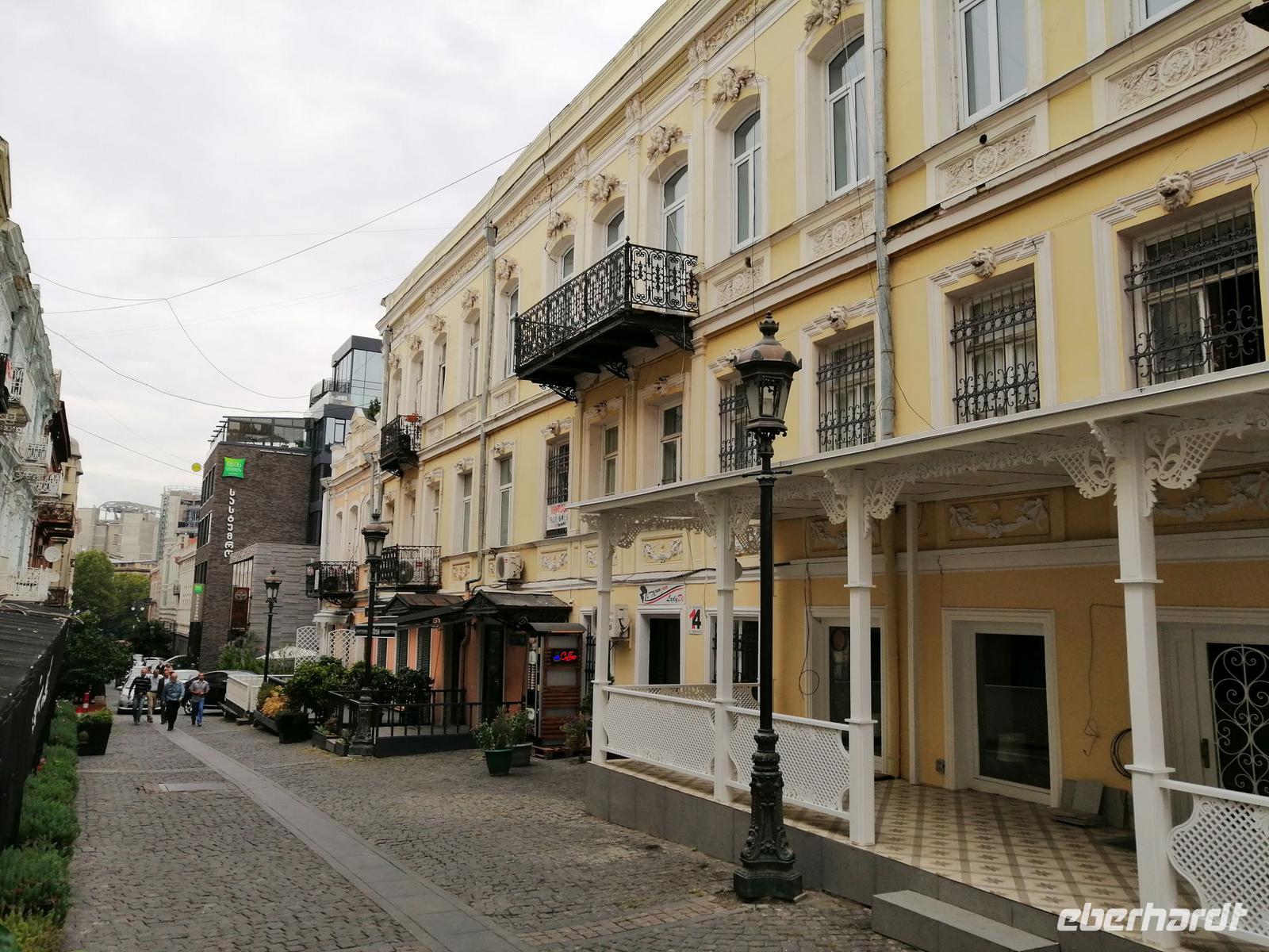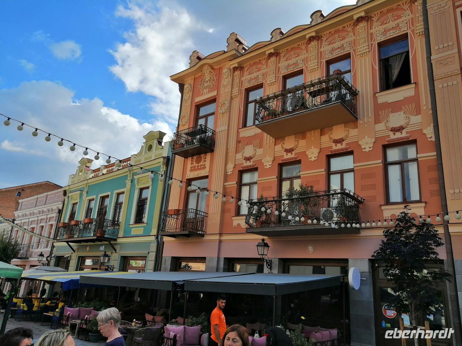 Nachmittag fuhren wir nach Tbilisi zurück und besuchten die Emaille-Werkstatt und schauten zu, wie in alter Tradition Schmuckstücke hergestellt wurden. Danach unternahmen wir einen tollen Spaziergang durch Tbilisi. Besonders interessant dabei war das historische Stadtviertel Neu-Tiflis, wo sich zahlreiche Jugendstilhäuser befinden. Dieses Viertel wurde 1818 von Deutschen nahe der Stadt Tiflis unter dem Namen Neu-Tiflis gegründet. Auf dem Tifliser Stadtplan von 1845 ist es als Nemetskaya Kolonie (deutsche Kolonie) verzeichnet. Neu-Tiflis wurde 1862 nach Tiflis eingemeindet und entwickelte sich mit seinen repräsentativen Bauten, Geschäften, Handwerksbetrieben, Vereinen, schulischen, kulturellen, wirtschaftlichen, sozialen und administrativen Einrichtungen zum Mittelpunkt der Tifliser Deutschen.
