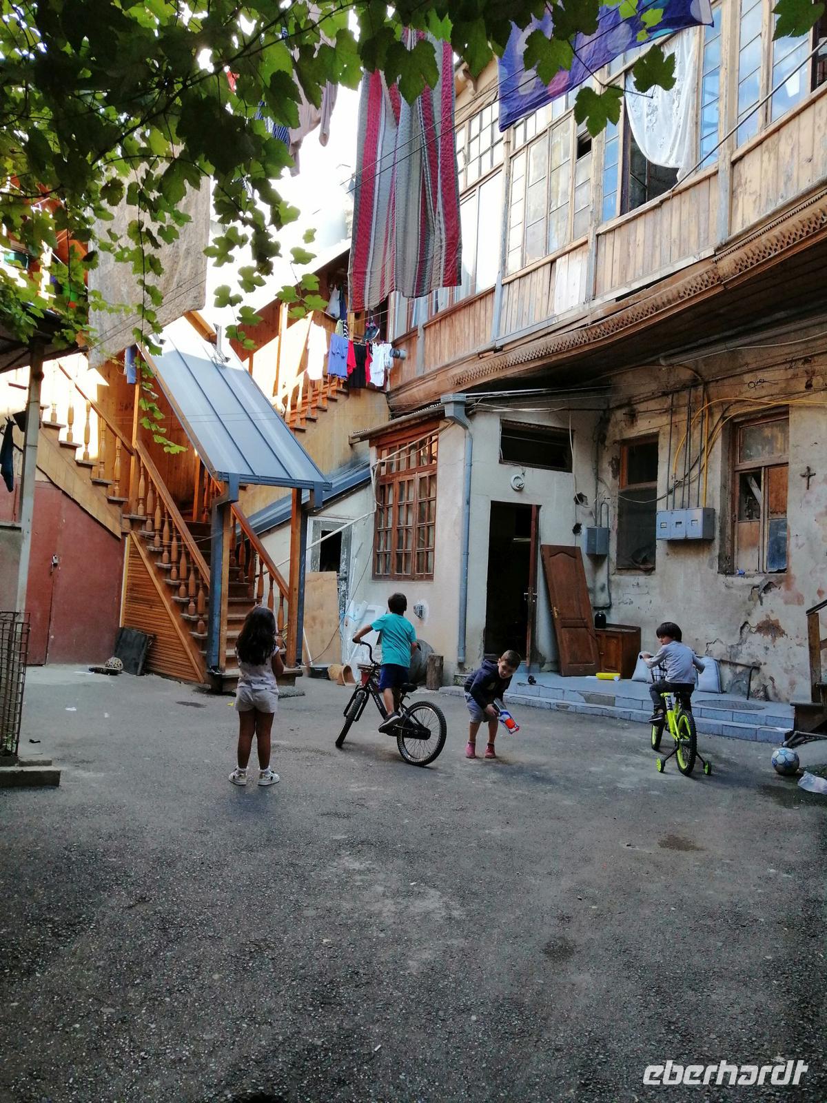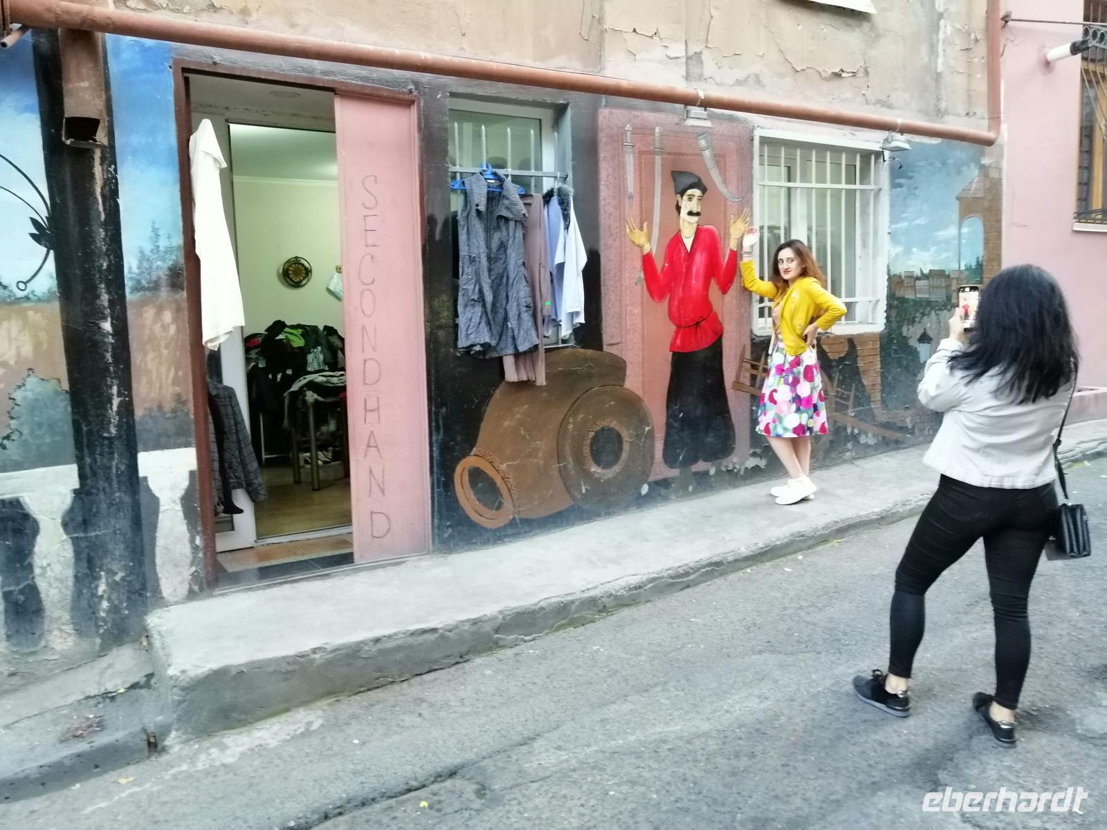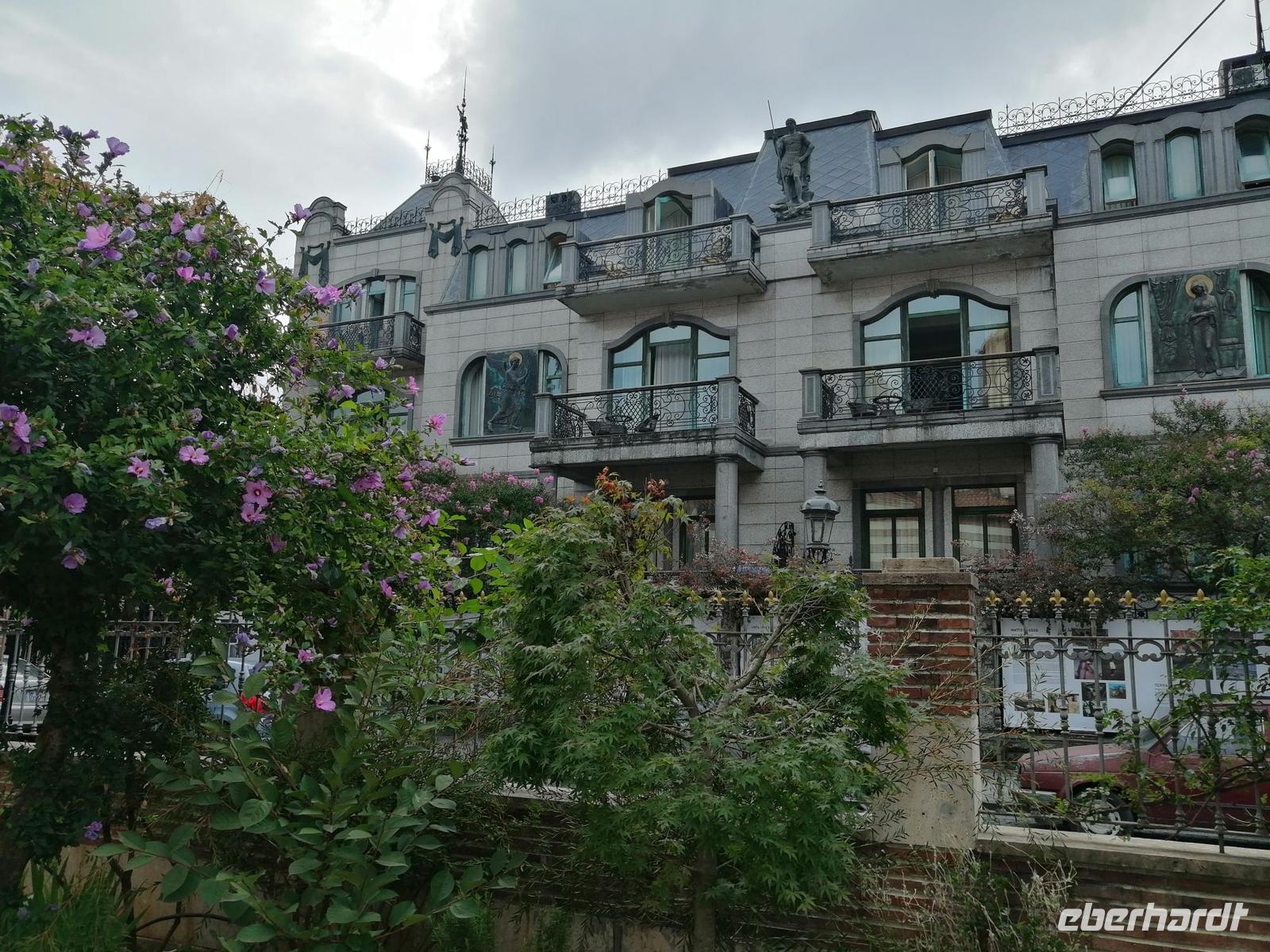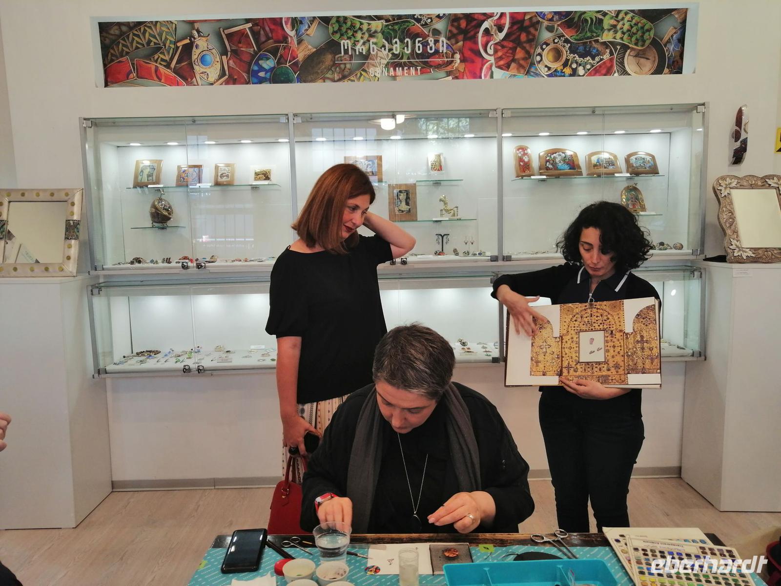 Nachmittag fuhren wir nach Tbilisi zurück und besuchten die Emaille-Werkstatt und schauten zu, wie in alter Tradition Schmuckstücke hergestellt wurden. Danach unternahmen wir einen tollen Spaziergang durch Tbilisi. Besonders interessant dabei war das historische Stadtviertel Neu-Tiflis, wo sich zahlreiche Jugendstilhäuser befinden. Dieses Viertel wurde 1818 von Deutschen nahe der Stadt Tiflis unter dem Namen Neu-Tiflis gegründet. Auf dem Tifliser Stadtplan von 1845 ist es als Nemetskaya Kolonie (deutsche Kolonie) verzeichnet. Neu-Tiflis wurde 1862 nach Tiflis eingemeindet und entwickelte sich mit seinen repräsentativen Bauten, Geschäften, Handwerksbetrieben, Vereinen, schulischen, kulturellen, wirtschaftlichen, sozialen und administrativen Einrichtungen zum Mittelpunkt der Tifliser Deutschen.
