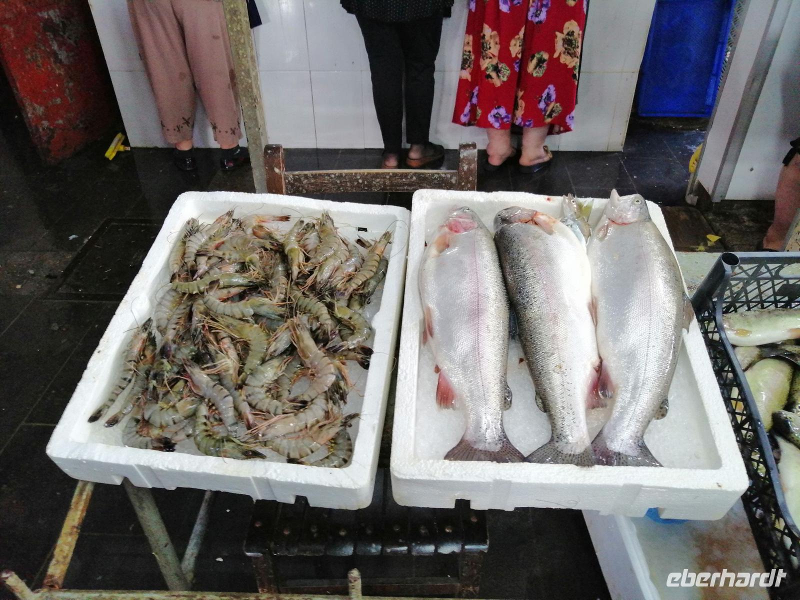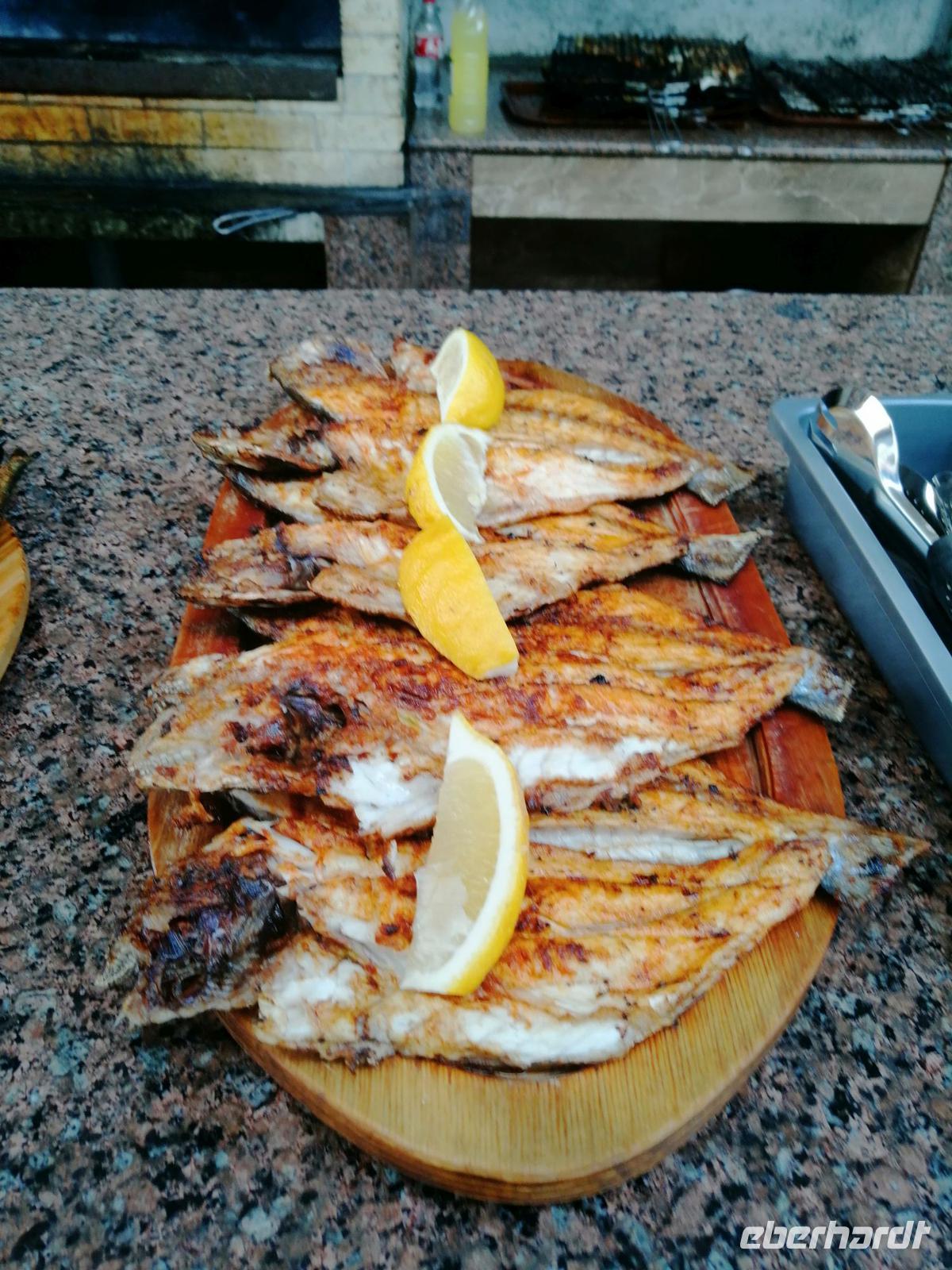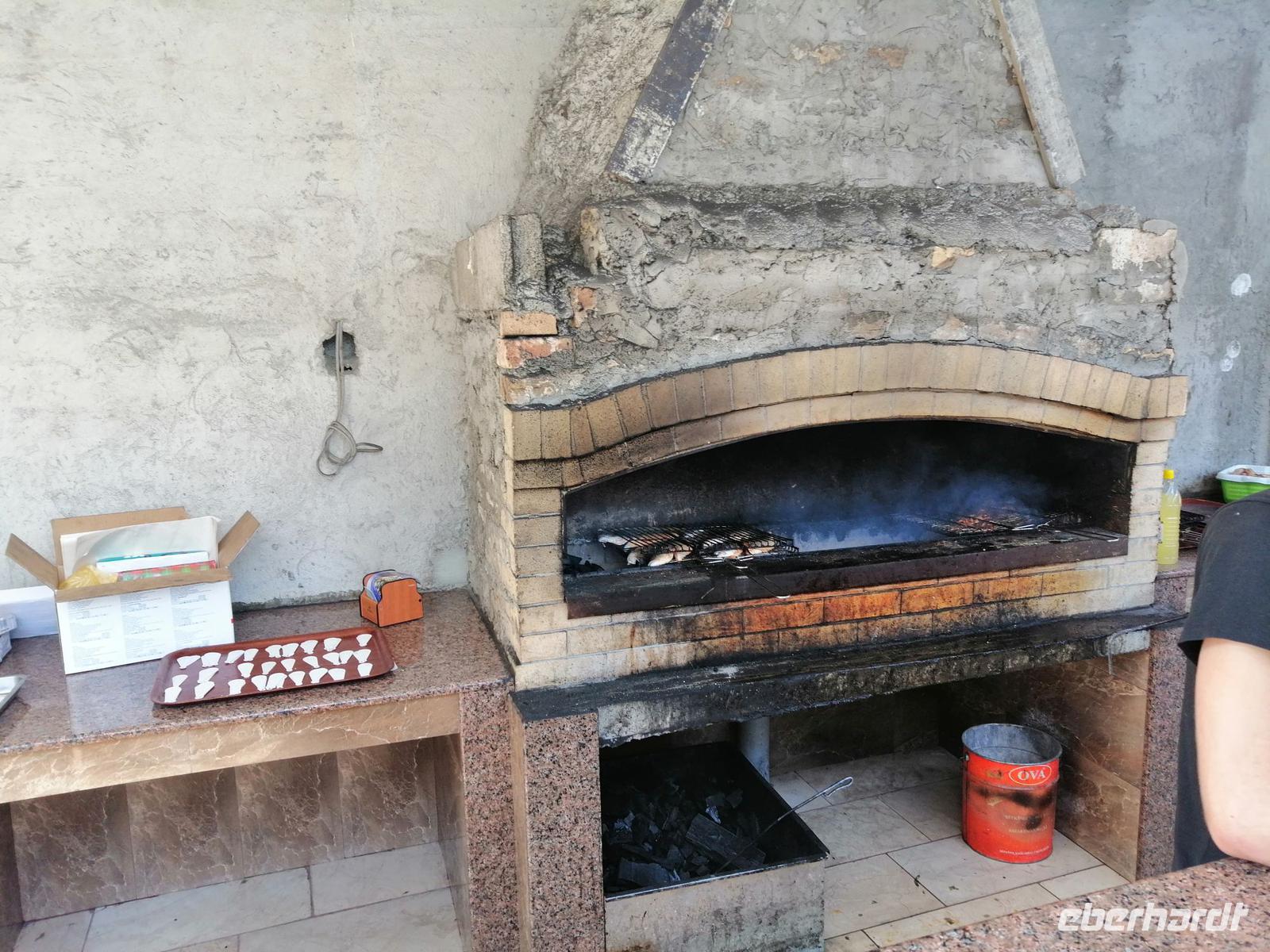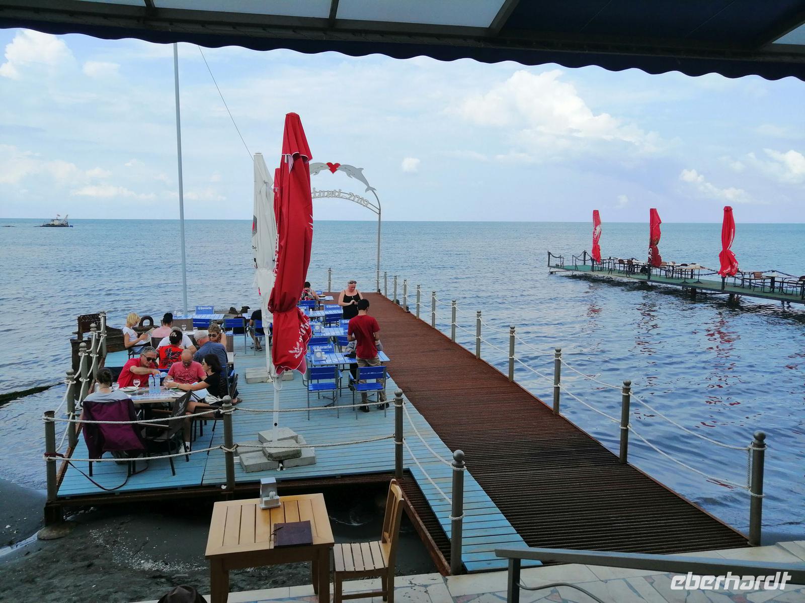 Danach schlugen wir mit Sopo unseren Reisegästen vor mit der Stadt-Seilbahn auf einen Berg zu fahren. Die Fahrt war spektakulär! Wir hatten eine gute Sicht über die ganze Stadt. Nach der Fahrt mit der Seilbahn, hat uns unser Busfahrer Sergio abgeholt und zum Fischmarkt in Batumi gebracht. Der Besuch des Fischmarktes war ein tolles Erlebnis! Man konnte zuschauen wie die Händler ihre Fische ausgenommen, angeboten und anschließend sie verkauft haben. Wir suchten uns die leckeren Doraden aus und gingen in die Fischgaststätte um die Ecke um die Fische grillen zu lassen. Das Essen schmeckte uns sehr gut. Nach dem leckeren Mittagessen in der Fischgaststätte am Strand, brachte uns unser Busfahrer Sergio zum Botanischen Garten.