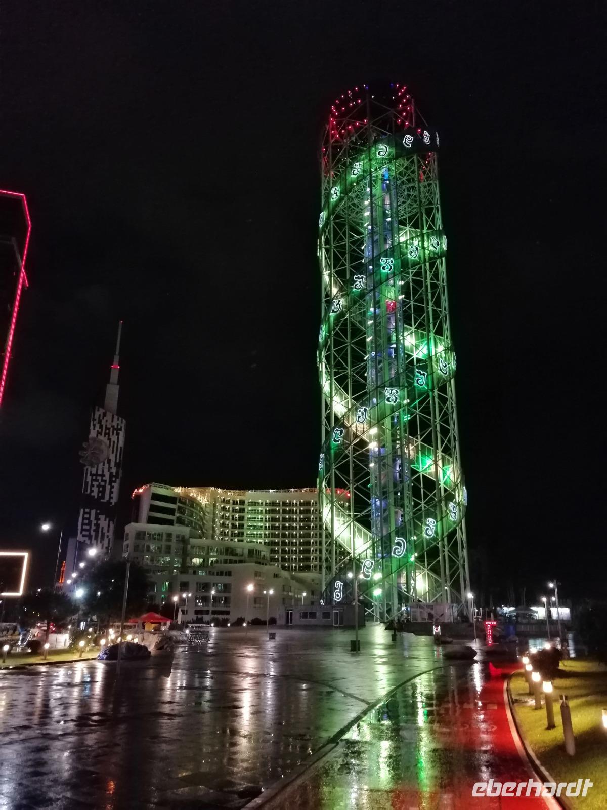 In Batumi angekommen, wurden wir von unserer Reisebegleiterin Sopo und unserem Busfahrer Sergo empfangen. Es war kurz nach 19 Uhr. Wir fuhren gemeinsam ins Hotel Divan und schauten uns Batumi bei Nacht an. Nach dem Einchecken im Hotel, gab es noch extra für uns ein leckeres Abendbrot gegen 21 Uhr. Wir freuten uns auf den nächsten Tag in Batumi!