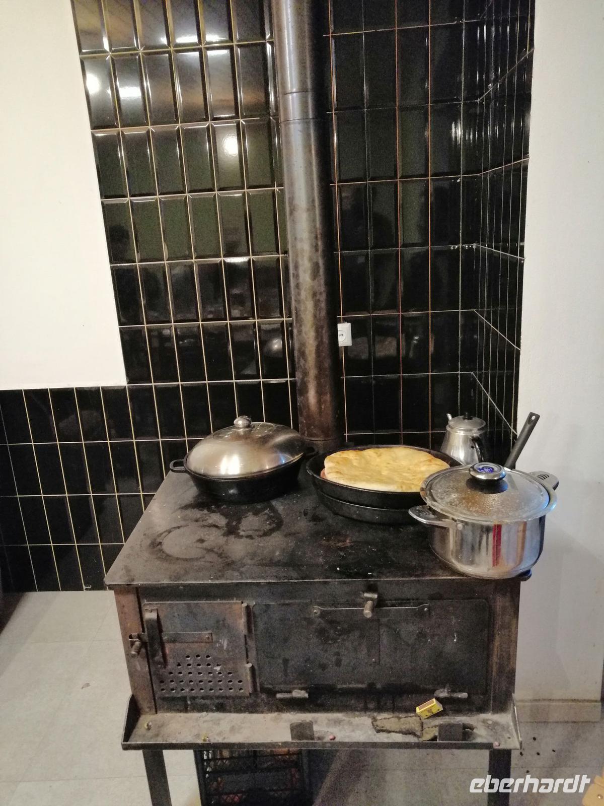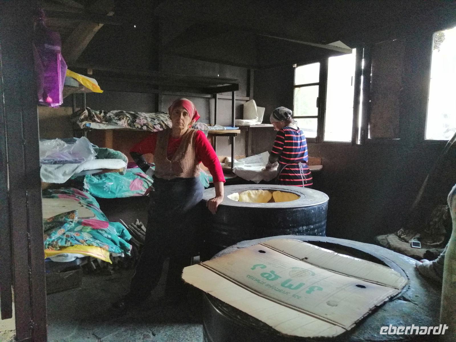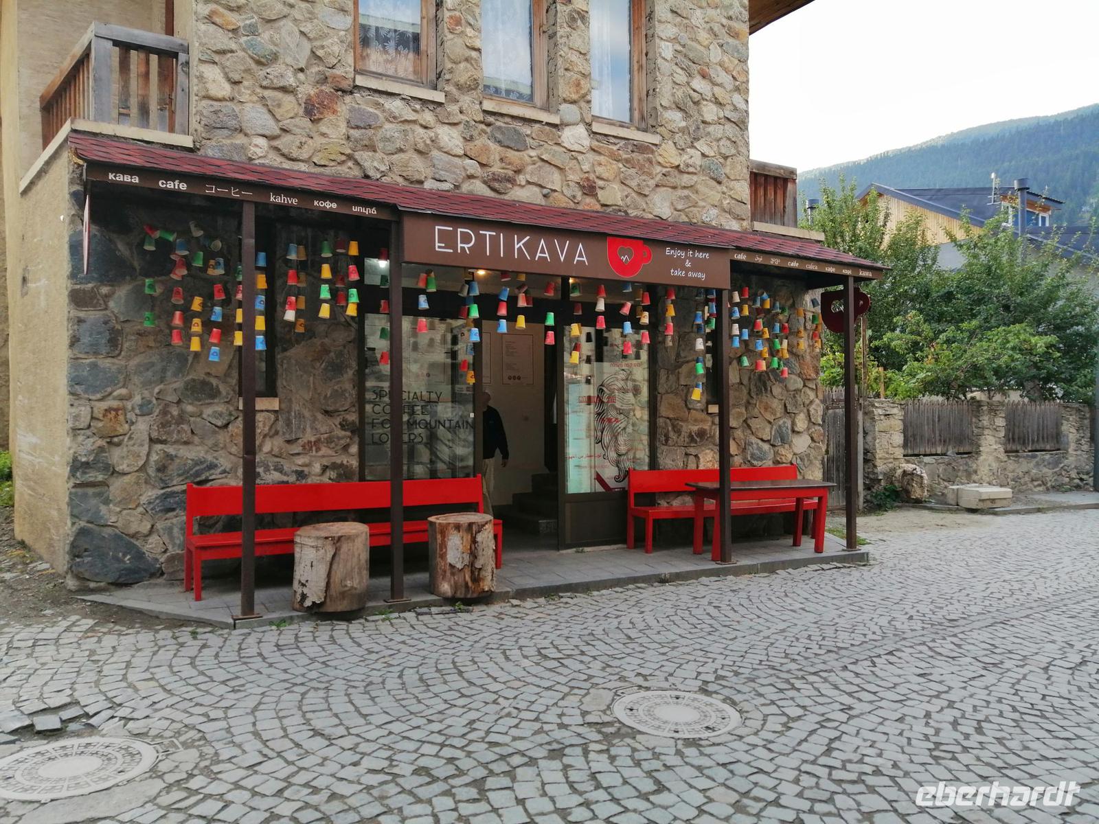 Die kurze Kaffeepause unterwegs mit einem echt guten Kaffee im Café Lavazza hat uns allen gut getan! Mestia (1.500 m hoch) erreichten wir kurz nach 17 Uhr. Im neuen Hotel Shgedi gab es als Begrüßung ein Tschascha (georgischer Weinbrand). Nach dem Abendessen direkt im Hotel unternahmen wir einen Spaziergang durch die Stadt und trafen zufällig einen Bäcker, der uns in seine Backstube eingeladen und sein Handwerk gezeigt hat. Wir freuten uns auf die kommenden Tage in Swanetien!