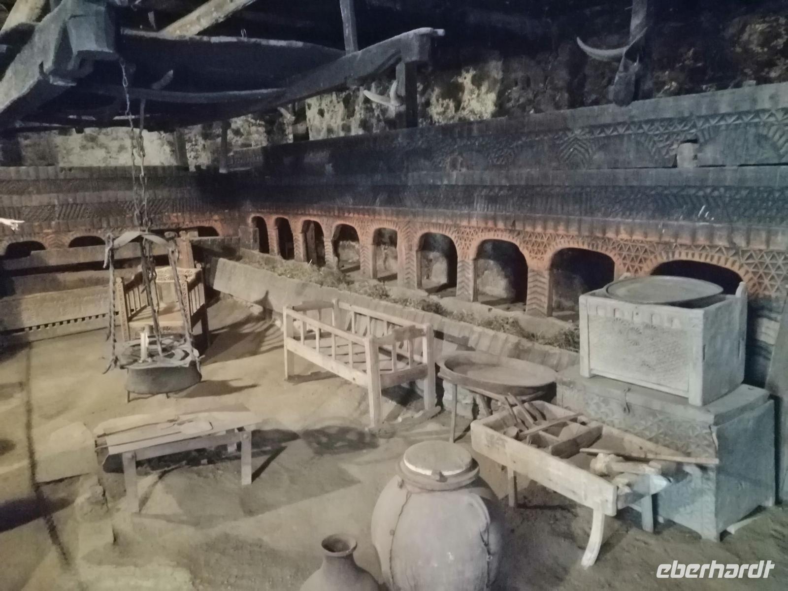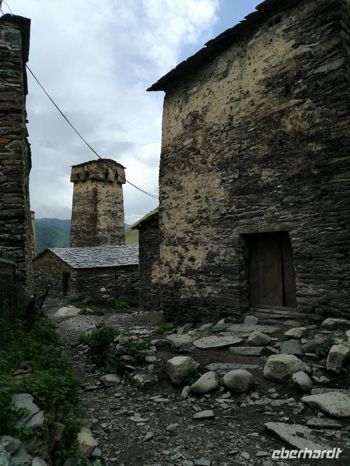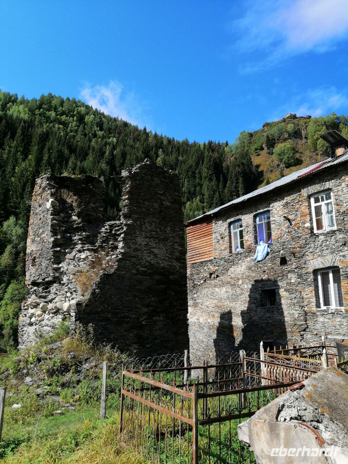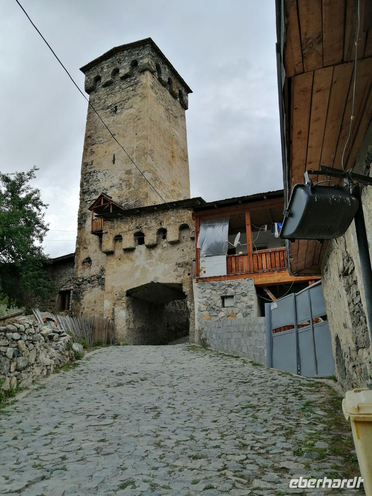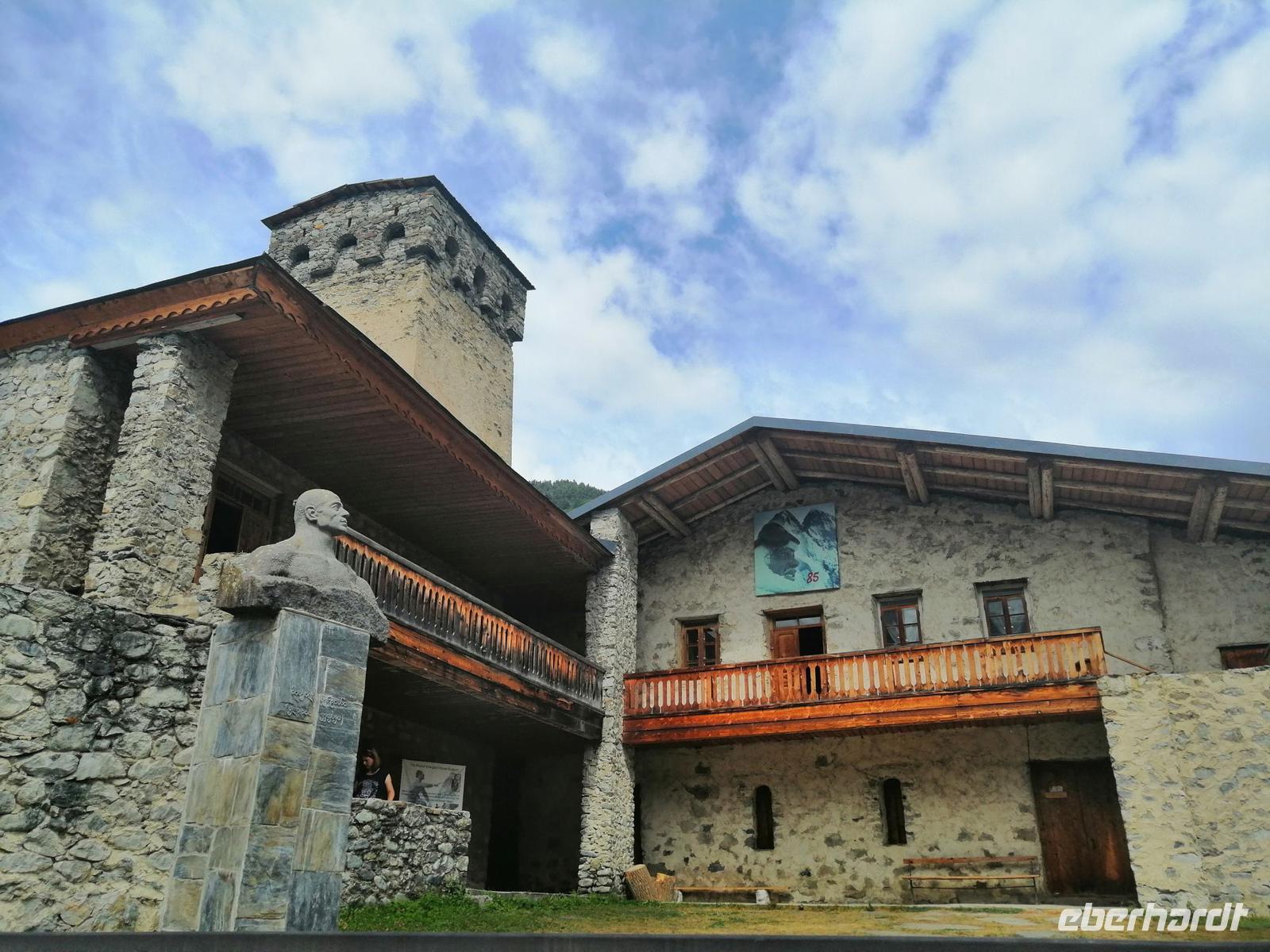 Nach der kurzen Wanderung, fuhren wir zurück nach Mestia und besichtigten das Bergsteiger-Museum vom Michael Chergiani - einem berühmten Bergsteiger des Kaukasus, den man noch als Tiger der Berge genannt hat. Außerdem erfuhren wir während der kurzen Führung durch ein swanisches Wohnhaus (auch Matschubi genannt), wie die Menschen in Swanetien früher mit Wintervorrat und Tieren gemeinsam gelebt und gewohnt haben. Zum Wohnhaus gehört auch ein eigener Wehrturm, der Jahrhunderte lang der ganzen Großfamilie Schutz bot und den wir auch besichtigt haben.
