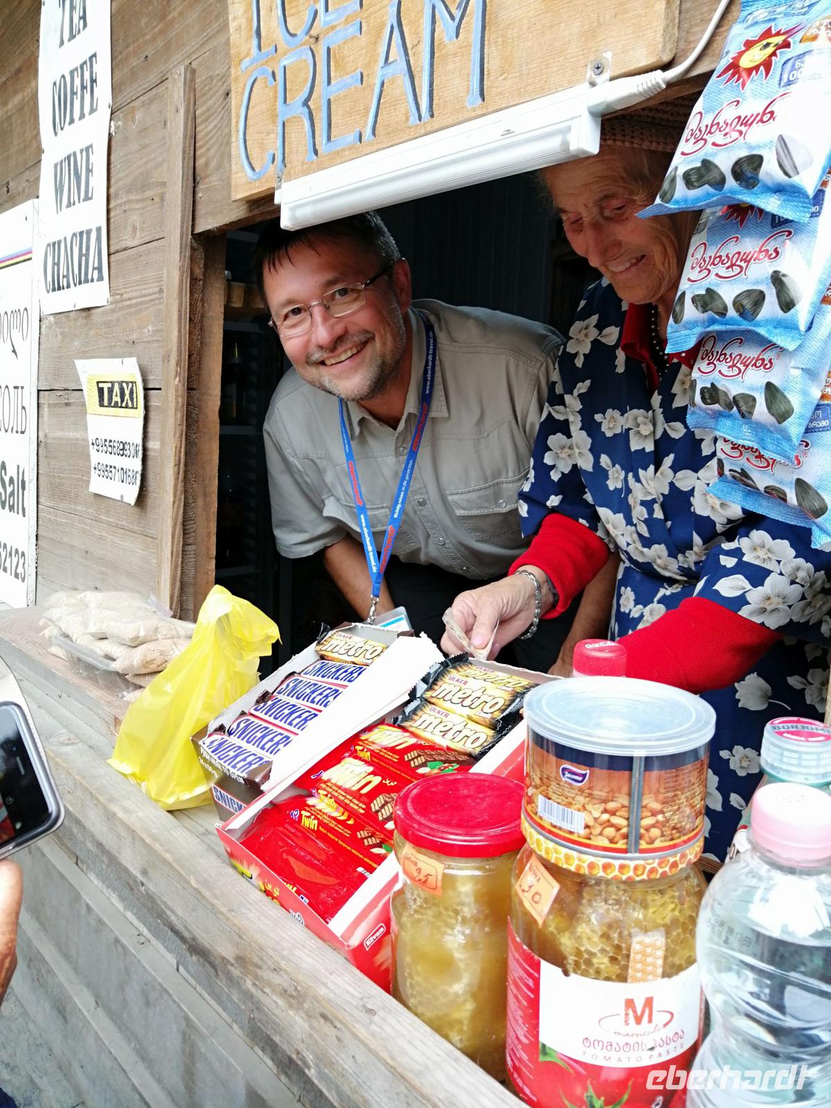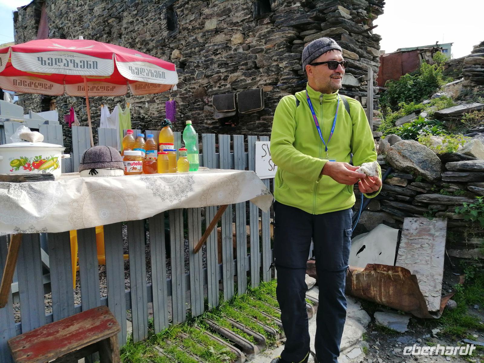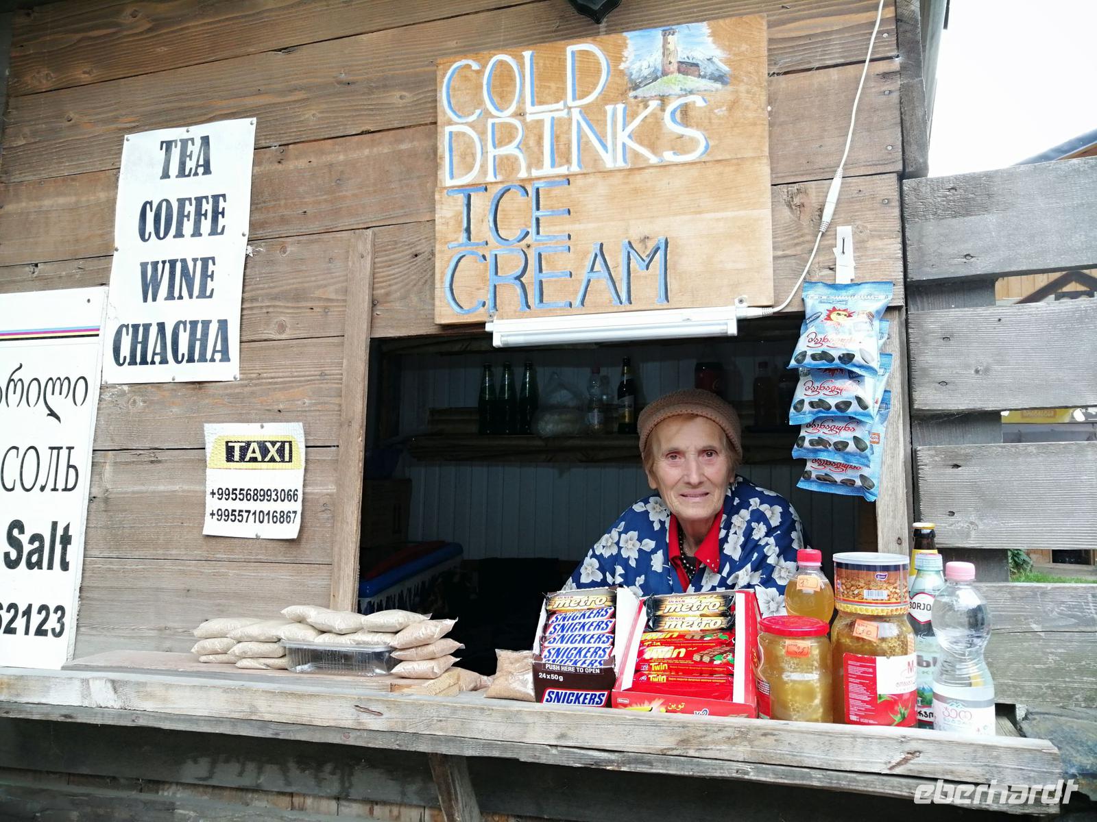 Während des anschließenden Spazierganges durch Mestia besuchten wir das kleine Kiosk von der Nadja - einer Oma, die regionale typisch swanische Kräuter (z.B. swanisches Kräutersalz) anbietet und auch ein Gasthaus namenns "Nadja" unterhält.