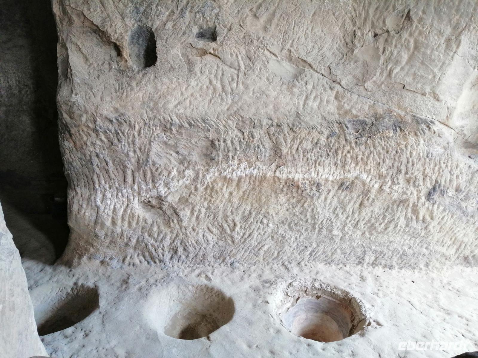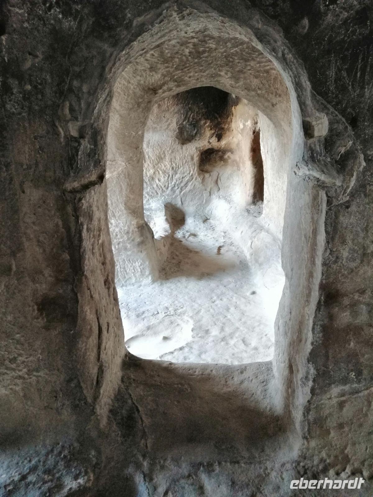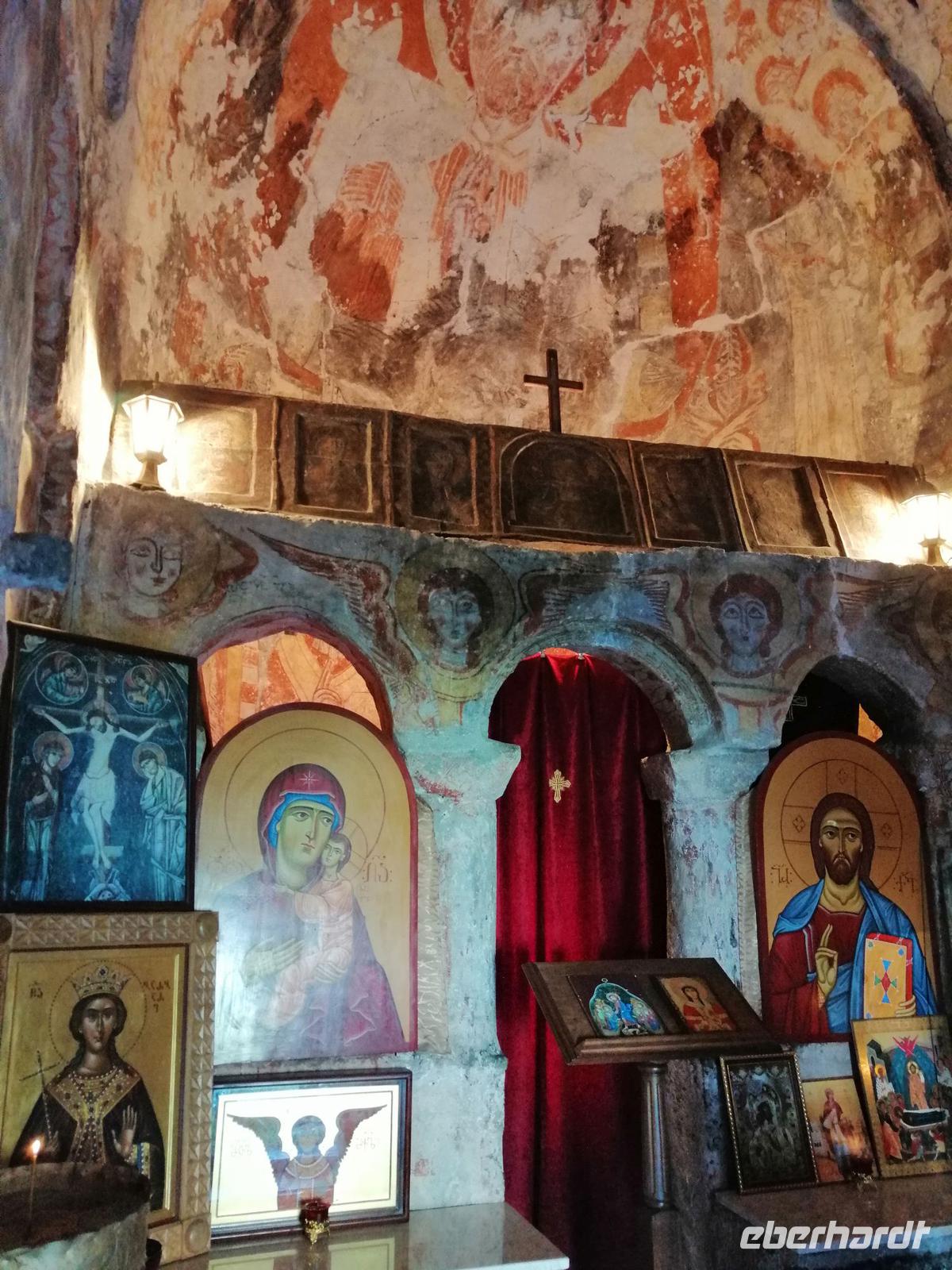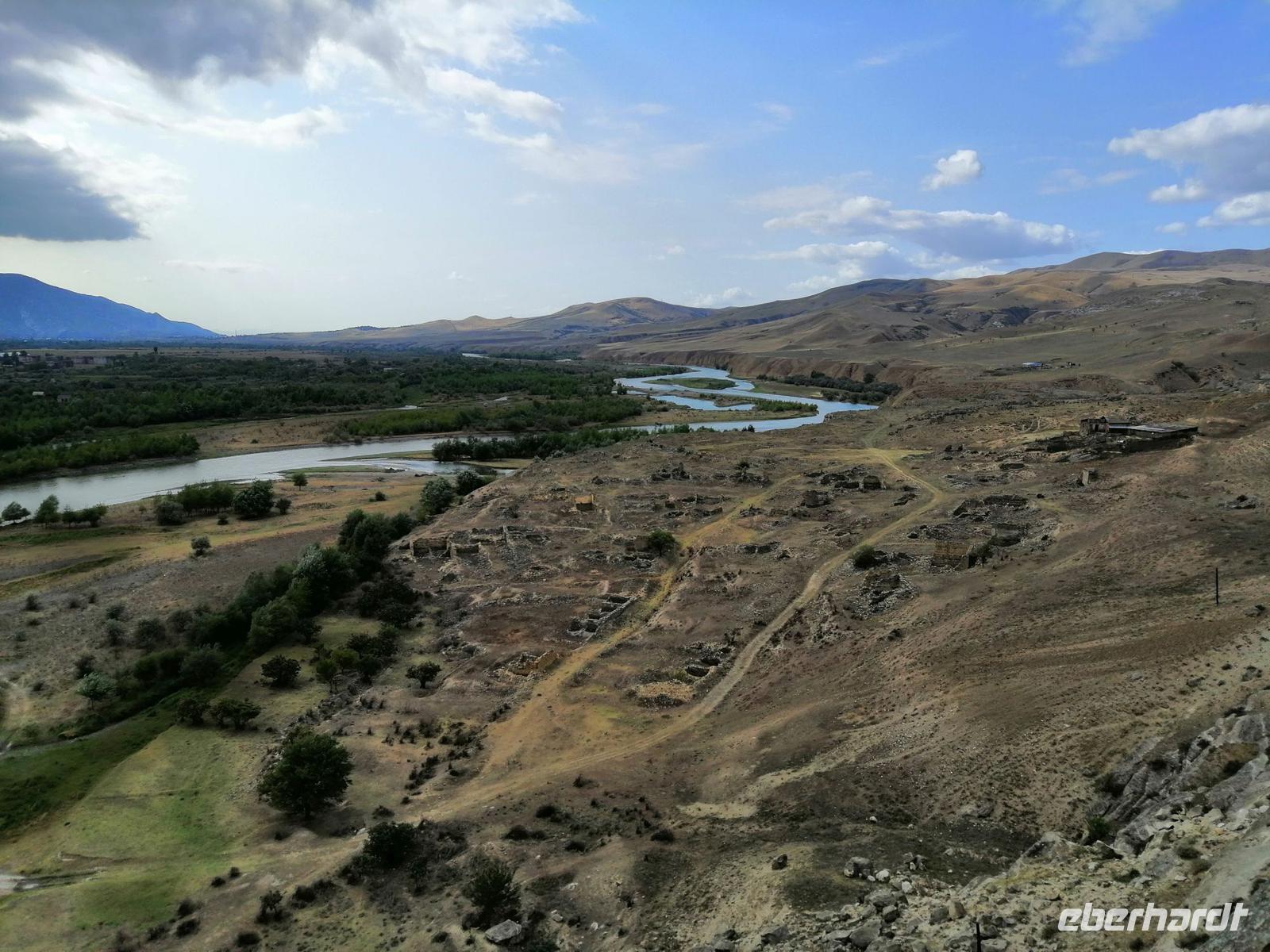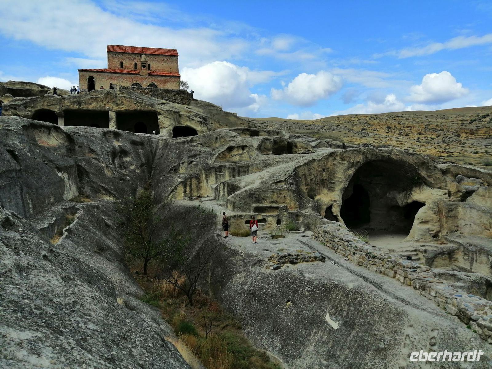 Anschließend fuhren wir nach Uplisziche und besuchten dort die Reste einer sehr beeindrückenden Höhlenstadt aus dem 2. und 3. Jh. Im Mittelalter sollten hier bis 20.000 Menschen gelebt haben. Die strategisch günstige Lage der Stadt begünstigte den Handel mit den vorüberziehenden Karawanen entlang der Seidenstraße. In diesem großen Freilichtmuseum schaueten wir uns eine Felsenbasilika, eine Felsenwohung (Saal der Tamara), eine Apotheke, eine Kirche und eine antike Nekropole an. Durch einen "geheimen Tunnel" stigen wir dann zum nördlichen Ufer der Mtkvari ab.