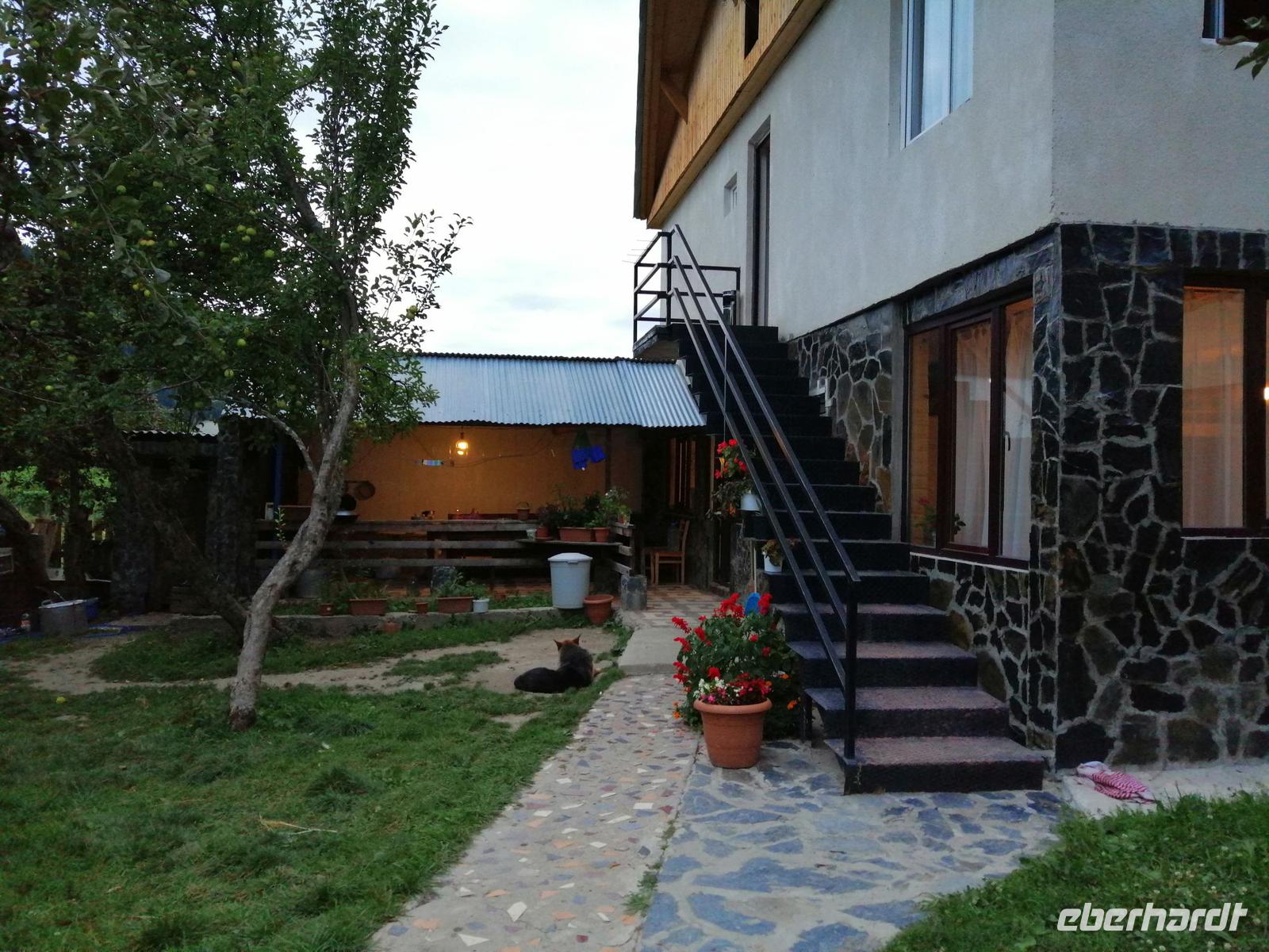 Starkt beeindrückt von dem echten swanischen Dorf, kehrten wir gegen 17 Uhr nach Mestia zurück. Abends wurden wir von der Familie Faliani zum Abendessen eingeladen. Das selbsgekochte Essen im Wohnzimmer der Familie schmeckte uns sehr gut. Mit Sopo´s Hilfe konnten wir uns auch über das Leben in Mestia mit der Familie unterhalten.