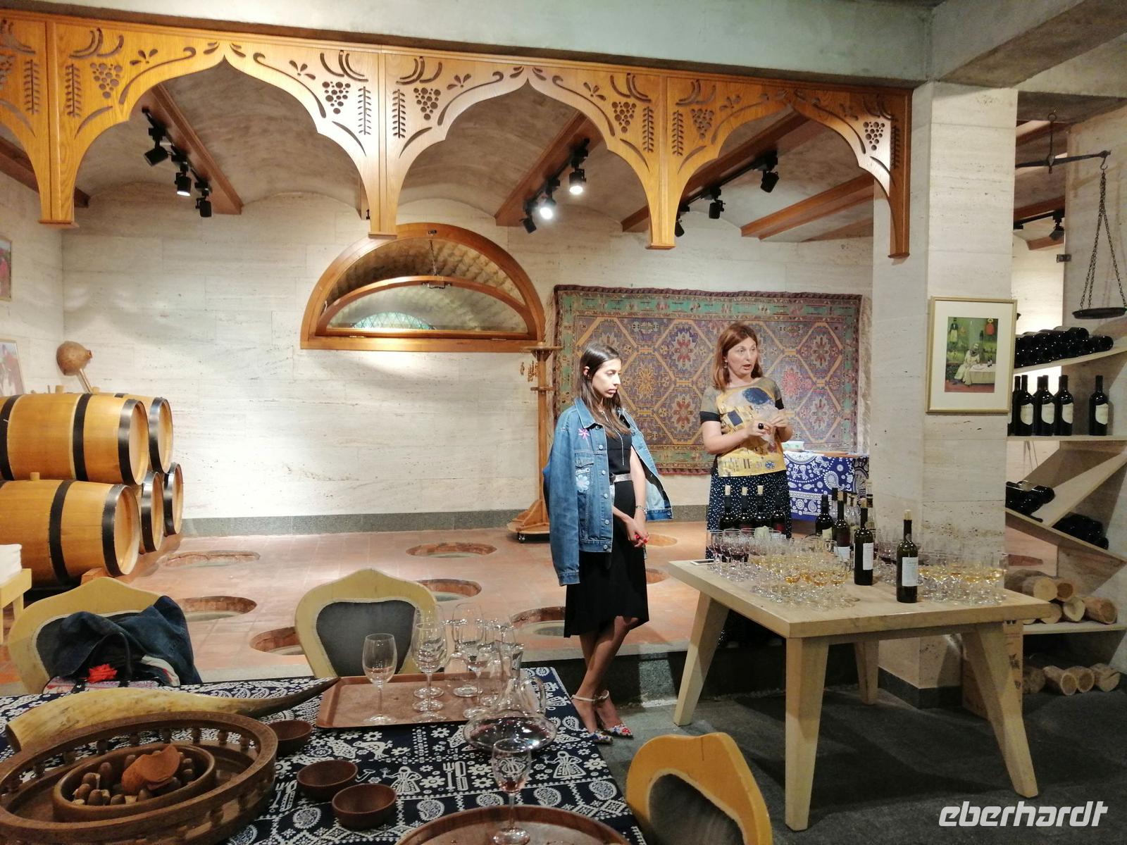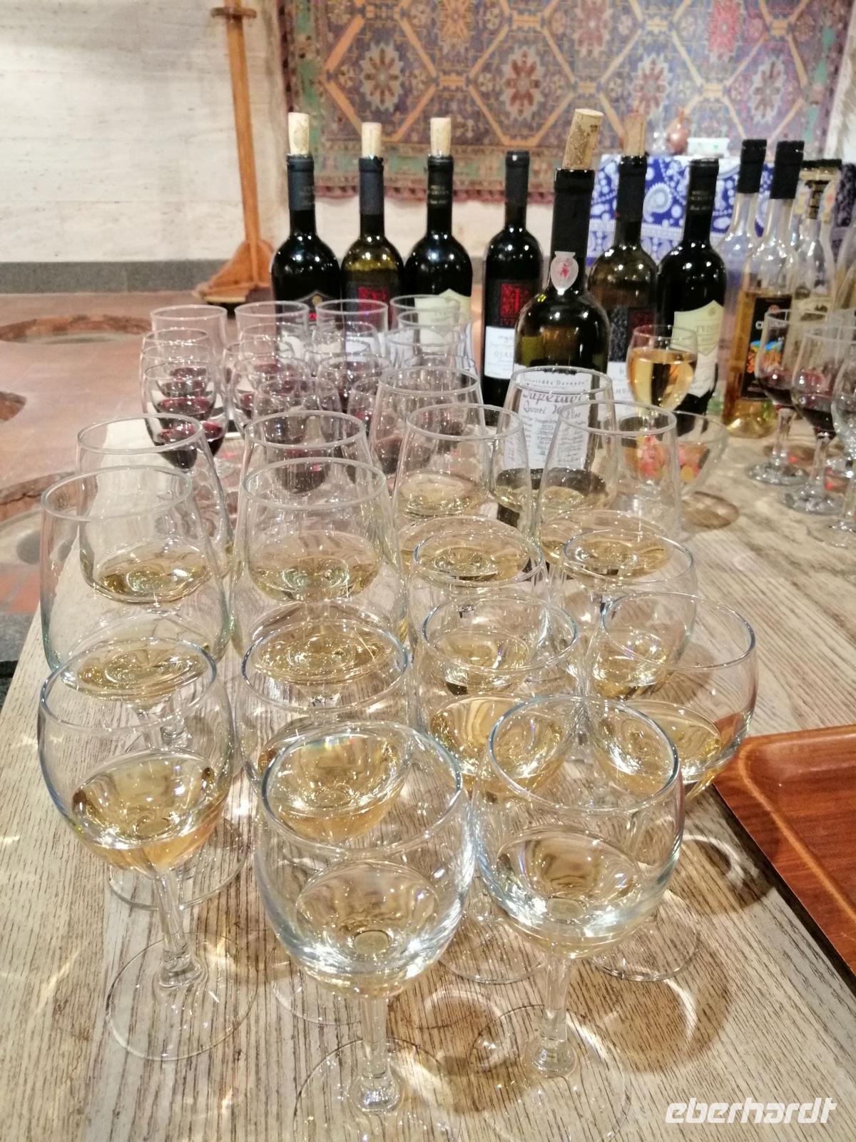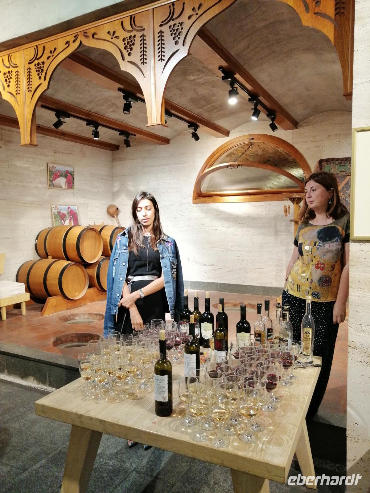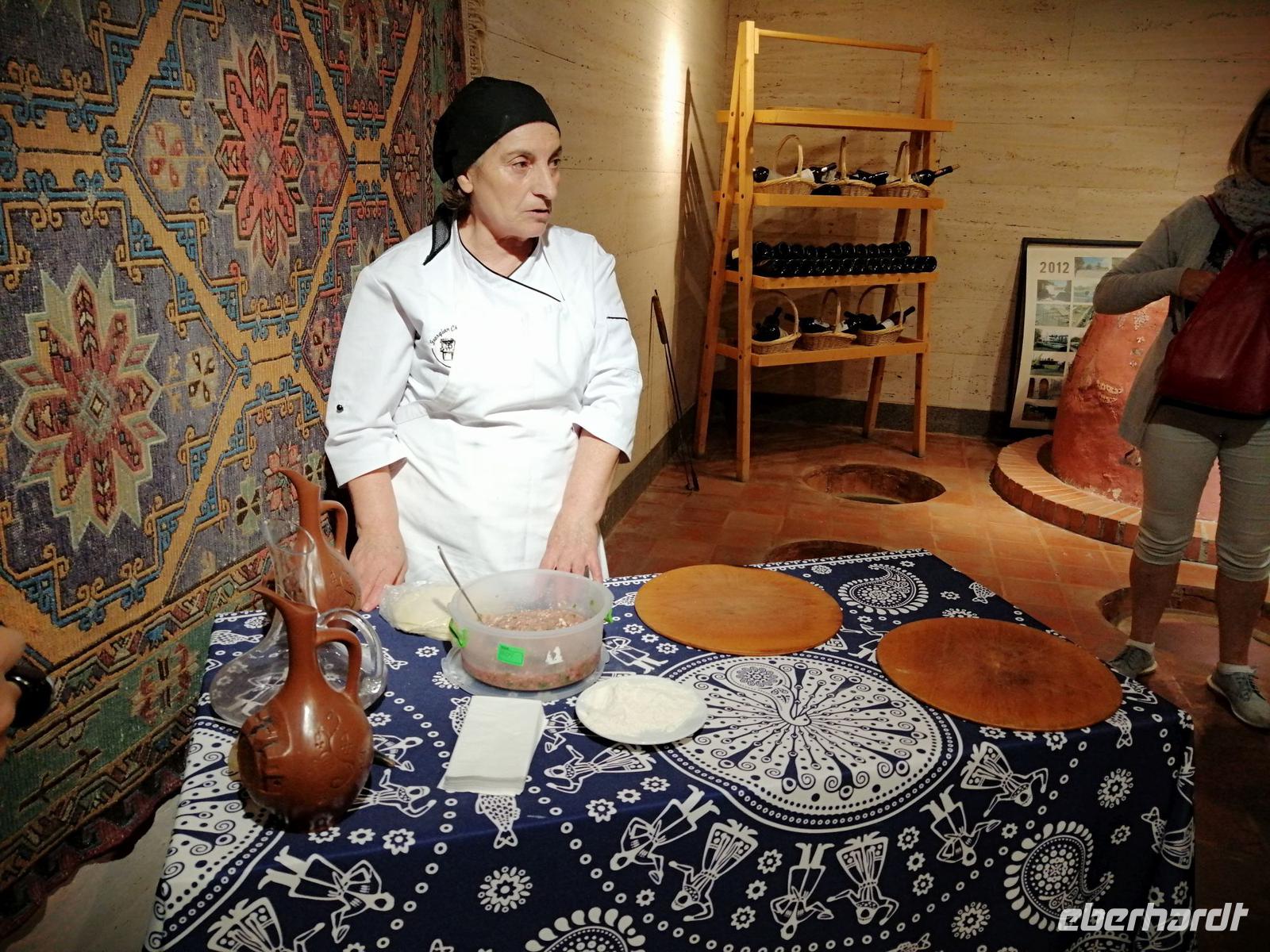 Danach fuhren wir zum Weingut Chateau Muchrani und erlebten dort eine lang erwartete Weinverkostung. Außerdem bestand die Möglichkeit beim Vorbereiten der georgischen Spezialität Chinkali mitzumachen aber auch beim Brotbacken. Zum Abendessen wurden uns unter anderem auch unsere selbst hergestellten Chinkali serviert. Ein tolles Tänzerpaar präsentierte uns während des Abendessen ihr Können und wie genossen die landestypische Folklore.