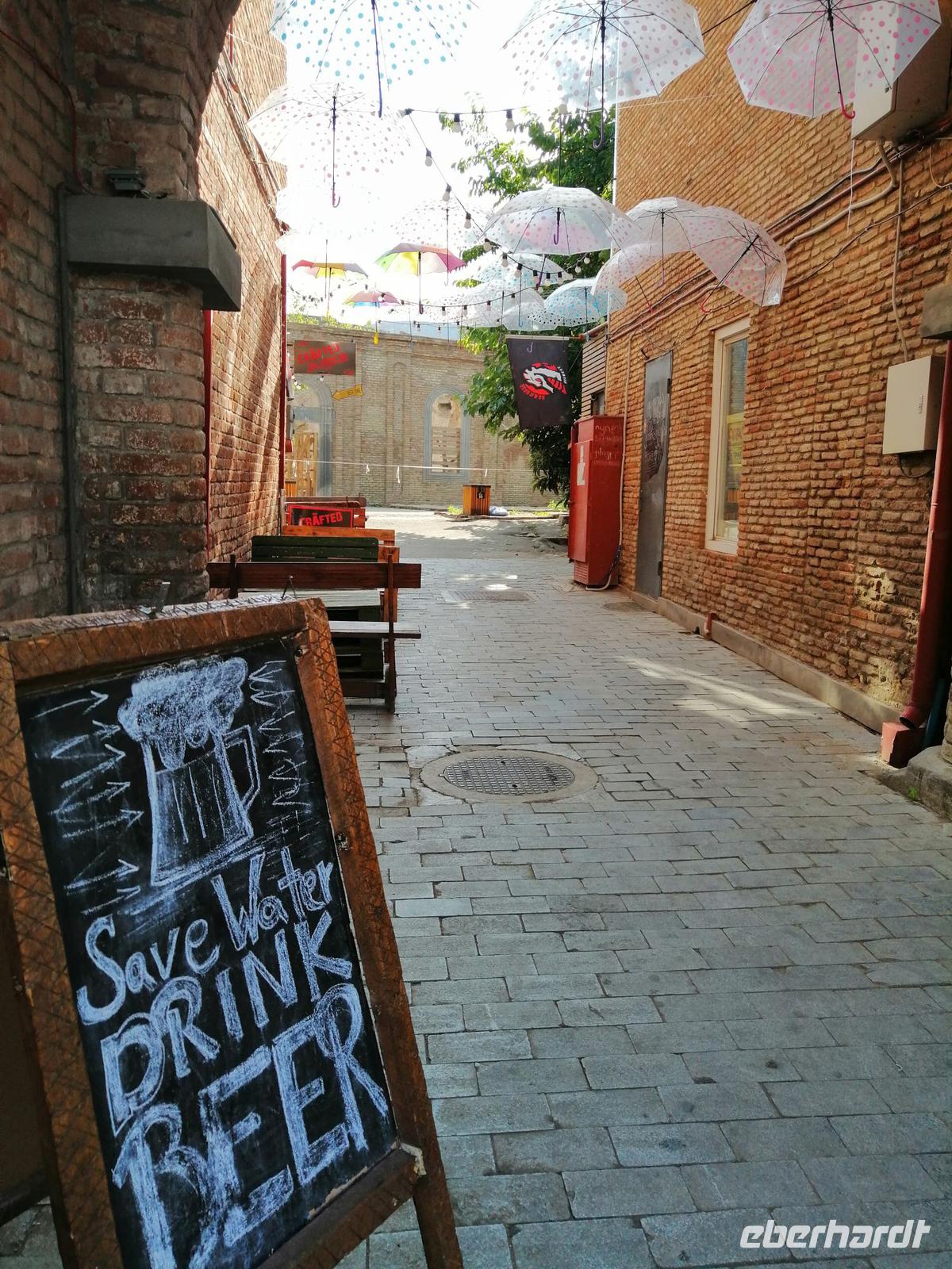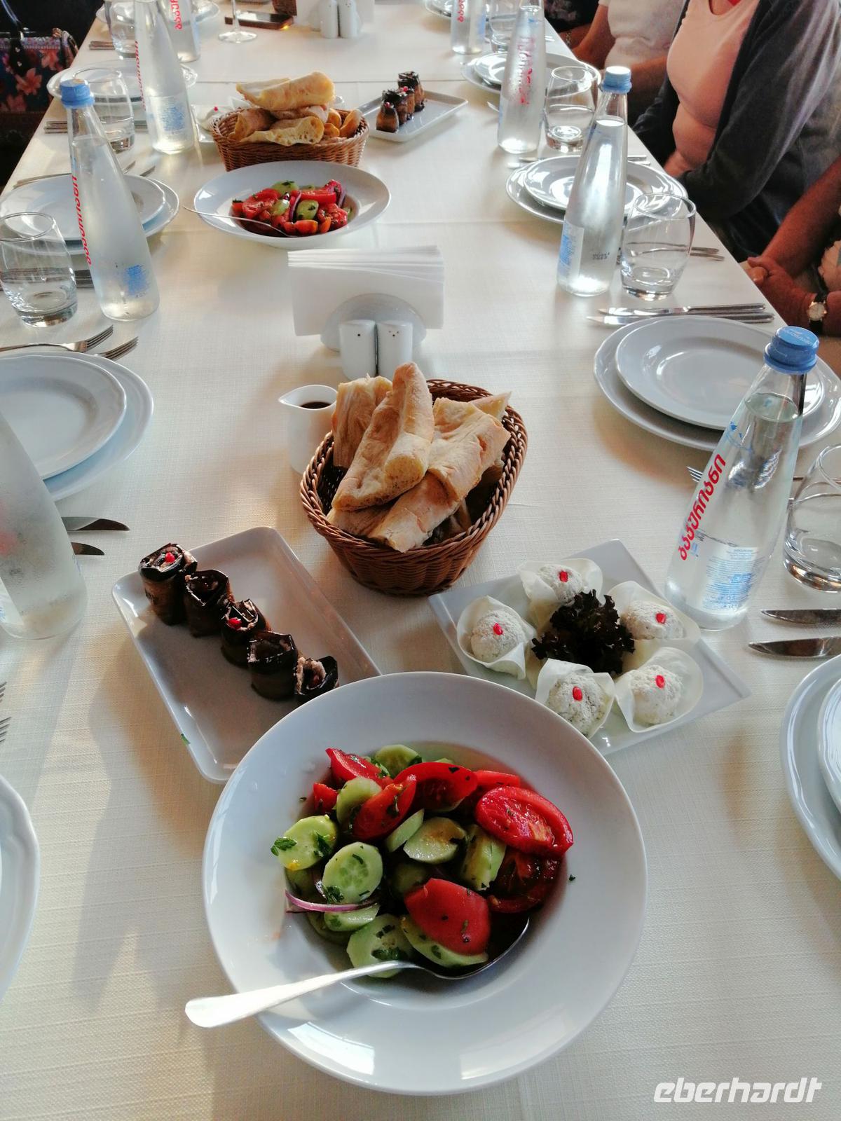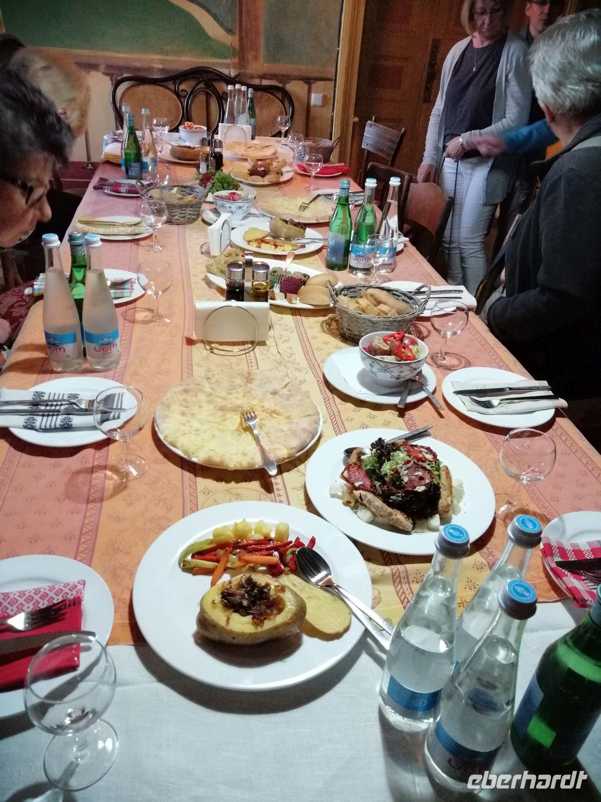 Unser heutiger Tag ging im Restaurant Pur-Pur, mitten in der Altstadt, die momentan intensiv saniert wird, mit traditionellen georgischen Speisen und Getränken zu Ende.