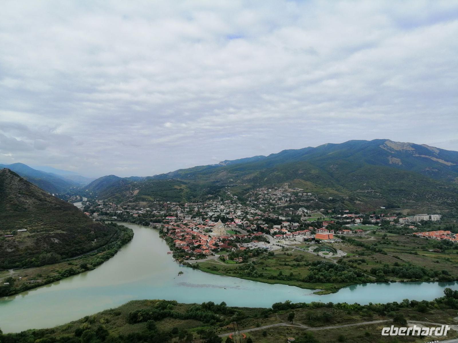 Anschließend bummelten wir durch den Basar der Altstadt von Mzcheta und machten eine Kaffeepause mit herrlichem Blick frei in die Ferne, wo, auf einem Berg gesetzt und über die Landschaft hinaus erhoben, Dschwari-Kirche thronte.