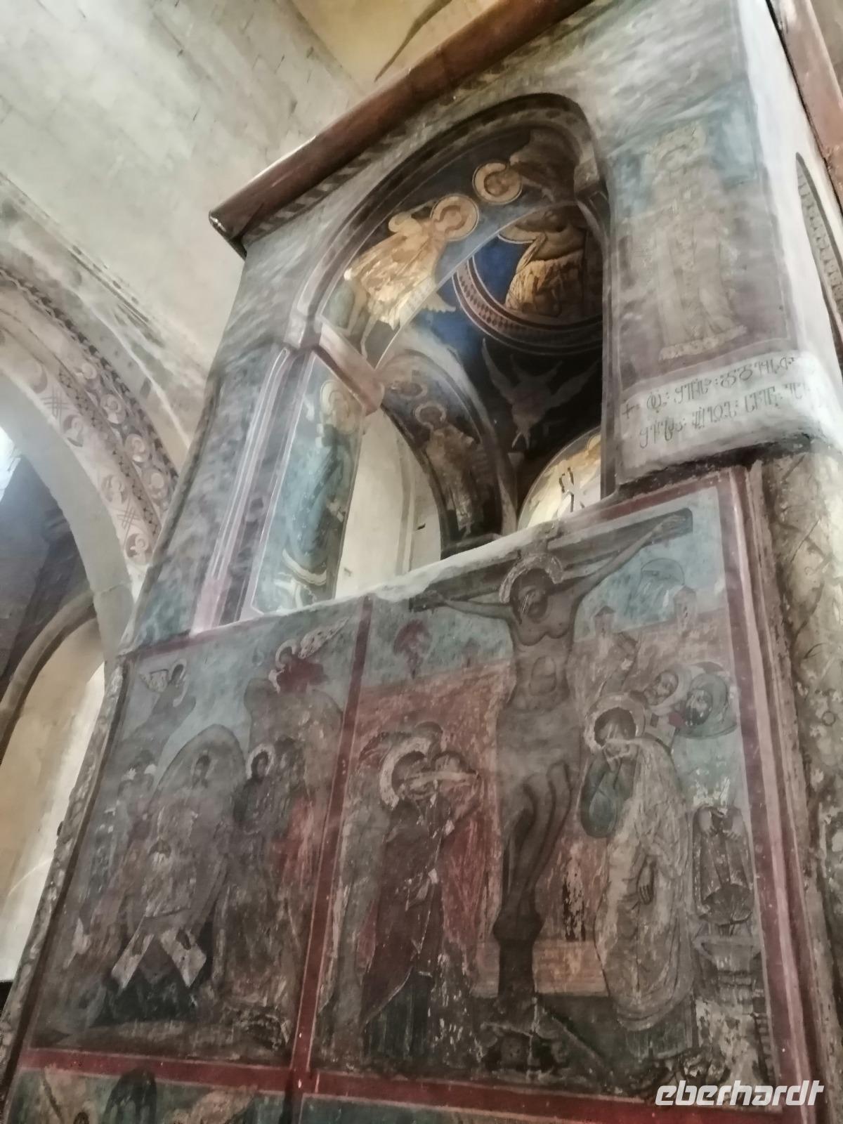 Um 9 Uhr starteten wir am Hotel los und besichtigten eine andere berühmte Sehenswürdigkeit von Kutaisi: das Kloster Gelati aus dem 12 Jh. Zum Kloster gehört auch eine Akademie, die vom Davit dem Erbauer gegründet wurde. Dieser König trug extrem viel zur kulturellen und wissenschaftlichen Entwicklung Georgiens bei. Sopo erzählte uns auch über Davits Traum: ein starkes und geeintes Georgien zu bilden.