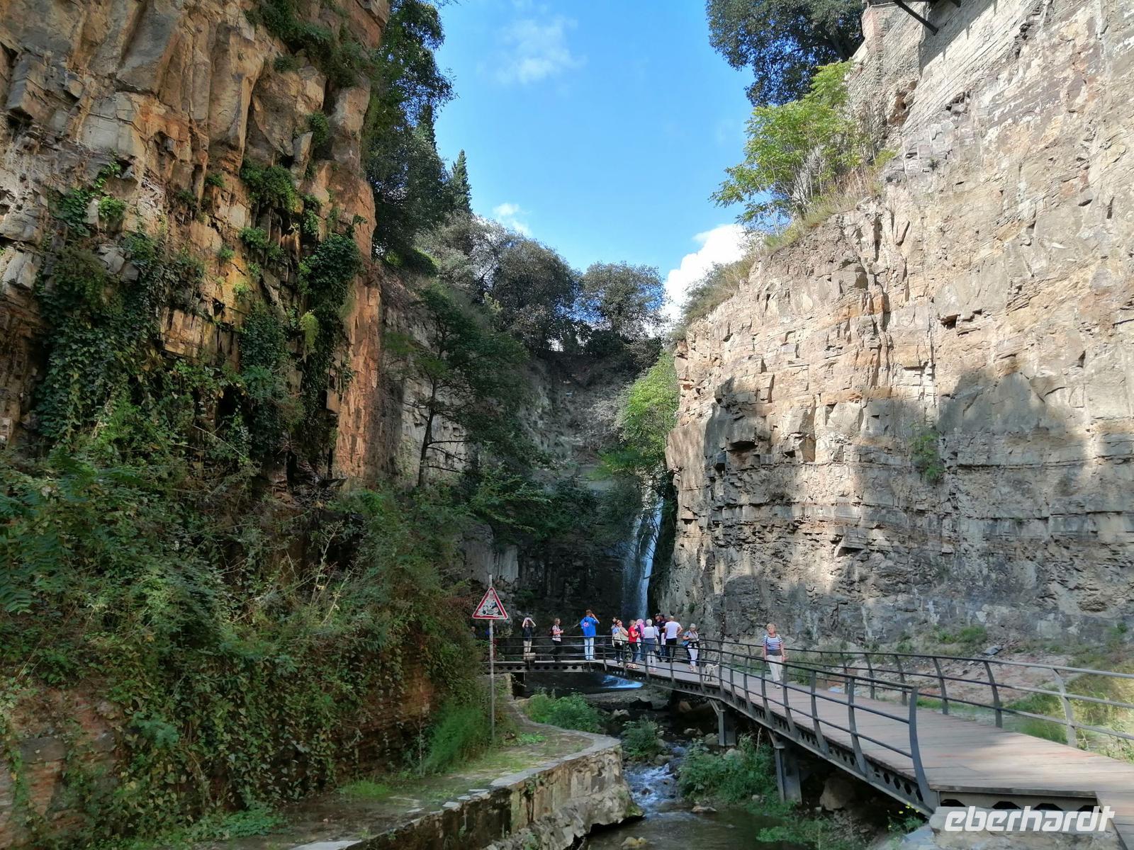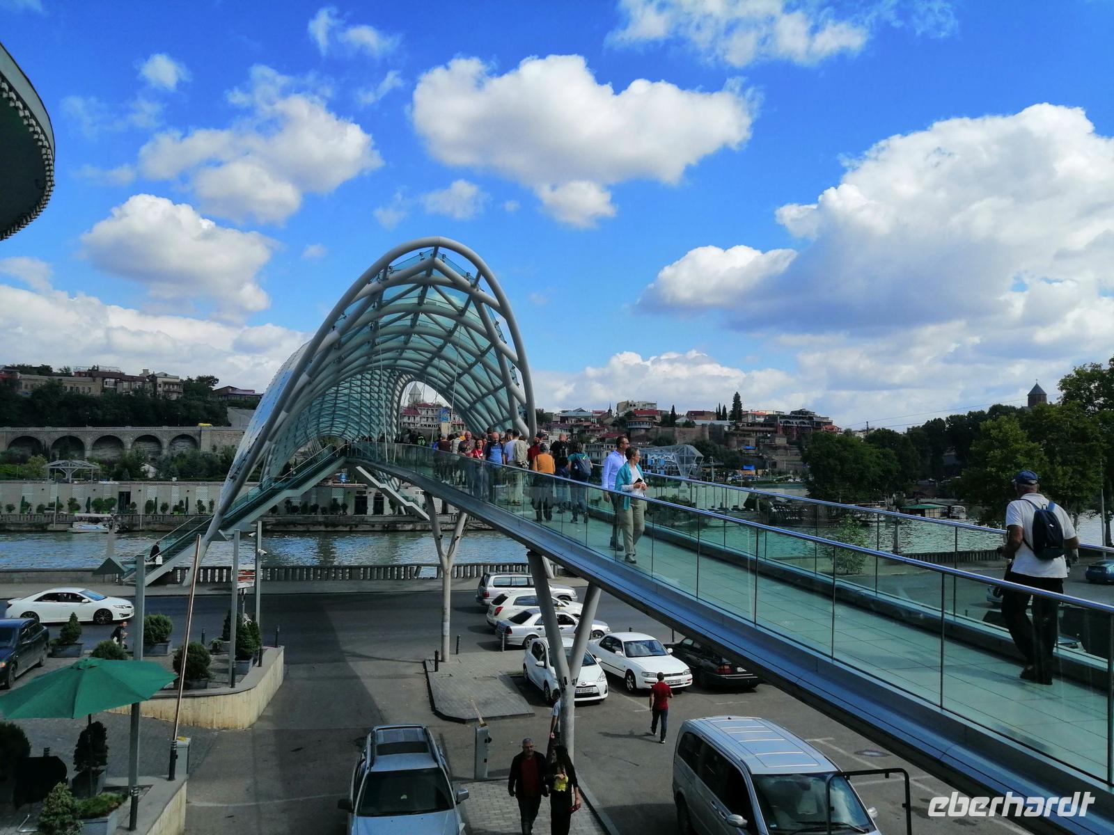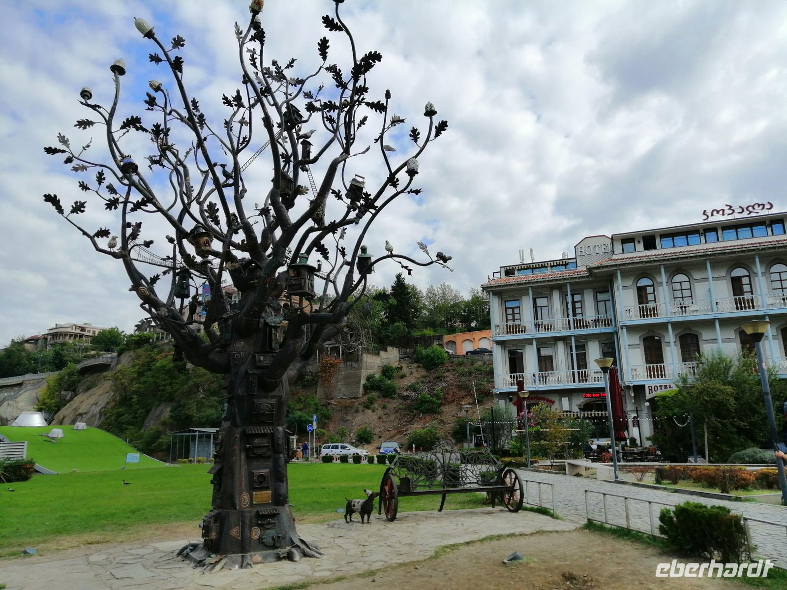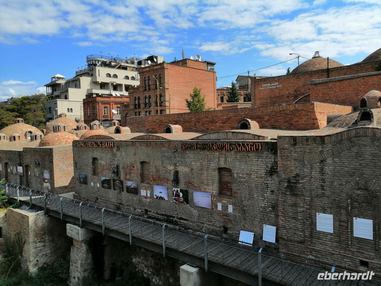 Unsere Erkundung der Hauptstadt von Georgien geht heute weiter. Wir fuhren mit der Stadtseilbahn zur Narikala-Festung, blickten von der Aussichtsplattform in den botanischen Garten, der sich südwestlich von Narikala ersteckte und spazieren zu Fuß wieder runter, zum Bäderviertel Abanotubani (Schwefelbäder). Die Gründung der Stadt bezieht sich auf die Thermalquellen, die an verschiedenen Orten aus dem Boden sprudeln. Die meisten der warmen Quellen (24 bis 45 Grad) enthalten ein Gemisch aus Eisen und Schwefel. Hinter den Schwefelbädern befand sich ein Wasserfall, den wir auch besichtigt haben.