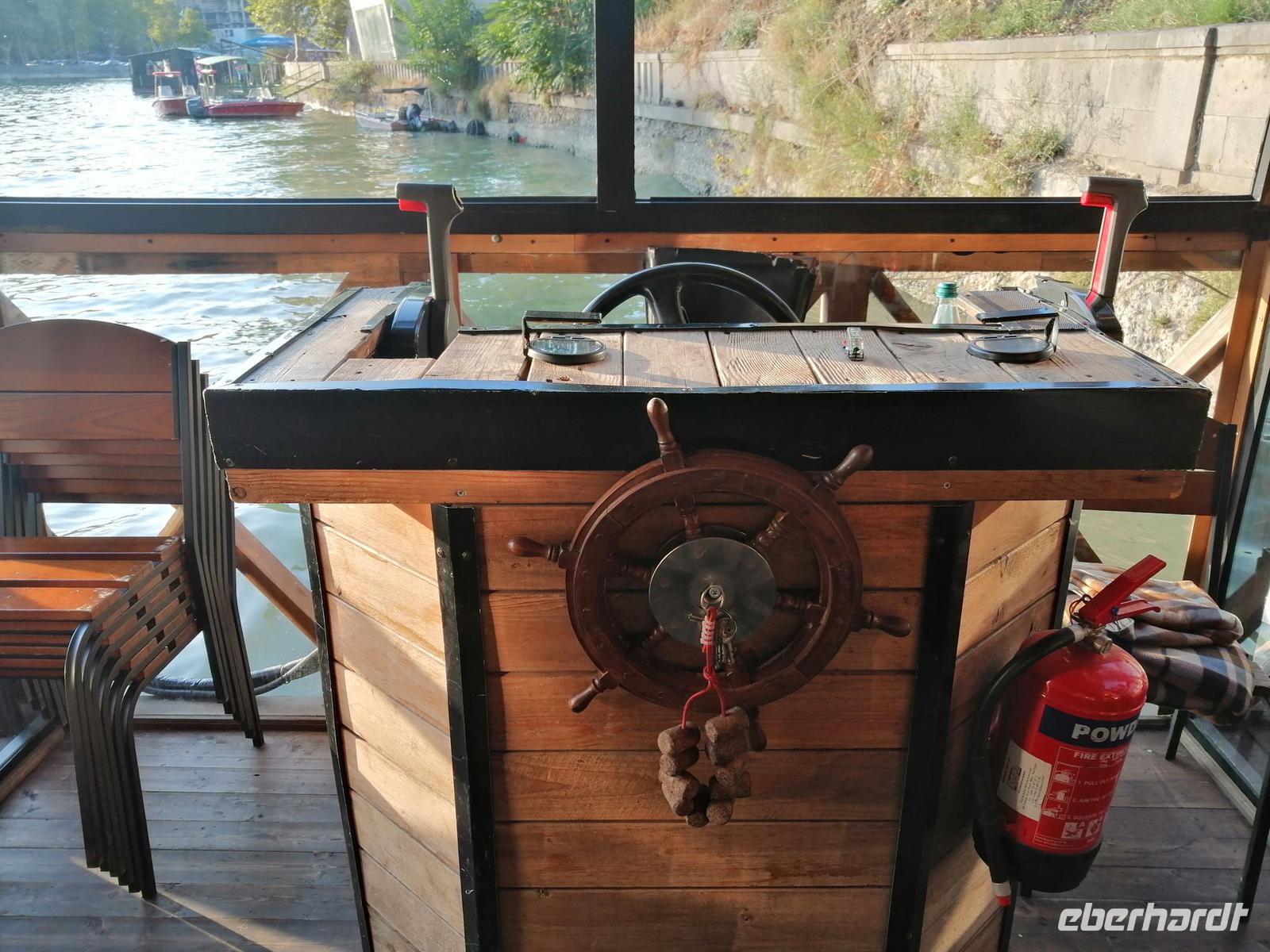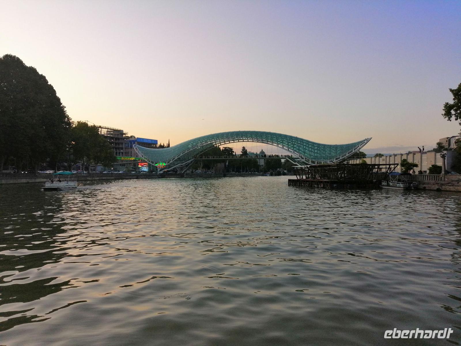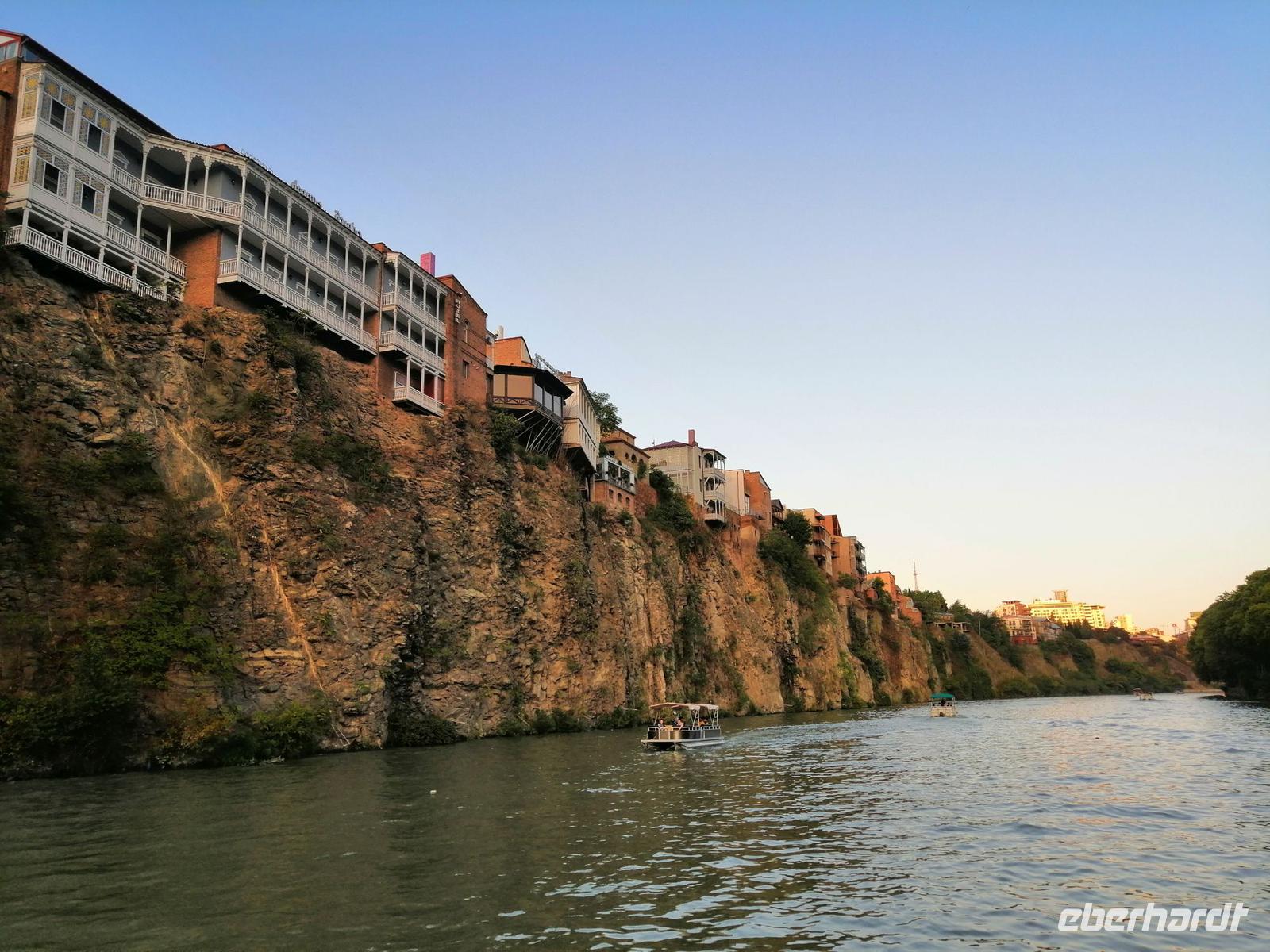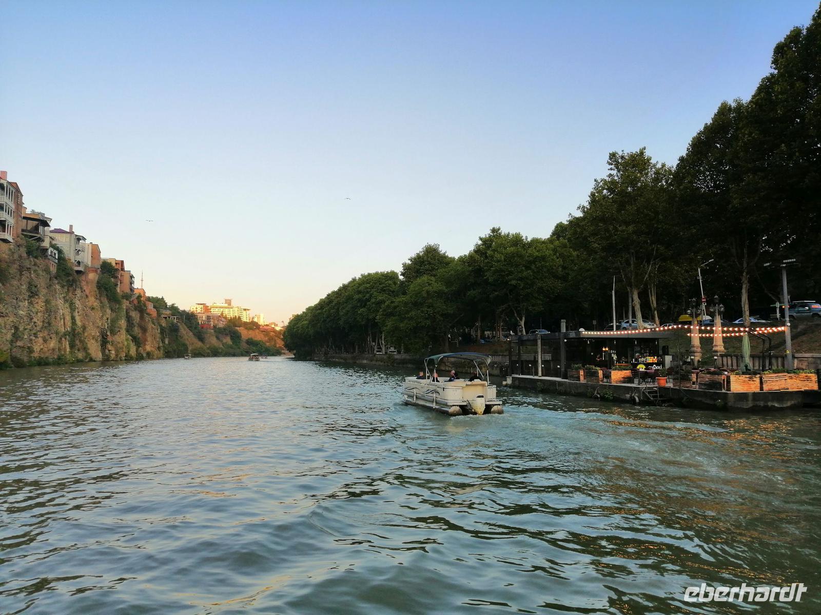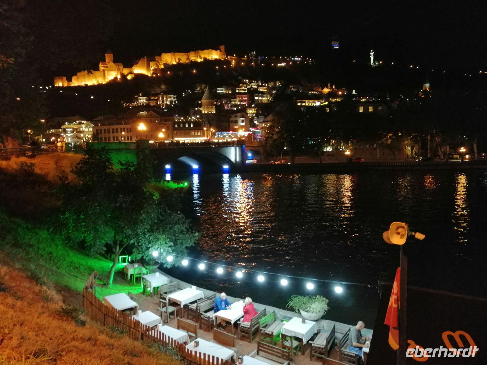Nach der freien Zeit trafen wir uns gegen 18 Uhr wieder im Hotel und fuhren zum besonderen Abschlußabendessen auf dem Mtkvari-Fluss. Das Ambiente auf dem Ausflugsboot war sehr nett, das Essen schmeckte wie immer in Georgien sehr gut und die kommende Abenddämmerung machte den Abschied von Georgien für uns nicht besonders leicht. Unsere Reisegruppe war super nett und die gemeisame verbrachte Zeit in so einem wunderbaren Land wie Georgien bleibt uns sicherlich noch sehr lange in Erinnerung!