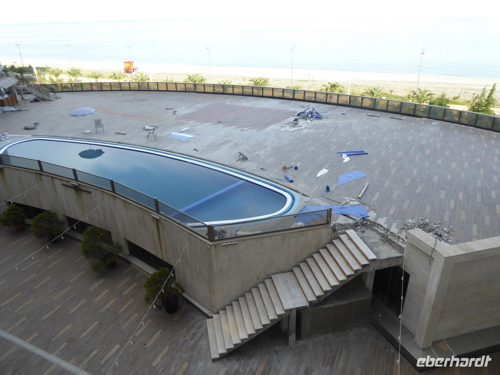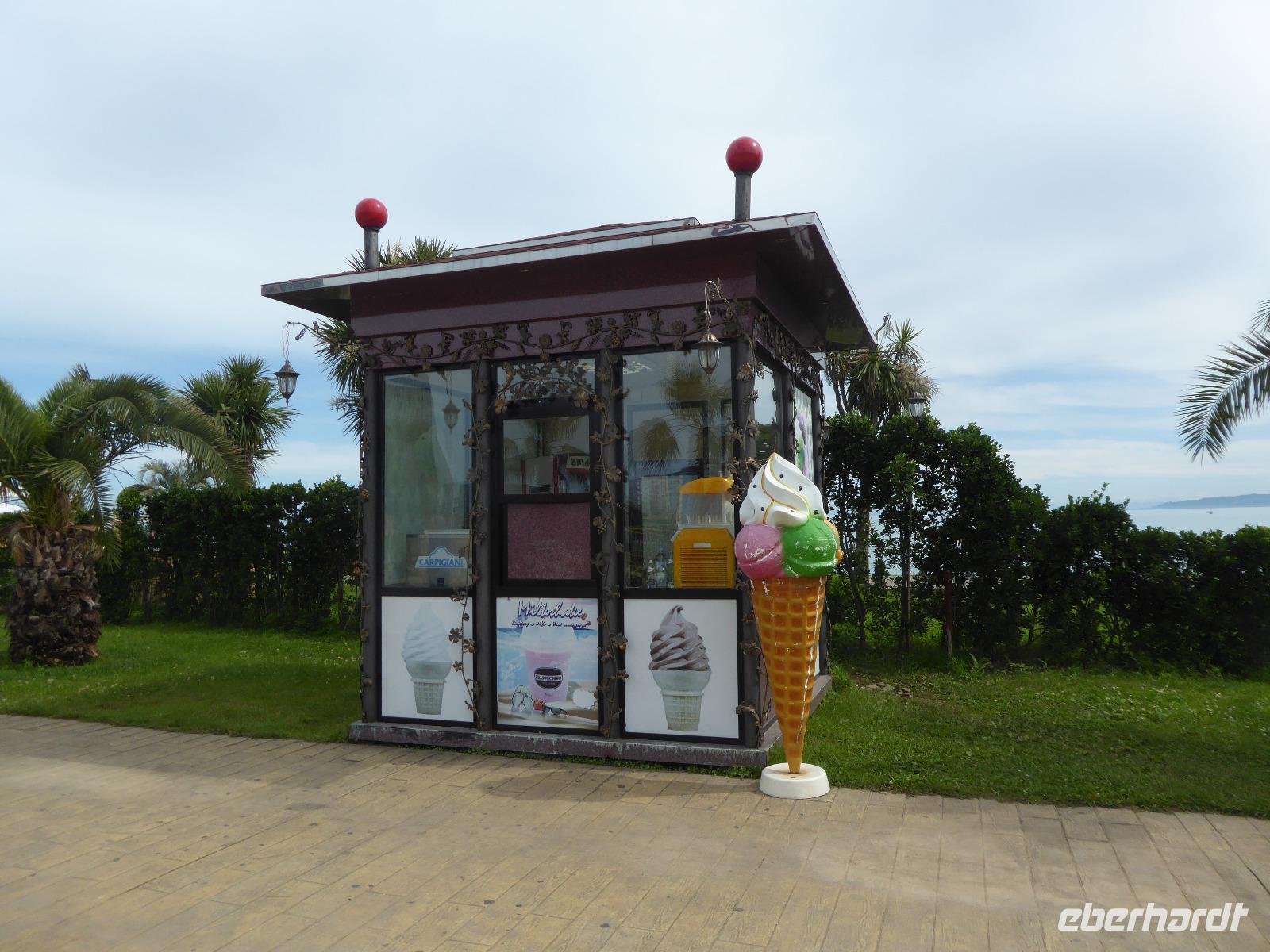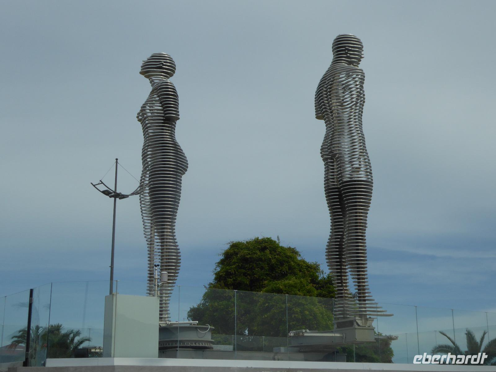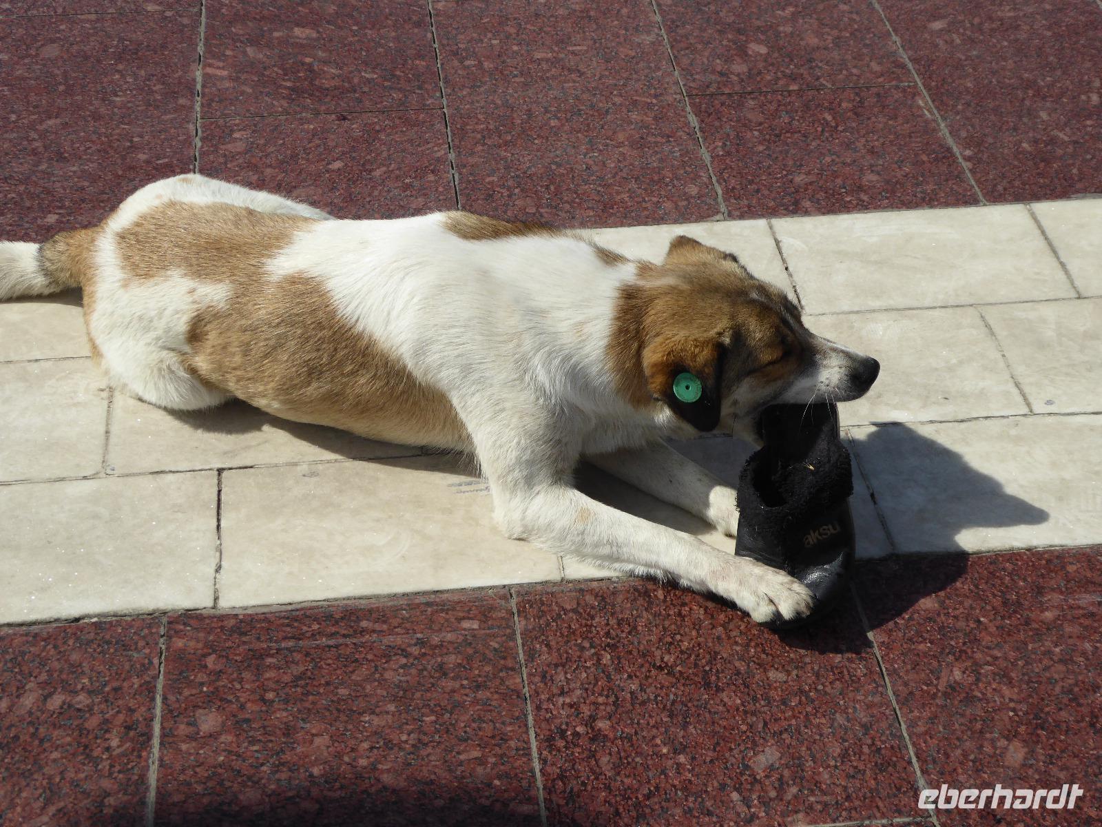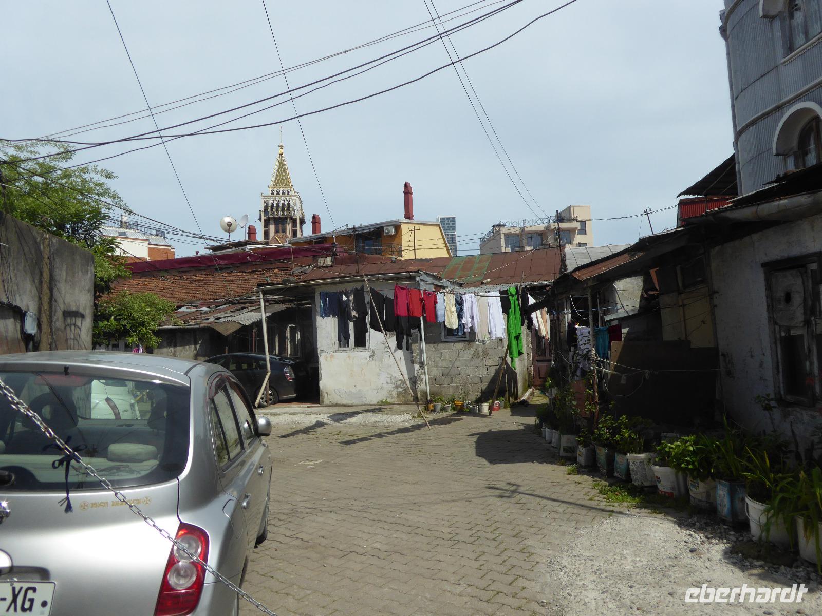 Der Tag beginnt mit einem Blick aufs Schwarze Meer. Die Sonne scheint. Nach dem Frühstück fahren wir ins Zentrum von Batumi. Heute ist der Nationalfeiertag der Georgier, an dem sie ihre Unabhängigkeit feiern. Dafür haben sie ihre Panzer und Militärfahrzeuge aufgebaut. Wir betrachten dies skeptisch. Interessant für uns sind die Figuren von Ali und Nino, die sich, als wir kommen, den Rücken zudrehen. Was ist geschehen? Gab es einen Streit? Aber nur Minuten später, sind sie, dank einer ausgefeilten Mechanik, einander wiederzugewandt, küssen sich und verschmelzen ineinander. Ali und Nino sind die Hautpersonen einer Liebesgeschichte zwischen einer georgischen Christin und einem aserbaidschanischen Moslem. Wir spazieren durch die Altstadt Batumis. Staunend betrachten wir den Gegensatz zwischen den riesigen hoch gebauten Hotels und teilweise nicht mal genutzten anderen Hochhäusern, wie die Universität, und dem, was vom alten Batumi noch übrig ist. Das sind zum Teil recht verfallene Wohnblöcke oder Hinterhöfe, auf denen es noch zugeht wie annodunnemals. Dennoch ist die Stadt bezaubernd. Du gehst an einer uralten Häuserzeile entlang und plötzlich: BÄM! Ein großes gläsernes Schaufenster mit supermoderner Reklame für Mode oder Frisur oder ähnliches. Völlig unpassend, aber eben doch gegenwärtig. Wir besuchen die Kirche des Heiligen Nikolaus und anschließend den Maidan-Platz. Hier befindet sich die Statue der Medea, die in ihren Händen das Goldenen Vlies hält. Bewundernswert ist auch das Eckgebäude am Platz mit einer großen astronomischen Uhr. Wir schlendern über die Piazza Moedani, bevor wir wieder zum Bus kommen und Richtung Zugdidi aufbrechen. Gegen 14 Uhr kommen wir dort an. Natia sucht uns eine kleine Imbiss-Stube, wo wir Chachapuri und Getränke verköstigen. Anschließend besuchen wir den Dadiani- Fürstenpalast. Wir weißen zwar nicht warum, aber alles ist aus Frankreich und schön verschmuckt :-), wisst Ihr noch? Ab hier sind es noch 136 Kilometer bis Mestia, aber nur eine halbe Stunde bis zum Enguri-Staudamm, wo wir zu einem Fotostopp halten. Die Staumauer ist 750 Meter breit und 271,5 Meter hoch. Sie ist die höchste Bogenstaumauer der Welt und das gewaltigste Bauwerk Georgiens. Weiter geht es durch den großen Kaukasus. Nach jeder Kurve tut sich ein neues prachtvolles Bild auf. Der Schnee glitzert auf den Bergen, die von der Sonne angestrahlt werden. Es ist einfach großartig. An einer Stelle fließen der Enguri und der Chuberi zusammen und bilden den schnellsten Fluss des Kaukasus. Gegen 20 Uhr kommen wir im Zentrum von Mestia an. Schon von Weitem ist Musik zu hören. Wollt Ihr aussteigen? fragt Natia. Na und ob! Auf dem Marktplatz von Mestia ist die Dorfjugend versammelt und feiert ein Rockkonzert. Ein bisschen zu laut für uns, aber naja - so ist das eben. Wenigstens kann ich mir für ein paar lumpige Euro ein (Figur schmeichelndes :-)) T-Shirt, das ich dann doch nicht tragen werde, und andere dringend notwendige Sachen kaufen. Dann verlassen wir schnell diesen, heute überaus lauten, Ort und fahren in unser lauschiges Hotel Banguriani. Da wir zu spät kommen, ist das Essen kalt, trotzdem muss keiner hungern. Und der trockene rote Hauswein, auf den wir eingeladen sind, schmeckt ausgezeichnet :-), da hat sich Eberhardt mal wieder nicht lumpen lassen. Kurz vor dem Schlafen gehen, bekomme ich noch einen Kamm geschenkt und es trifft eine Kleiderspende ein. Danke, Ihr Lieben! Was mit meinem Koffer ist, weiß ich immer noch nicht. Aber, dass den einer nach Svanetien bringt, wage ich doch sehr zu bezweifeln. Schauen wir mal, morgen ist auch noch ein Tag. Gute Nacht!