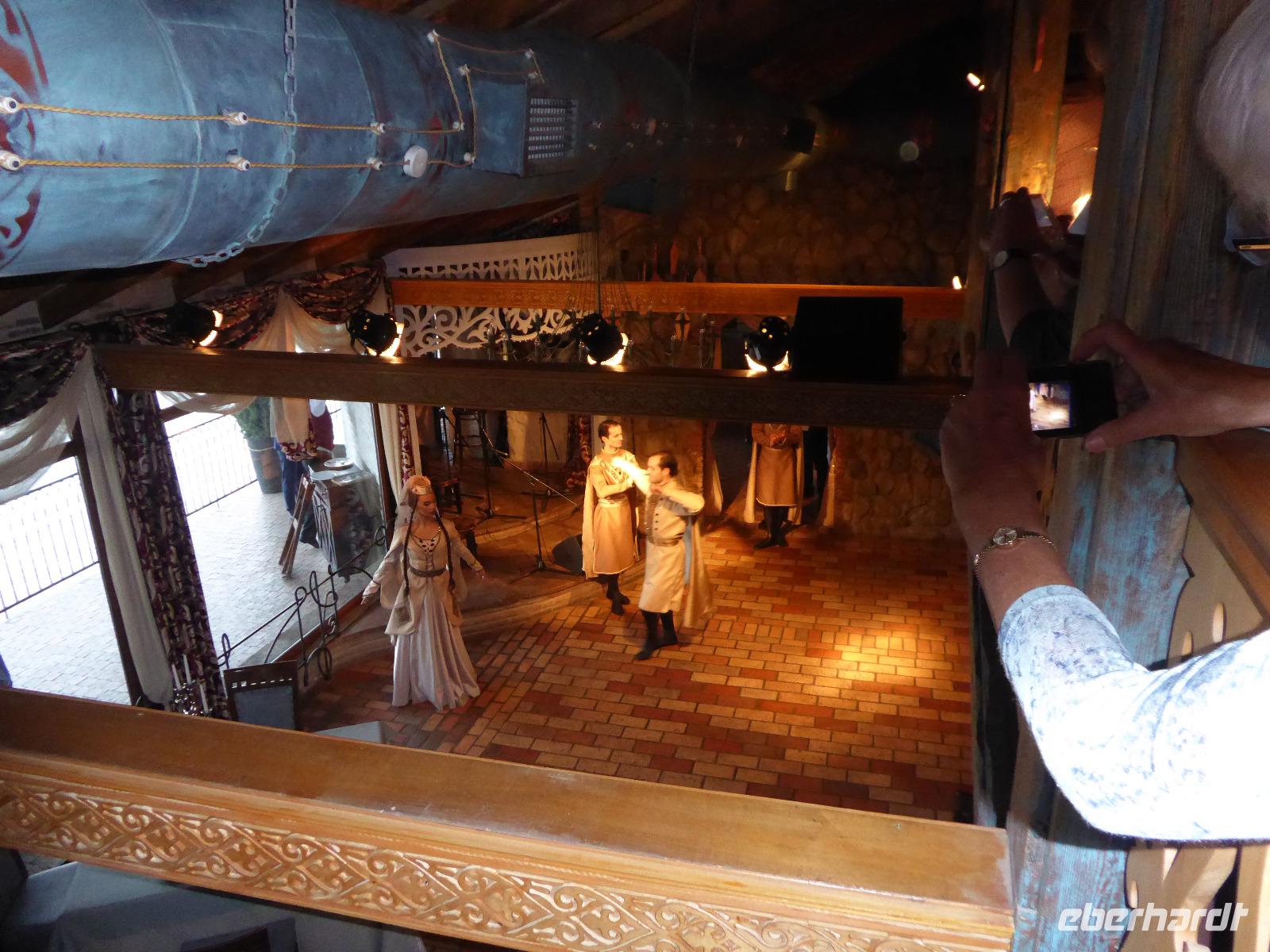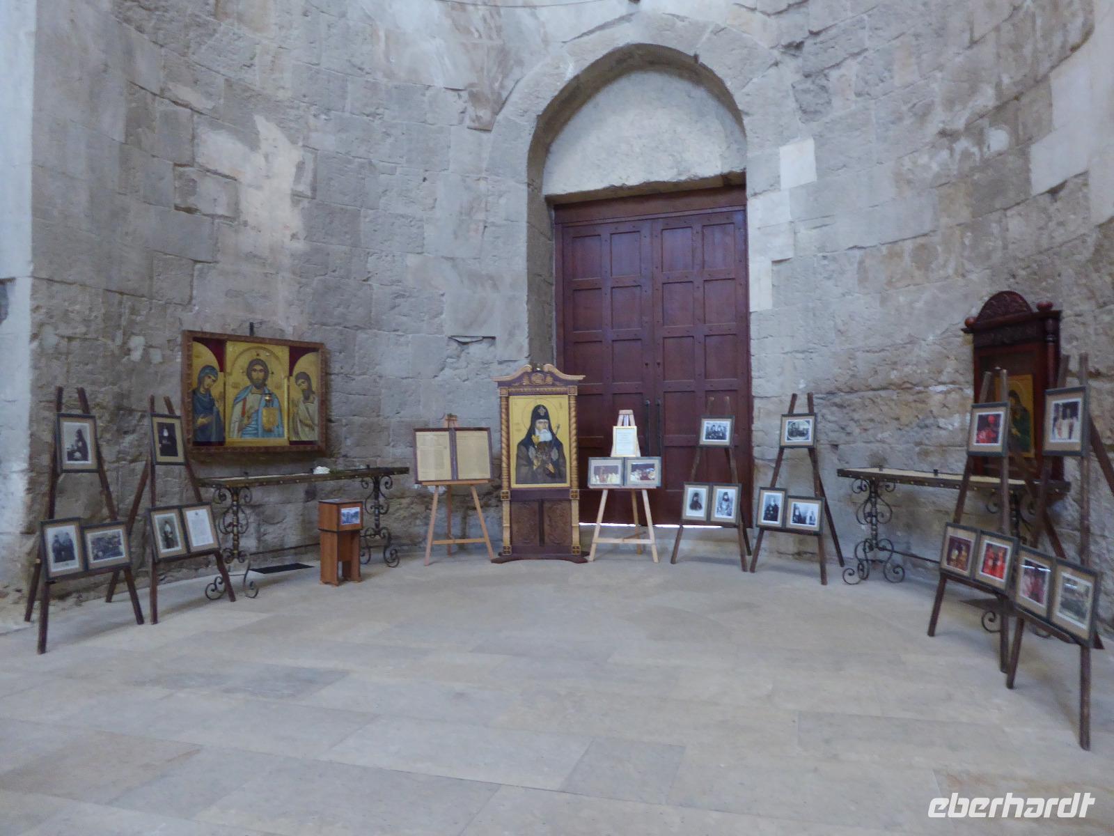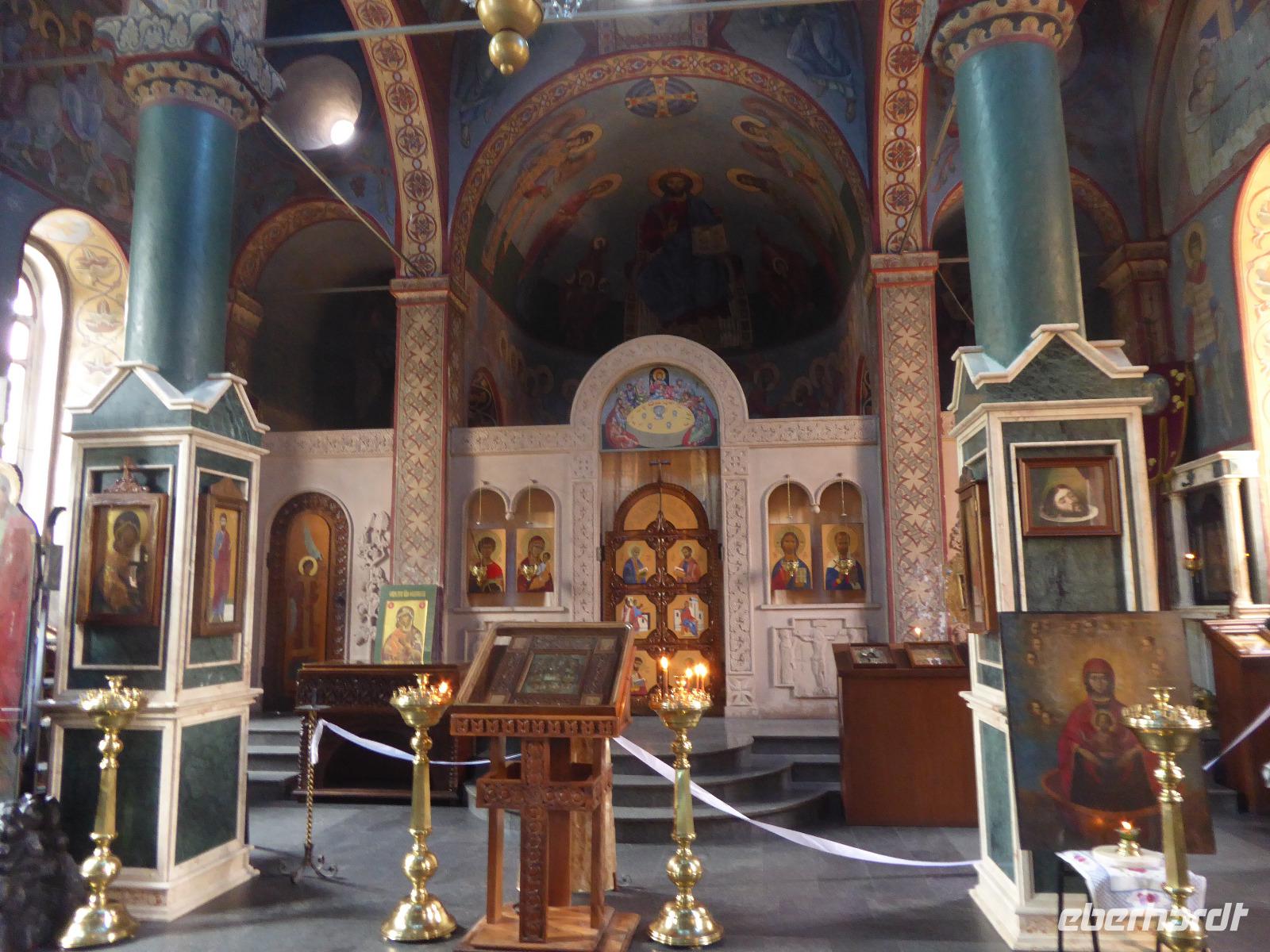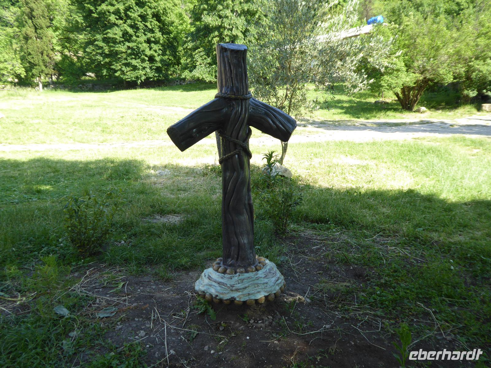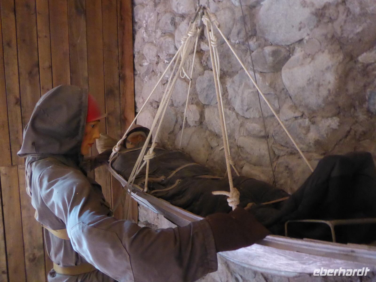 Nach dem Frühstück fahren wir zum Queen-Tamar Flughafen. Das futuristische Flughafengebäude passt so gar nicht zu den mittelalterlichen Türmen, die die Region prägen. Oder doch? Das Projekt stammt von einem Berliner Architekten namens Jürgen Mayer und wurde 2010 gebaut. Anschließend fahren wir zum Museum, das an das Leben, den Ruhm und den Tod des Bergsteigers Chergiani erinnert. Außer uns ist hier eine Gruppe einheimischer Jugendlicher unterwegs, die auf den Spuren ihrer georgischen Geschichte wandeln. Nach ihnen dürfen wir hinein. Im ersten Raum befinden sich einige Glasvitrinen, die das Leben des berühmten, 1968 verunglückten, Bergsteigers Chergiani schildern. Geführt werden wir erst von Natja und dann von einem Georgier. Moment mal, den kenne ich doch. Das ist doch der Neffe vom Chergiani. Dieses Mal traue ich mich, zu fragen, ob er sich mit mir fotografieren lässt. Wow :-), das gefällt mir. Nun fahren wir zum Matschubi-Museum. Ich erinnere mich, dass es auf dem Weg eine kleine Bude gibt, wo wir svanetisches Kräutersalz kaufen können. Dem ist auch so. Ein steiler Weg führt hierher und bis zum Museum. Ein Matschubi ist ein (ur-) altes svanisches Wohnhaus. In der Mitte befindet sich eine Feuerstelle. An dieser gibt es eine Art Thron, ein Holzsessel, auf dem nur der Familienälteste Platz nehmen durfte. Ringsherum sind Holzgestelle, in deren unteren Teil das Vieh untergebracht war und im oberen Teil die Menschen schliefen. Im gleichen Raum wurde auch gekocht und gegessen und sonst noch was. Mehrere Monate im Winter verbrachten die Familien hier. Wir gehen auch noch in den Keller, wo Vorräte sowie Wein und Honig gelagert wurden. Hier ist es dunkel und kalt. Nachdem wir das Matschubi verlassen haben, wartet ein weiteres Abenteuer auf uns. Wir besteigen einen Wehrturm. Drinnen ist es stockduster und man muss mehrere Barrieren überwinden, ehe man von einer Etage auf die andere kommt. So konnten sich die Svanen vor Angreifern schützen. Für uns ist es eine abenteuerliche Kletterpartie. Nun ist der Vormittag vorbei und wir wollen mit dem Sessellift auf den Zuruldi-Berg fahren, um dort die schöne Aussicht zu genießen und etwas zum Mittag zu essen. Es beginnt zu regnen. Noch sind wir optimistisch und fest entschlossen, unseren Plan umzusetzen. Wir fahren acht Kilometer nach Hatsvali. Inzwischen regnet es schon mehr. Natia und ich erkunden die Lage. Keine Chance. Es ist nicht erlaubt und wäre auch unvernünftig, jetzt mit dem Sessellift zu fahren. Also kehren wir um. Wir fahren ins Zentrum von Mestia und kehren im Café Laila ein. Wir probieren verschiedene georgische Gerichte, wie Suppen und fleischgefüllte Teigtaschen. Es ist gemütlich hier. Es regnet immer noch. Der Tag ist noch jung und wir fahren nun ins Historische Museum von Mestia. Hier sind neben alten Münzen und Speerspitzen, wertvolle Ikonen und Bücher zu bewundern. Es ist 15 Uhr. Immer noch zu früh, ins Hotel zu fahren. Natia macht eine Kirche ausfindig, in der es wertvolle Fresken zu sehen gibt. Es ist die Prophet Jonah Kirche in einem Ort vor Mestia (Lapatli). Vor dem Kirchlein haben sich ein paar tief schwarz gekleidete Frauen getroffen und bereiten ein Mahl vor. Diesen traurigen Grund möchten wir lieber nicht wissen. Das Kirchlein ist ziemlich mitgenommen, von den wertvollen Wandmalereien ist kaum etwas zu sehen. Außerdem sieht sie irgendwie verräuchert aus. Auf Nachfrage erfahren wir, dass hier Fleisch zubereitet wurde. Nun ja, auch alle Gläubigen müssen irgendwann etwas essen. Endlich hat es aufgehört zu regnen. Wir fahren zurück nach Mestia und verbringen dort eine Stunde Freizeit. Hätten wir gewusst, dass es erst 20 Uhr Abendessen gibt, hätten wir auch noch länger bleiben können.