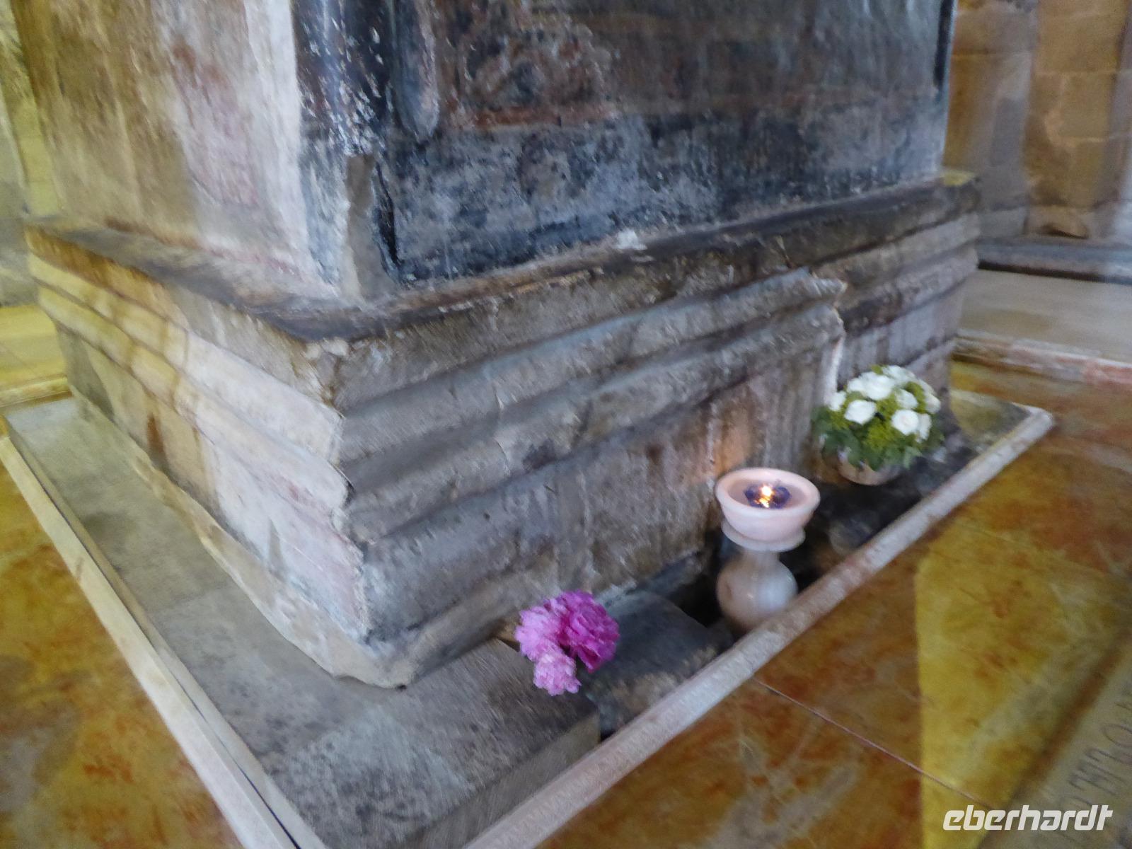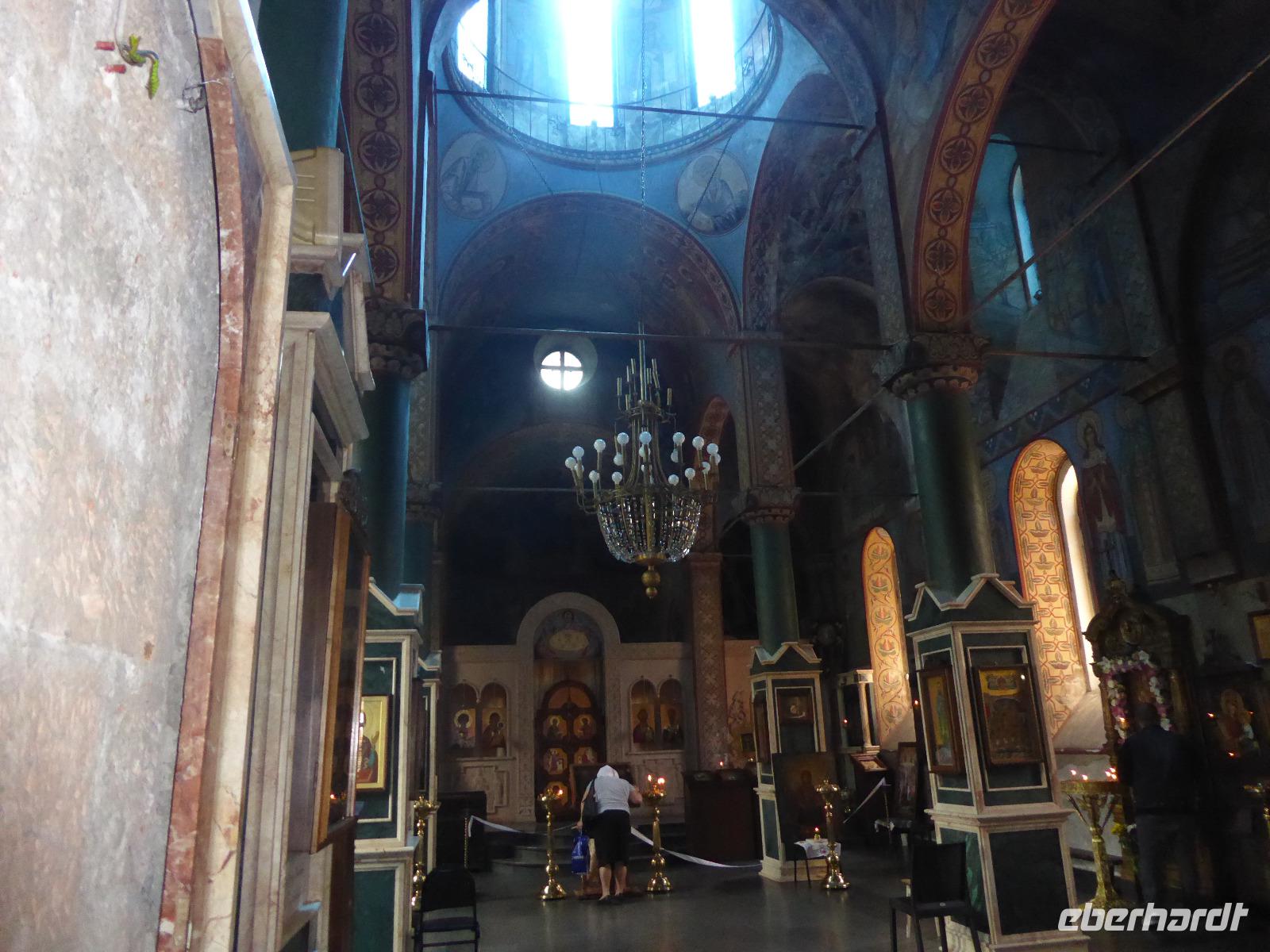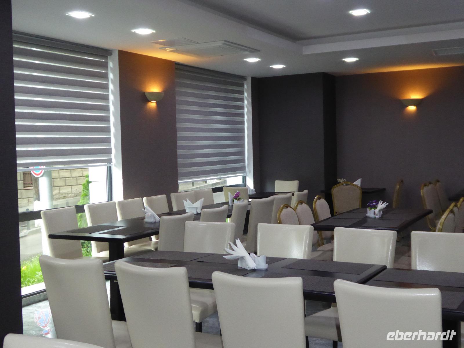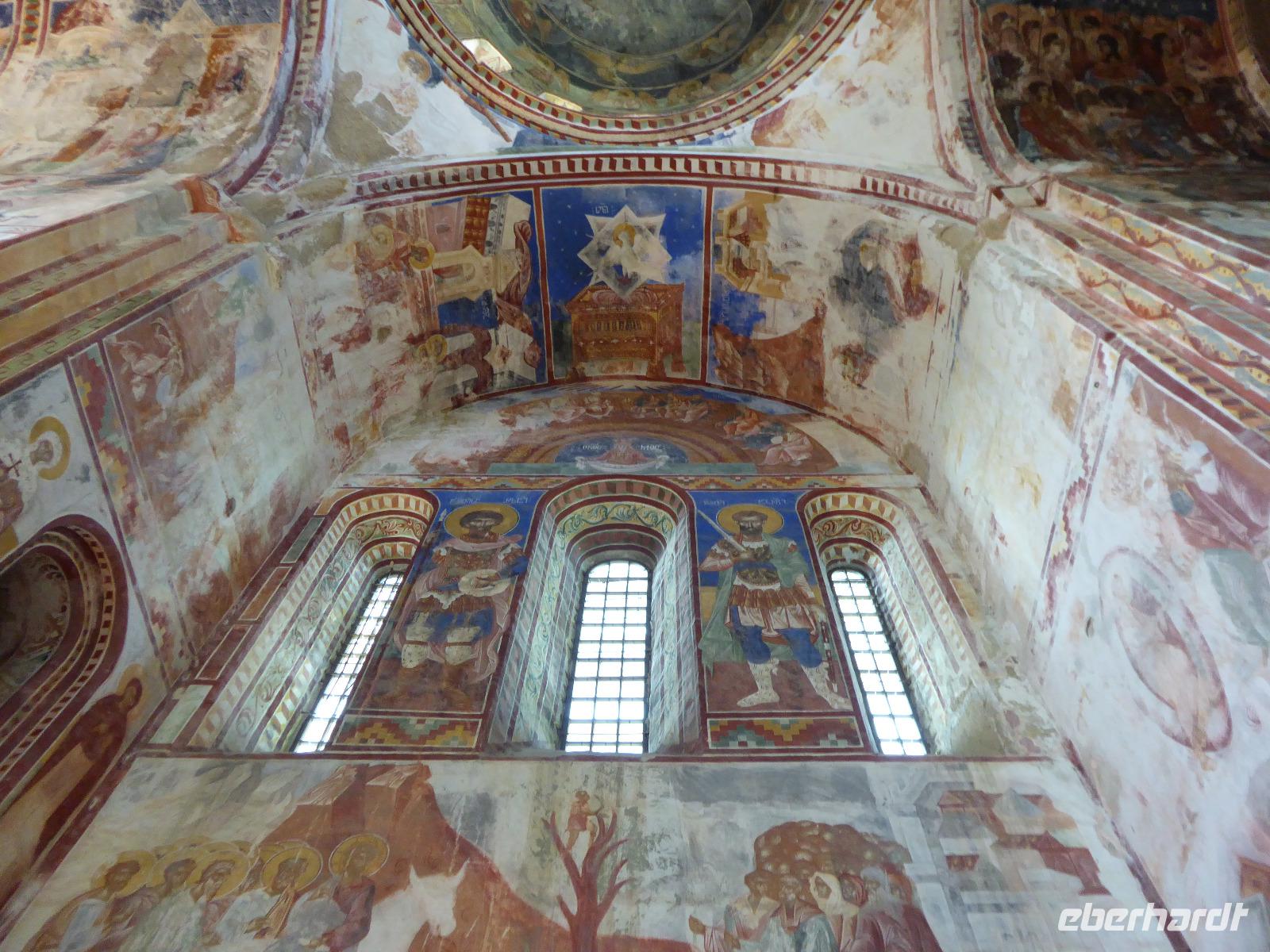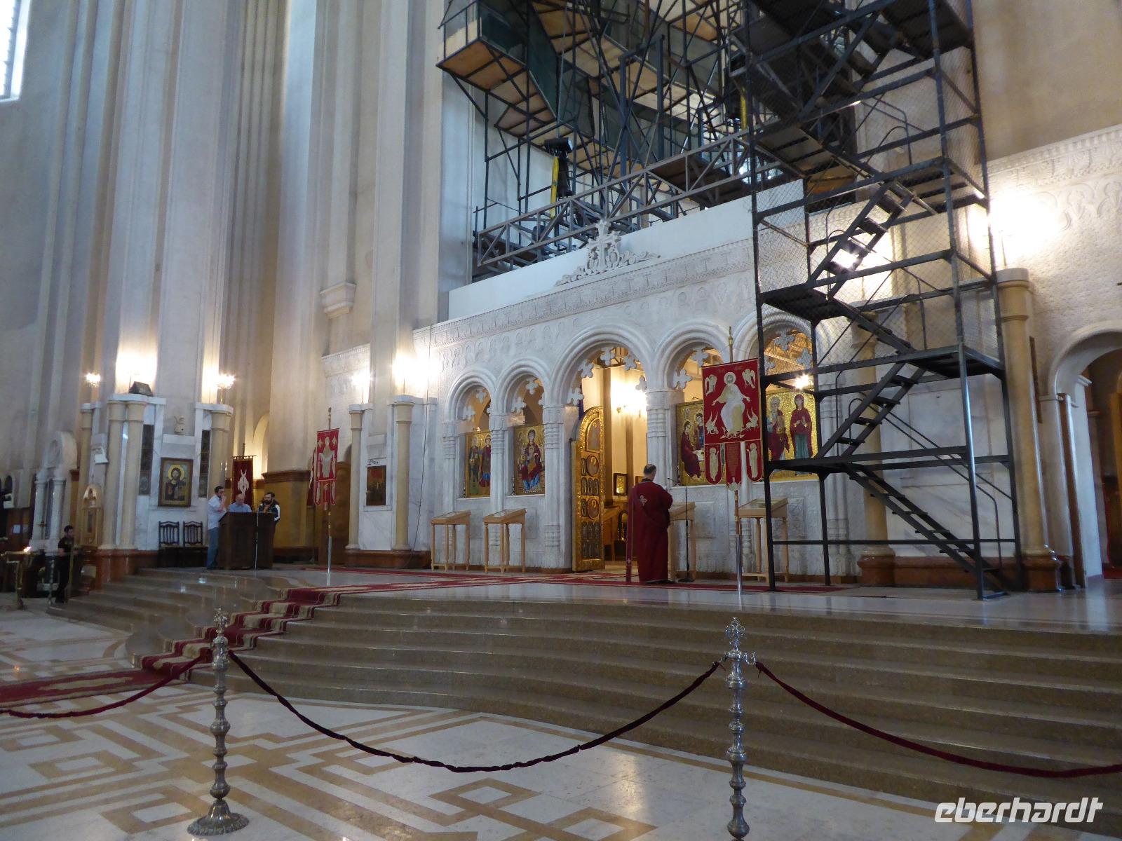 Der Tag sollte mit einem Lied beginnen. Und so bekommen unsere Geburtstagskinder ihr Ständchen. Heute verlassen wir Mestia, den Kaukasus und Svanetien. Fünf lange Fahrstunden liegen vor uns. Die fantastischen Aussichten lassen die Zeit jedoch (fast) wie im Flug vergehen. Zum Mittagessen kehren wir im Restaurant Host ein, wo uns unsere Geburtstagskinder auf ein Glas Rotwein und eine Khinkali-Verkostung einladen. Gar nicht so einfach, die Dinger auszuzutscheln, was? Aber es schmeckt! Dankeschön :-)! Noch knapp hundert Kilometer bis Zugdidi. Die Stadt ist in einem erbarmungswürdigen Zustand. Wir fahren nach Motsmeta, der Märtyrerstätte. Hier liegen die sterblichen Überreste zweier Fürstensöhne, die im 11. Jahrhundert gegen die Araber gekämpft und verloren haben. Sie wurden gefoltert, getötet und ihre Leichen in den Fluss geworfen. Dorfbewohner holten die Körper der Geschundenen aus dem Fluss und versteckten diese. Später wurde die Kirche gebaut, in der ein gläserner Sarg steht, in dem sich die Gebeine befinden. Heute tragen sie dazu bei, Wünsche zu erfüllen. Nicht nur Kinder glauben daran. Auch Erwachsene kriechen unter dem gläsernen Sarg hindurch, um ihre Wünsche wahr werden zu lassen. Unser nächstes Ziel ist das Gelati-Kloster. Hier sind David der Erbauer und andere Könige sowie Königinnen Georgiens begraben. Gelati war bekannt für Gold- und Silberschmiedekunst. Außerdem gab es hier eine Akademie, an der berühmte Professoren lehrten. Alles ist lange her. Heute treten sich hier die Touristen gegenseitig auf die Füße und rastlose Restauratoren versuchen, die Anlage instand zu halten. Unser letztes Ziel heute ist die Bagrati-Kathedrale. Anfang des 11. Jahrhunderts erbaut, wurde sie fünfhundert Jahre später von osmanischen Feinden in die Luft gesprengt. Erst 1952 begannen die ersten Wiederaufbauarbeiten. Seit 2012 sind diese weitestgehend fertig gestellt. Uns zieht es jetzt ins Hotel. Endlich ein bisschen frisch machen. Dann fahren wir zum Restaurant Palata. Heute werden sich die Tische unter den Speisen biegen. Was für ein Mahl. Wir haben gemeinsam protokolliert, was es alles zu essen gab: Gurken- Tomatensalat, Geflügel in Walnuss-Soße mit Safran, Spinatbällchen (mit Koriander), Salat mit gebratenem Hähnchen, Weißbrot; Chachapuri, Schaschlik, Pommes Frites, Bohnensalat, Peperonisalat, Mirabellensoße, eingelegte Pilze; Kaffee und Tee, große Obstteller. Dick und rund gefuttert, spazieren wir zum Hotel zurück. Ein weiterer schöner Tag in Georgien geht zu Ende. Gute Nacht, Ihr Lieben.