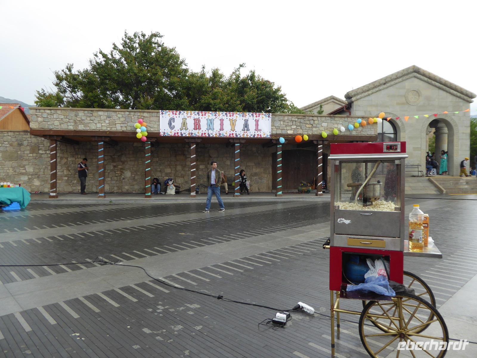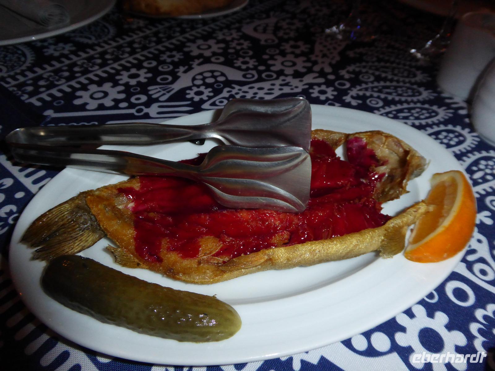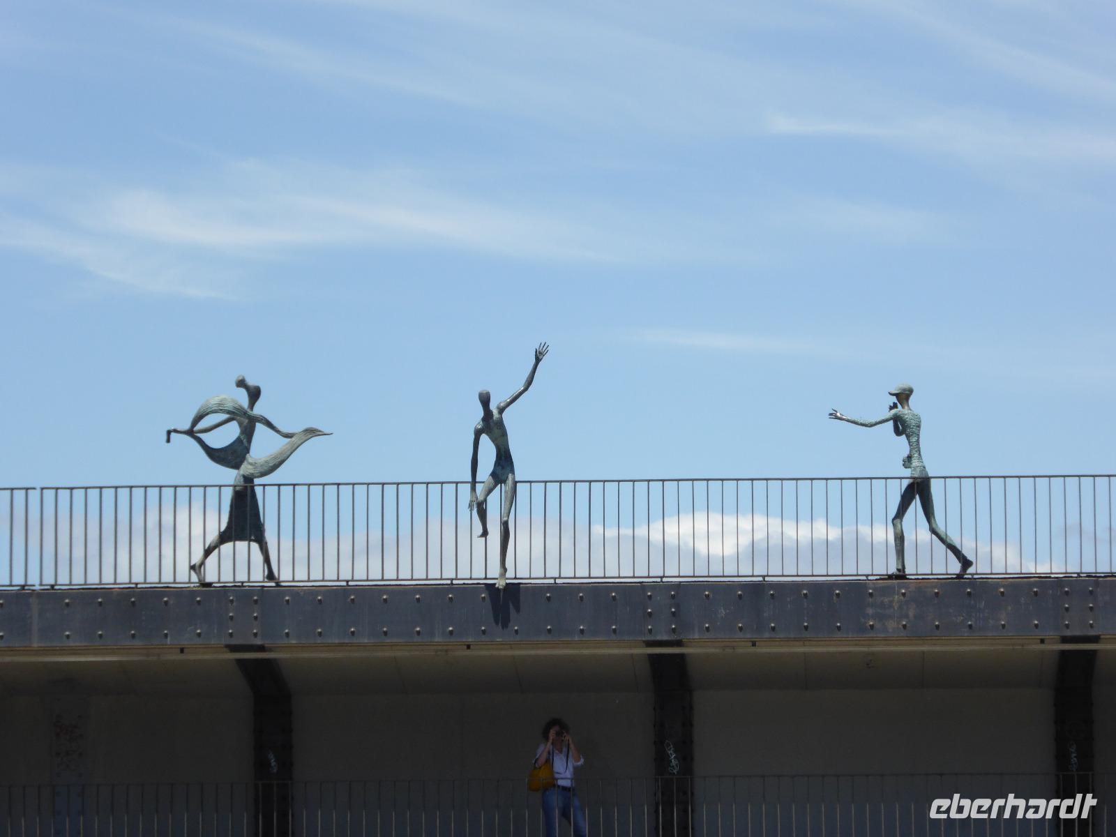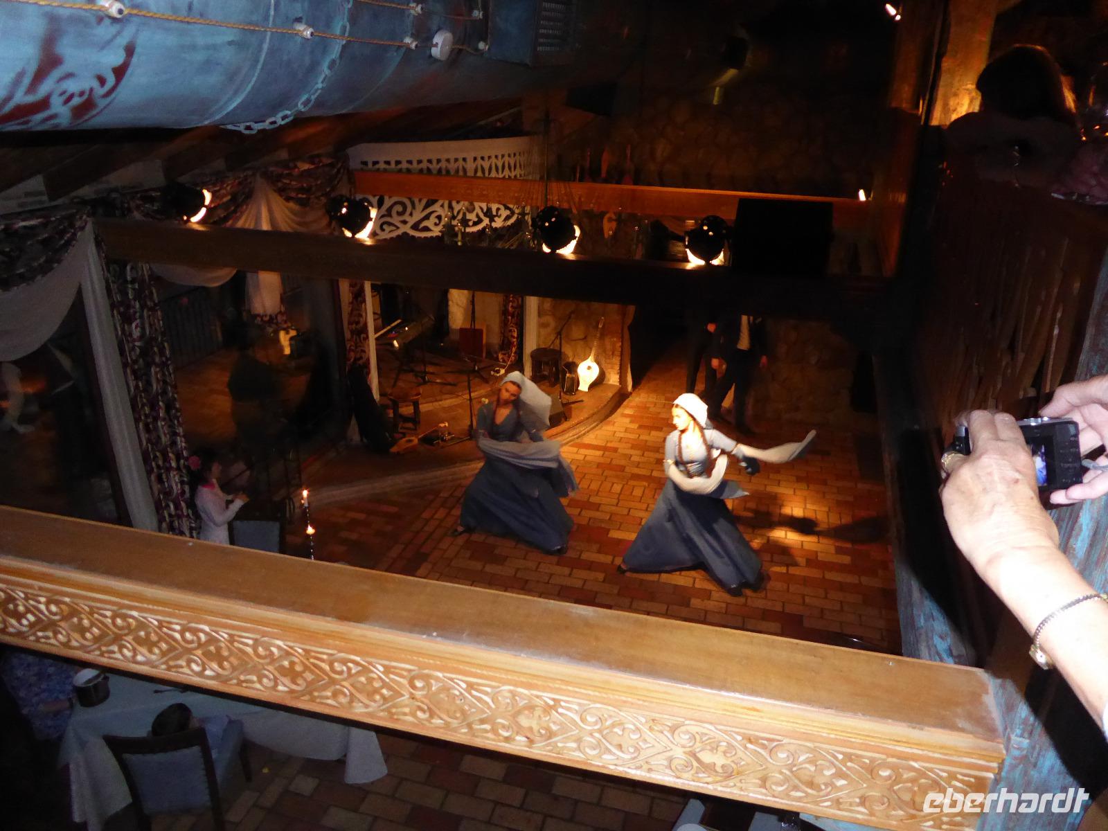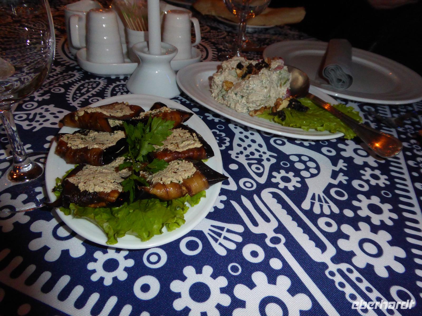 Am Vormittag spazieren wir durch die schöne Hauptstadt Georgiens - Tbilissi. Wir sehen erhaltene Teile der Stadtmauer, fassen dem Lampenanzünder an den Po :-) und bewundern das Gabriadze Marionettentheater. Nach dem Spaziergang durch die Altstadt, überqueren wir die Friedensbrücke und kommen zur Bodenstation der Seilbahn. Der Betrieb beginnt erst um Elf und wir spazieren weiter zur Metechi-Kirche, die einst, zusammen mit dem Metechi-Schloss, auf Geheiß von König Wachtang, errichtet wurde. Nun fahren wir mit der Seilbahn zur Narikala Festung. Im 4. Jahrhundert wurde die Festung erbaut und in den folgenden Jahren immer wieder erweitert. Eines Tages jedoch flog das im Keller gelagerte Schießpulver in die Luft und zerstörte die ganze Festung. Was heute noch erhalten ist, stammt aus dem 16. Und 17. Jahrhundert. Wir spazieren zur Mutter Georgiens, einer zwanzig Meter hohen Skulptur aus Aluminium. Die Meinungen über die Schönheut der Skulptur gehen weit auseinander. Von hier oben haben wir einen schönen Blick auf Tbilissi. Treppab geht es zunächst zu einem Wasserfall und anschließend hinab bis ins Bäderviertel. Wir spazieren durch einen kleinen Park und gelangen an eine Bootsanlegestelle. Hier werden wir, während einer Fahrt auf dem Mtkvari-Fluss, wieder einmal kulinarisch verwöhnt. Der Nachmittag steht für eigene Unternehmungen zur Verfügung. Nach einer kurzen Verschnaufpause im Hotel fahren wir zu unserem letzten Abendessen. Das Restaurant Poliphonia ist so versteckt, dass es Natia und Koba kaum finden. Von außen ist dem Haus jedenfalls nicht anzusehen, dass sich hier im Keller so eine außergewöhnliche Lokalität versteckt. Unter steinernen Bögen kosten wir heute südgeorgische Küche, deren Gerichte sich von denen, die wir bisher kennenlernten, unterscheiden. Es gibt, neben dem üblichen Gurken-Tomatensalat, zum Auftakt eine Käseplatte, köstlich gewürzte grüne Bohnen, dann Graupensalat (?), gebratenes Hühnchen, Nudeln in Sahnesoße und was noch? Ich weiß es nicht mehr, aber es waren wieder eine Fülle von Speisen mit einer ganz neuen Geschmacksnote. Nun heißt es aber: schnell ins Bett, denn die Nacht wird kurz.