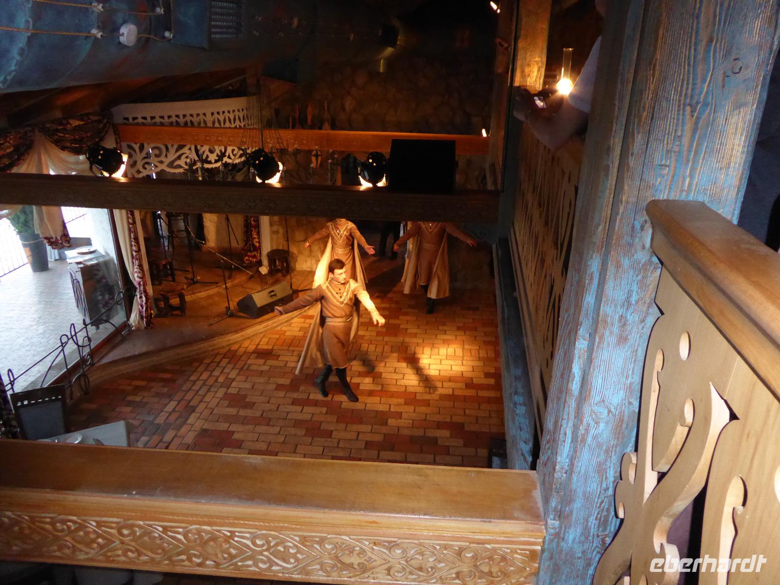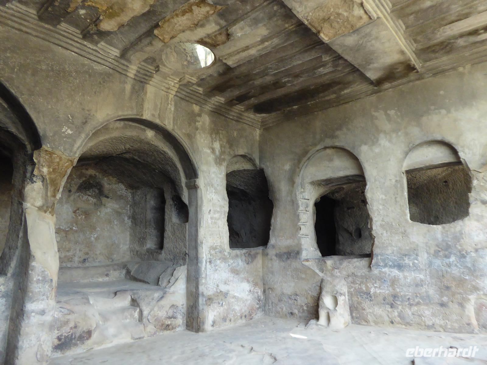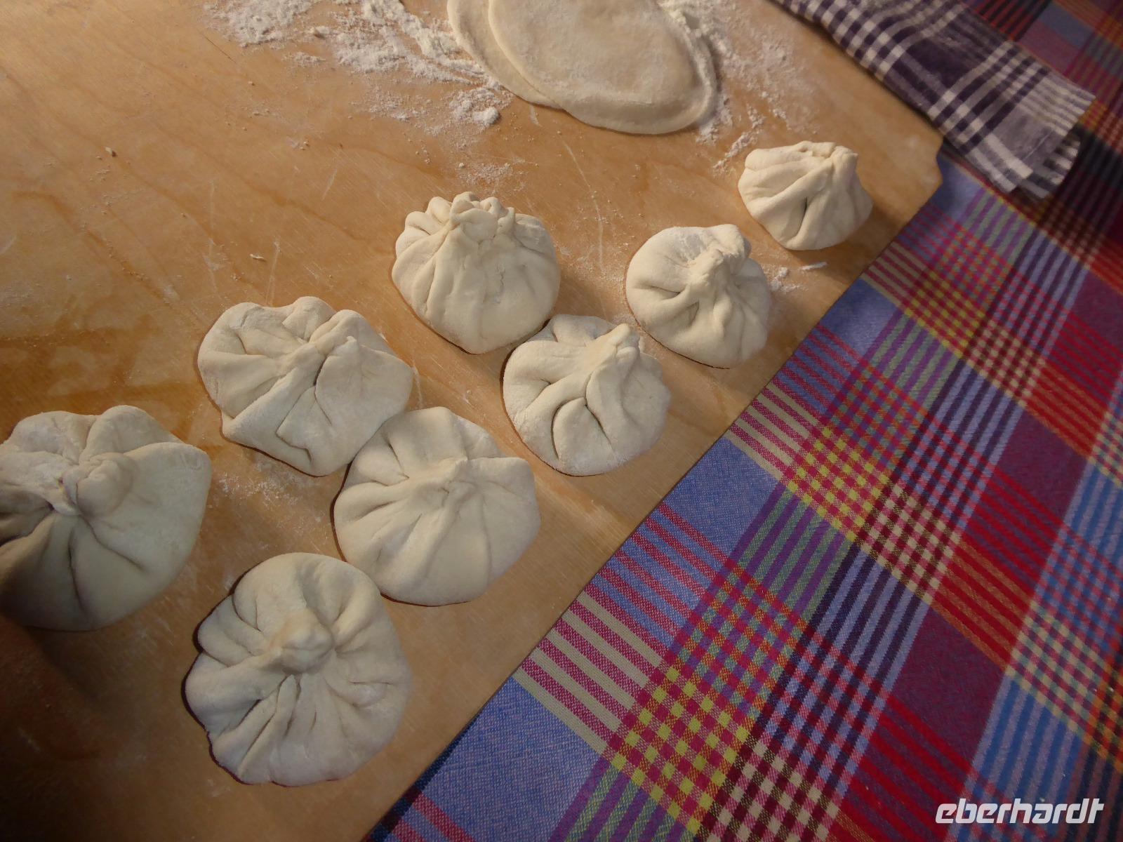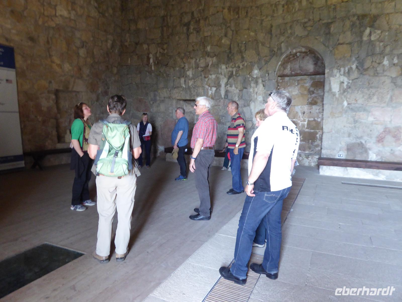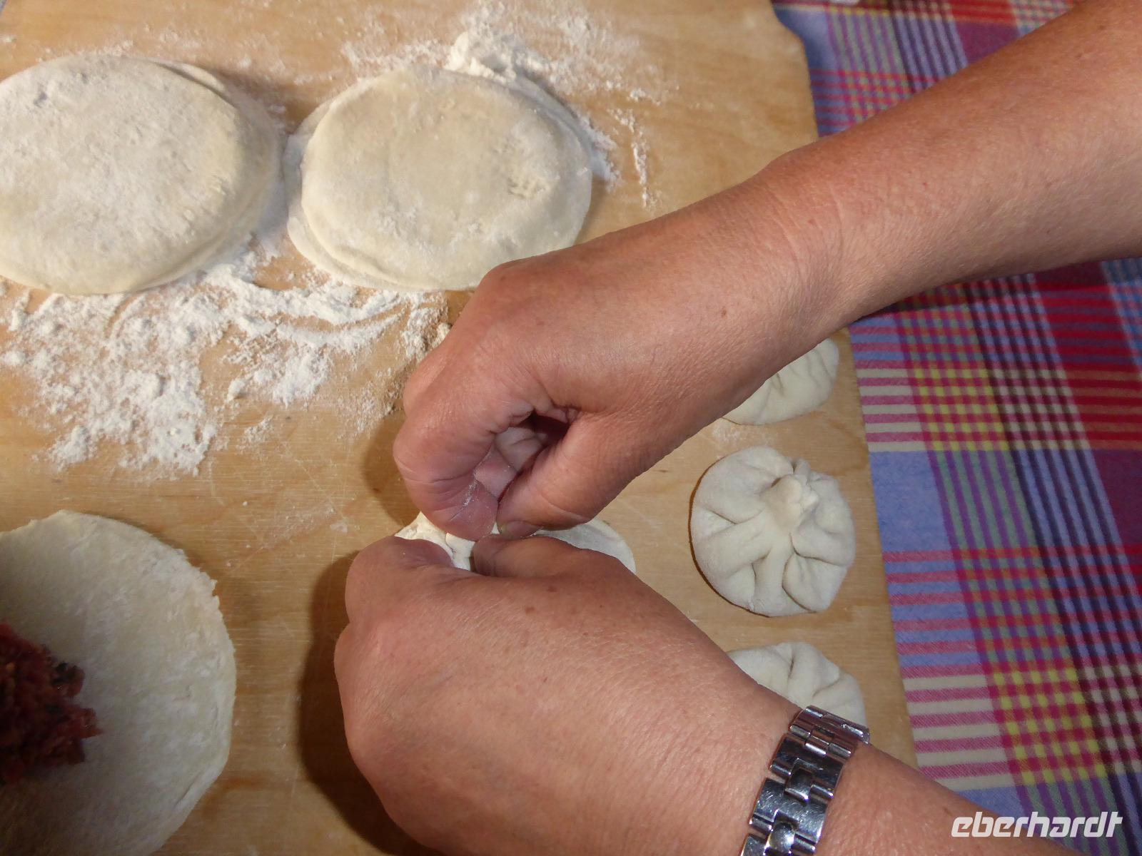 Mit gepackten Koffern treten wir unseren Weg nach Tbilissi an. Heute haben wir viel vor. Zunächst einmal stoppen wir am Georgischen Parlamentsgebäude, dass von außen wie eine Schildkröte aussieht. Man kann nur hoffen, dass die Parlamentarier nicht den Übereifer einer Schildkröte an den Tag legen. Unser nächstes Ziel ist Gori. Hier fahren wir jedoch erst einmal vorbei und besuchen Uplisziche, eine alte Höhlenstadt. Im 15. Und 16. Jahrhundert tobte hier das Leben. Es gibt einen roten Saal, einen einfachen Saal, eine Apotheke und andere geschichtsträchtige Höhlenzimmer. Mit ein bisschen Phantasie kann man sich das Leben damals hier vorstellen. Es ist sehr windig und wir (Frauen) wünschten, wir hätten unser Drei-Wetter-Taft dabei :-). Nach vielen Klettertouren erreichen wir den Ausgang, der über eine steile Treppe nach unten führt. Im Restaurant gönnen wir uns Kaffee und Kuchen - so viel Zeit muss sein. Nun geht es doch noch nach Gori, wo wir das Geburtshaus von Stalin besuchen. Auch in das Stalinmuseum werfen wir einen Blick. Will wirklich jemand Tassen, Flaschen oder andere, mit Stalins Konterfei verzierten Dinge, kaufen? Wir sind irritiert. Schnell weg hier. Wir fahren zu Iago und tauchen wir tief in den georgischen Alltag ein. Geschickt stellen wir uns beim Brot backen an. Auch das Falten der Khinkalitaschen klappt. Und aufgefädelte Walnüsse in eingedickten Traubensaft tauchen? Geschenkt! Das Abendessen haben wir uns verdient. Wie schön, dass uns georgische Sänger durch den Abend begleiten. Dato ist unser Tamar. Seine Trinksprüche sind ziemlich ernst. Wir trinken auf den Frieden und auf die Freundschaft. Auch wir tragen unser Lied zur Abendgestaltung bei. Wenn alle Brünnlein fließen, klingt doch gar nicht so schlecht, was? :-).