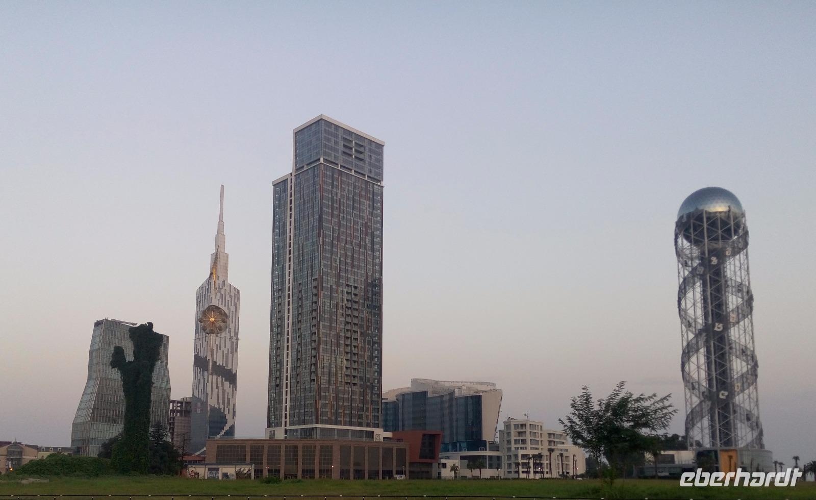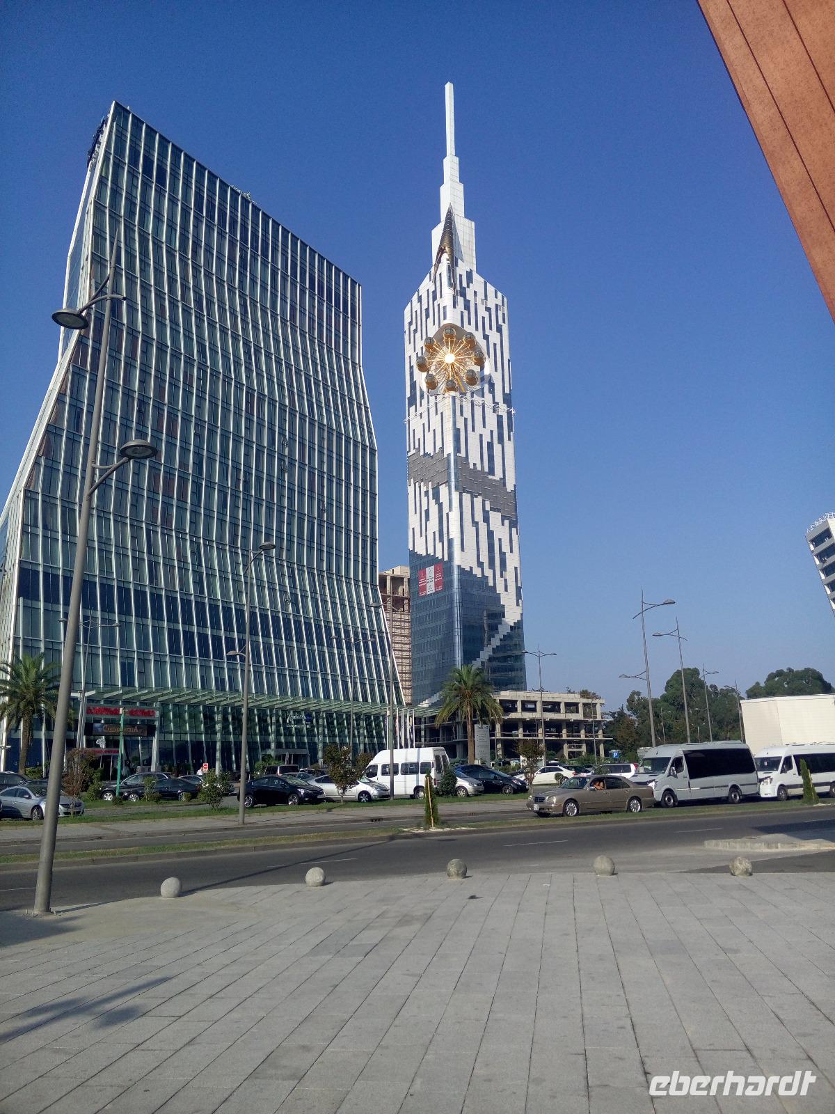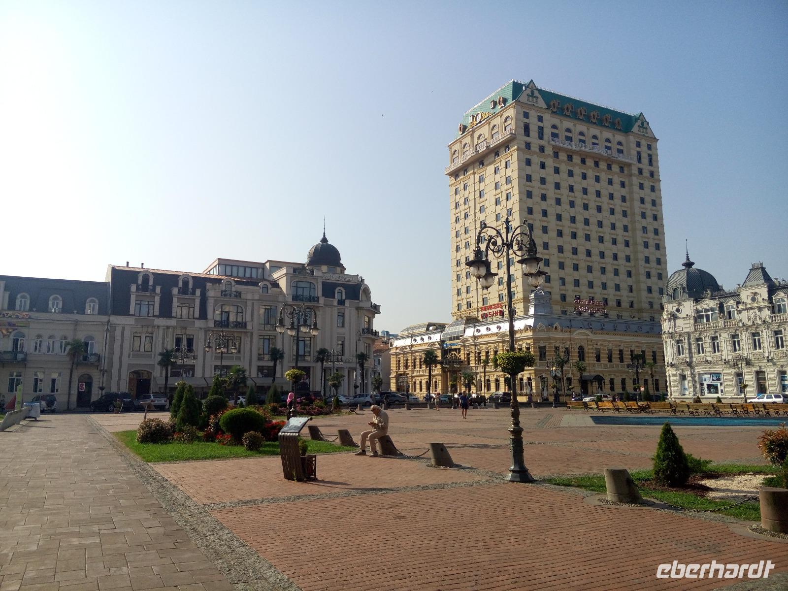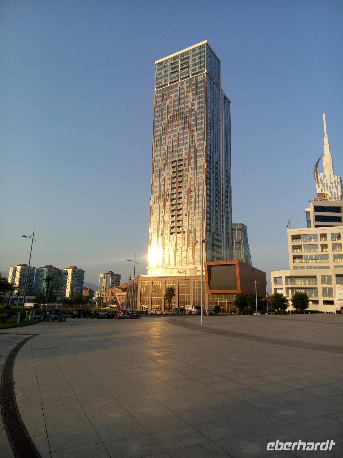 Wunderschönen Sonnenaufgang haben wir beobachtet als wir den Kieselstrand von Batumi entlanggingen. Einige von den Einheimischen waren auch schon unterwegs. Die Stadt wurde langsam wach. Nach dem Frühstück auf der Terrasse von Restaurant haben wir unseren Stadtrundgang mit Natja begonnen. Sie hat uns ein bisschen von der Geschichte erzählt, einige Legenden und Kuriositäten. Viele Fotos haben wir neben der Statue der Liebe von Ali und Nino gemacht. Wie viele architektonischen Objekte in der Stadt, dreht sich die Statue und die Figuren kommen einander näher.