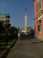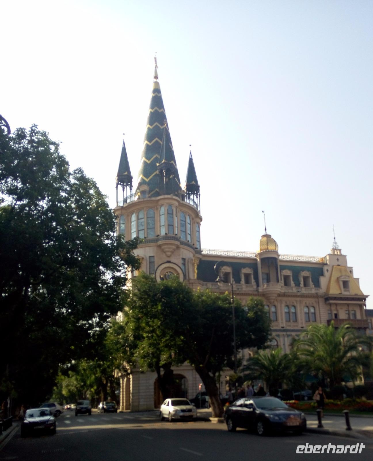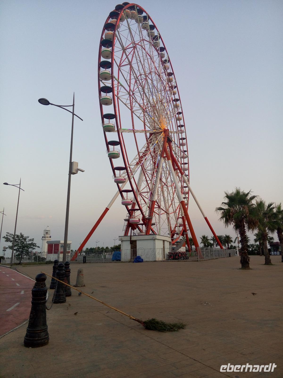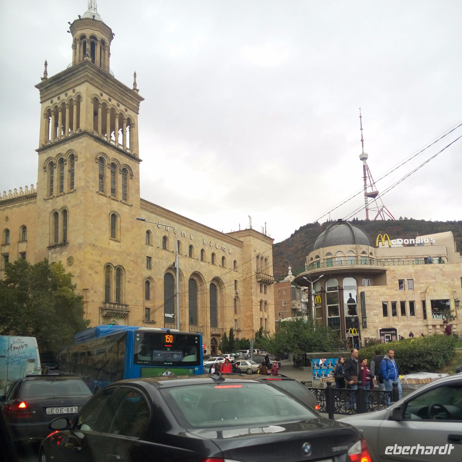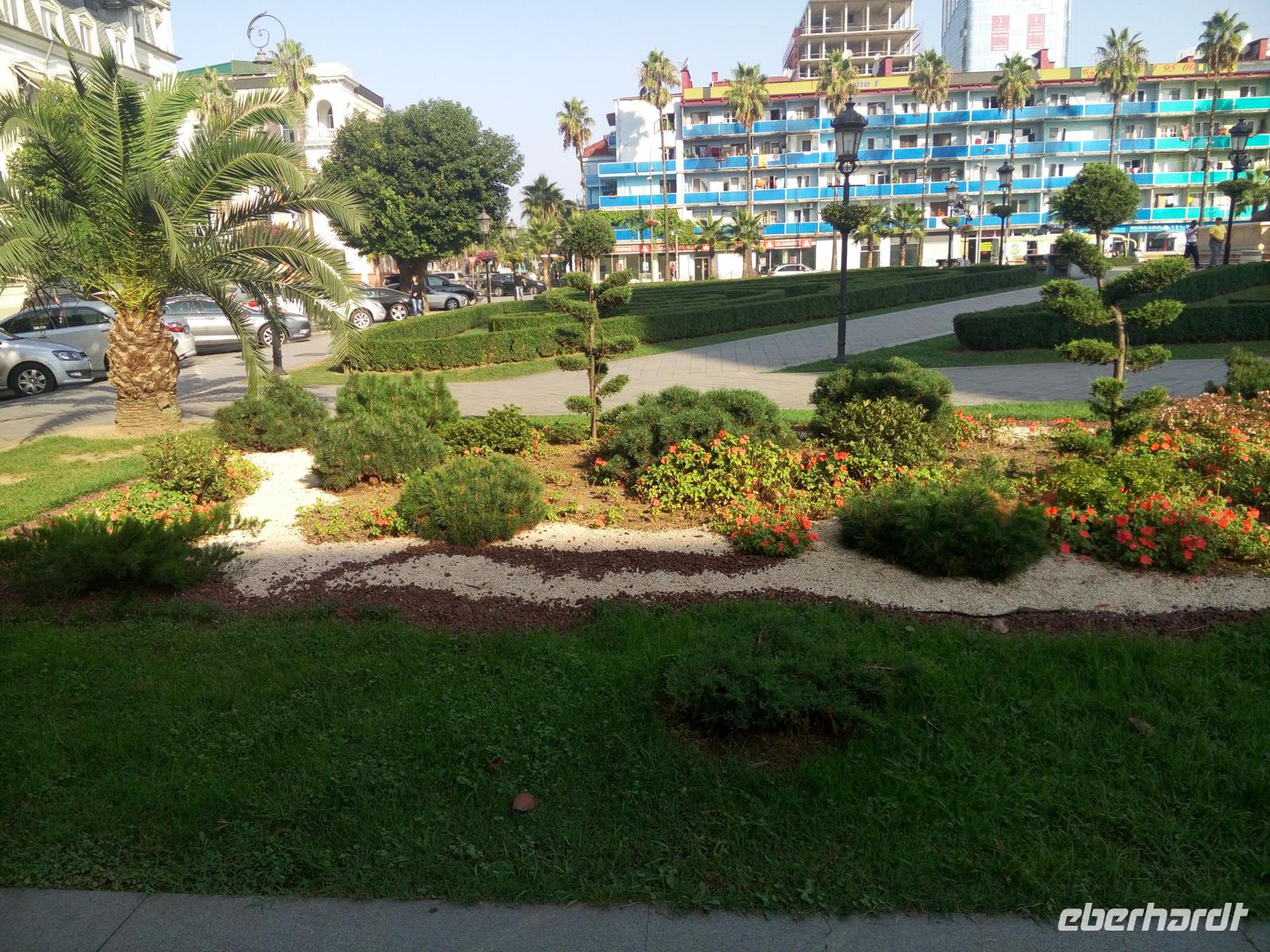 Wunderschönen Sonnenaufgang haben wir beobachtet als wir den Kieselstrand von Batumi entlanggingen. Einige von den Einheimischen waren auch schon unterwegs. Die Stadt wurde langsam wach. Nach dem Frühstück auf der Terrasse von Restaurant haben wir unseren Stadtrundgang mit Natja begonnen. Sie hat uns ein bisschen von der Geschichte erzählt, einige Legenden und Kuriositäten. Viele Fotos haben wir neben der Statue der Liebe von Ali und Nino gemacht. Wie viele architektonischen Objekte in der Stadt, dreht sich die Statue und die Figuren kommen einander näher.
