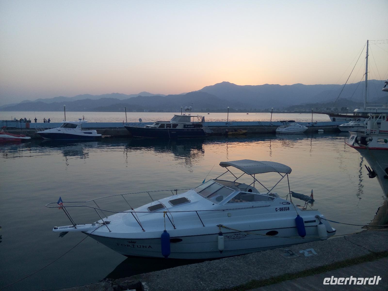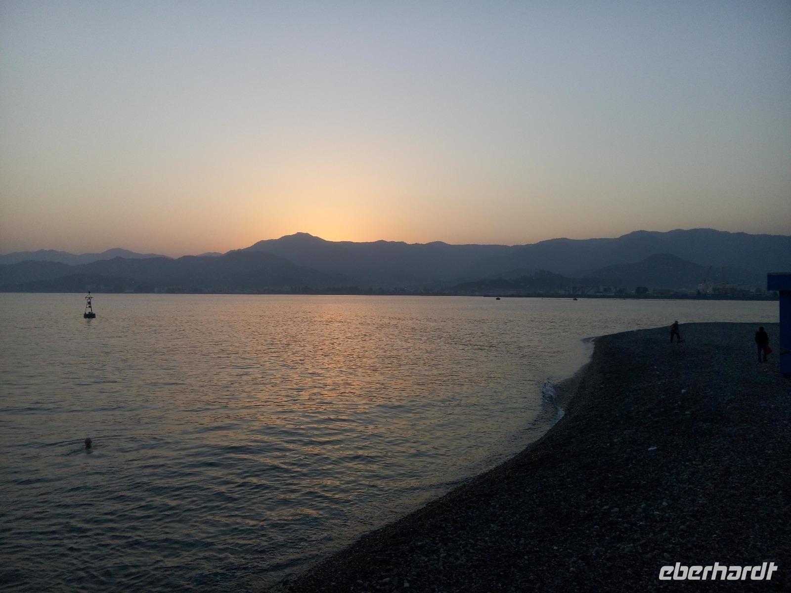 Am nächsten Tag früh haben wir uns verabredet, vor dem Frühstück zu baden. Das Hotel ist ganz in der Nähe vom Strand und von der Strandpromenade. Es war ein herrlicher Morgen. Eigentlich wollten wir mehr Personen sein, aber man muss bedenken, dass die Zeit in Georgien 2 Stunden früher ist. Das war schon eine Heldentat, um 7 Uhr aufzustehen, da es in Deutschland 5 Uhr früh ist.