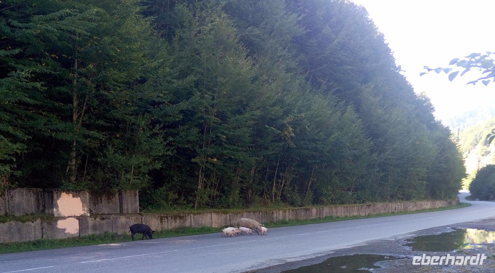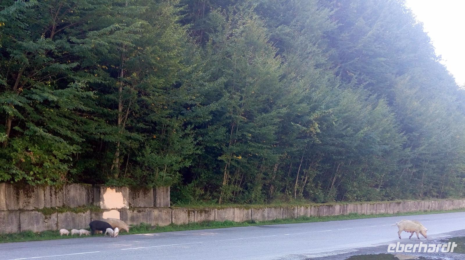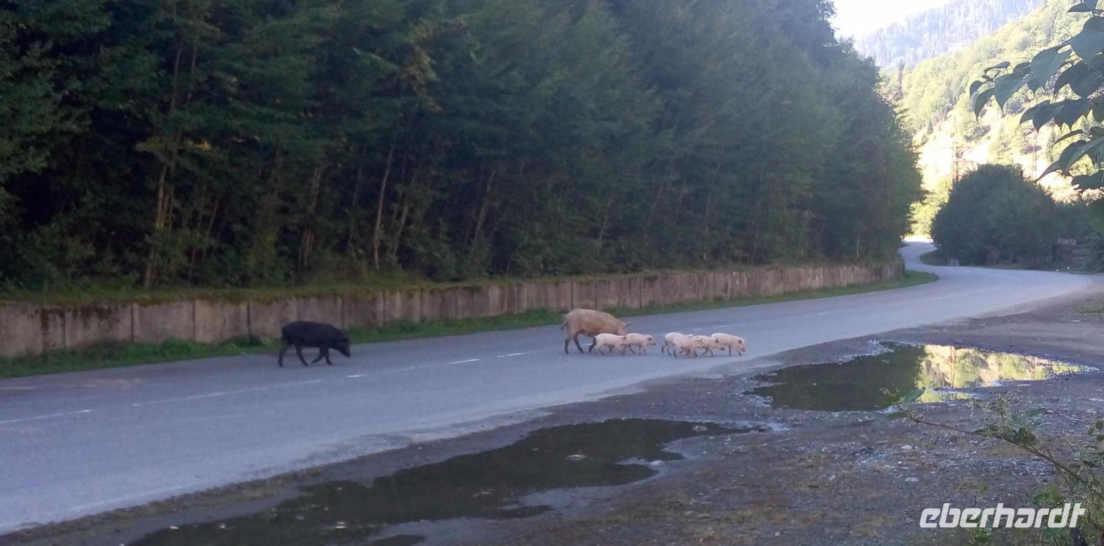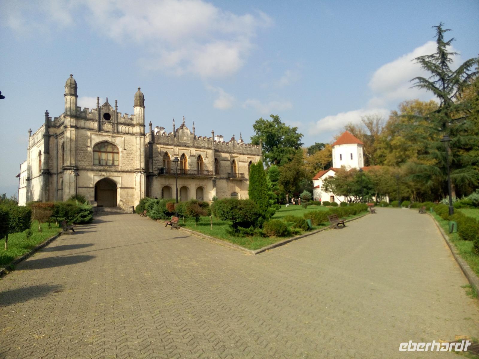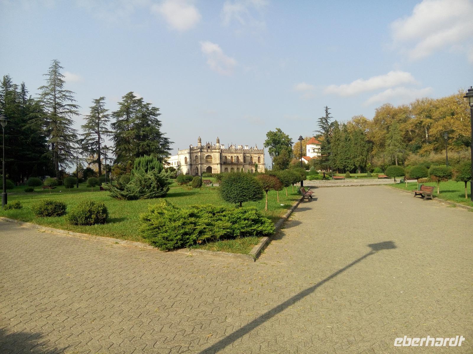 Gestärkt, haben wir den Dadiani Palast besucht. Das interessanteste dabei war natürlich die Führung. Die Dame schien eine echte Fan von den Dadianis sein, so emotionell hat sie die Geschichte von dieser Familie erzählt. Wir dürften nicht widersprechen, auch nicht fotografieren oder sonstiges. Unsere Strafe wäre... keine Ahnung, aber wir haben gezittert nur bei dem Gedanken, wir könnten etwas falsch machen. Gott sei Dank, die Dadianis haben uns alle freigelassen. Glücklich, sind wir weiter gerollt, hier und da Pausen gemacht, den Kühen und Schweinchen gewunken, die wir überall freilaufend auf den Strassen beobachtet haben.