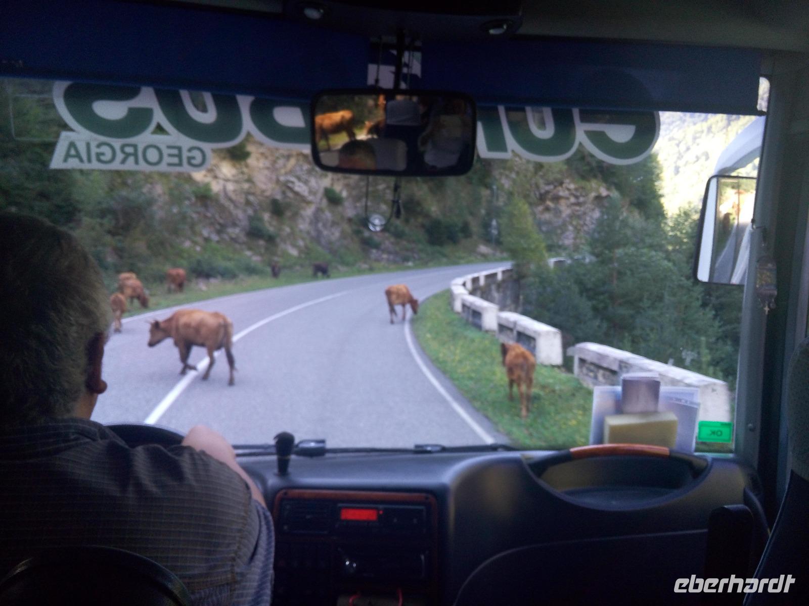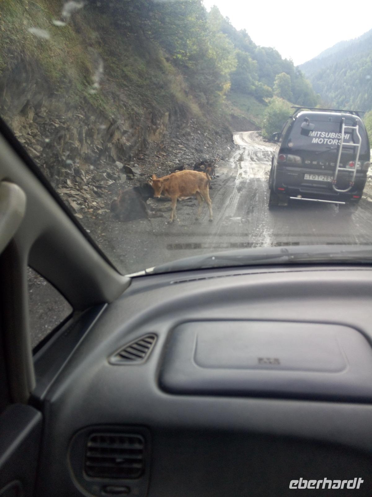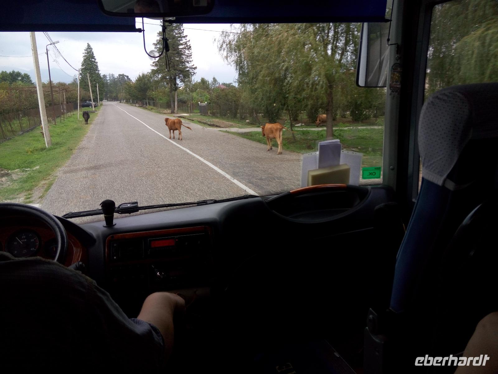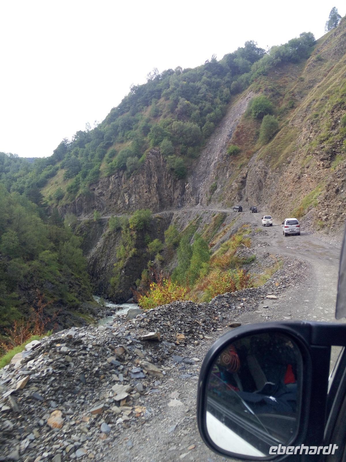 Das ist gar nicht so weit von der Kilometeranzahl, aber es gibt viele Strassenarbeiten in Georgien und einige Strassen sind noch nicht repariert. Deswegen kann eine Reise von 250 km schon mehr als die Hälfte des Tages dauern.