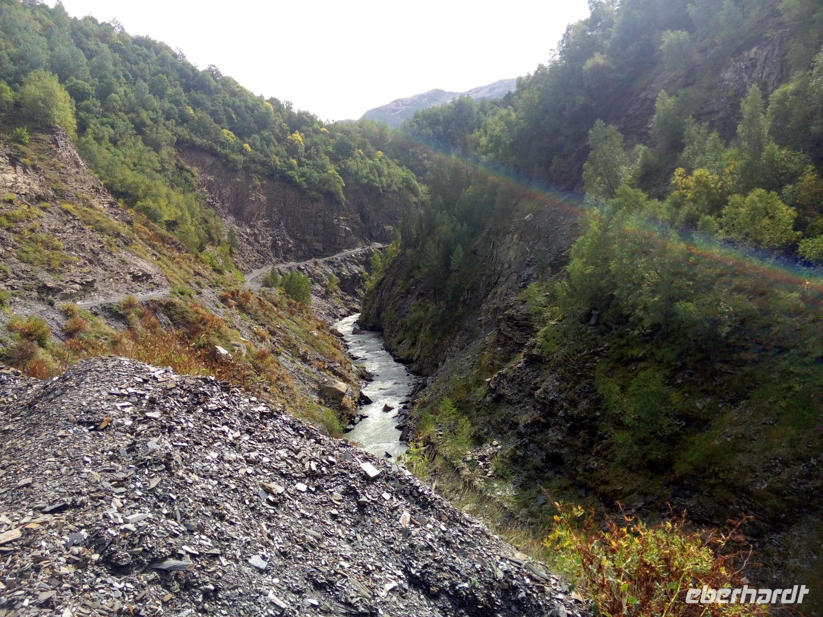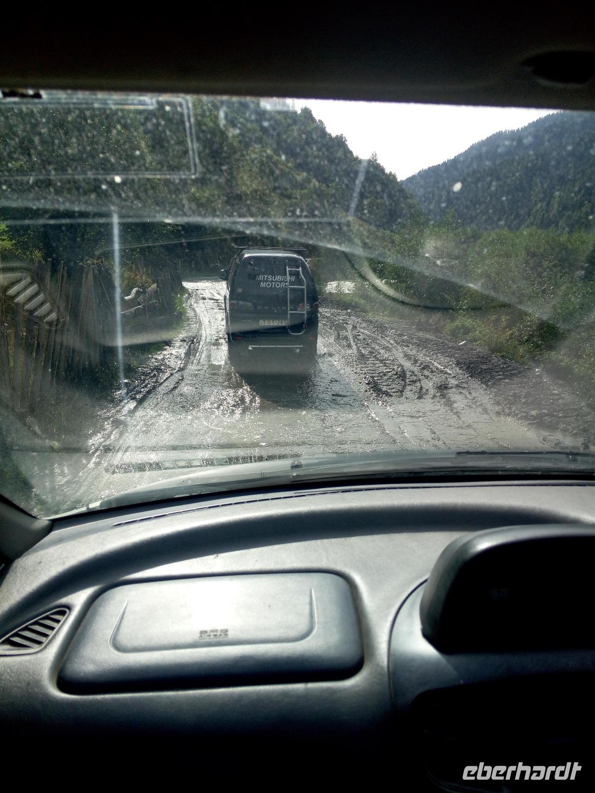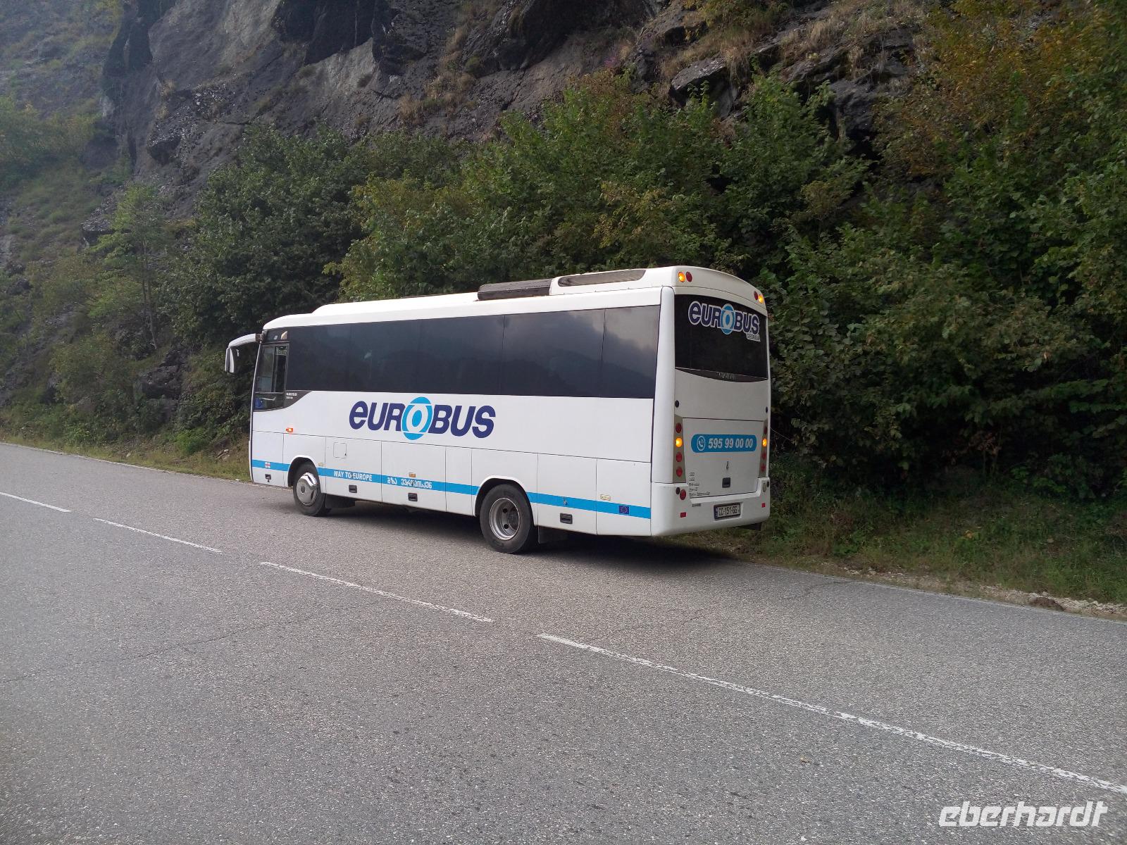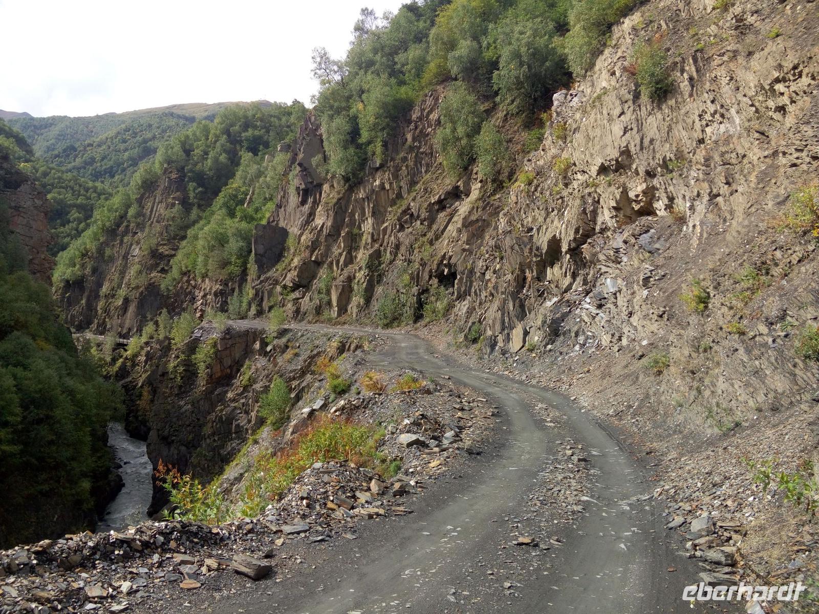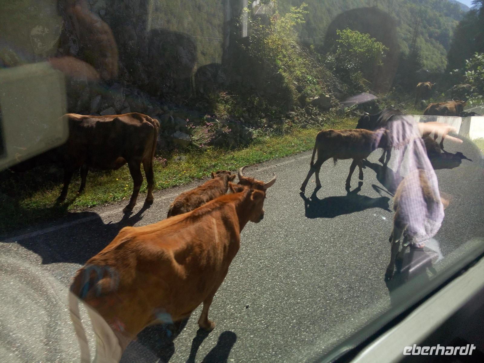 Das ist gar nicht so weit von der Kilometeranzahl, aber es gibt viele Strassenarbeiten in Georgien und einige Strassen sind noch nicht repariert. Deswegen kann eine Reise von 250 km schon mehr als die Hälfte des Tages dauern.
