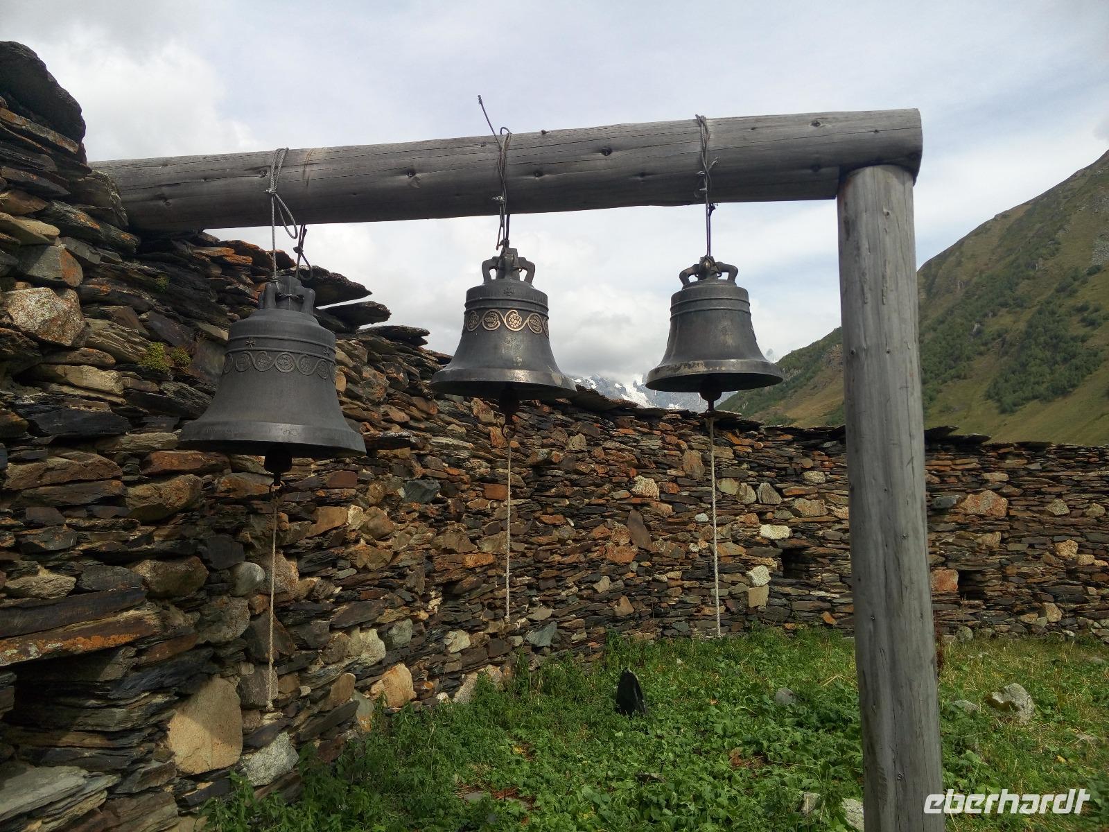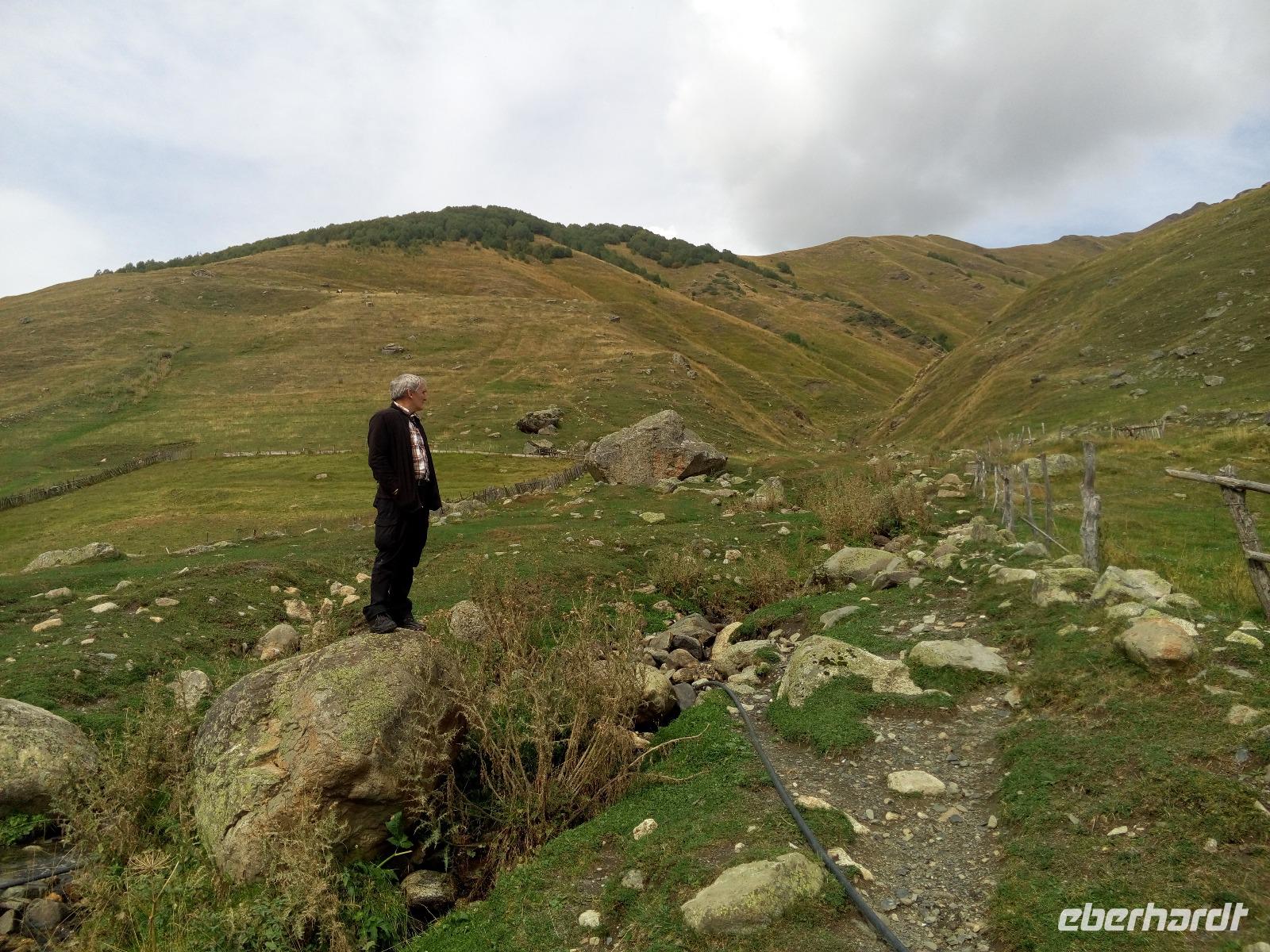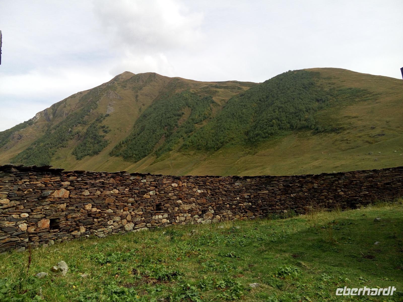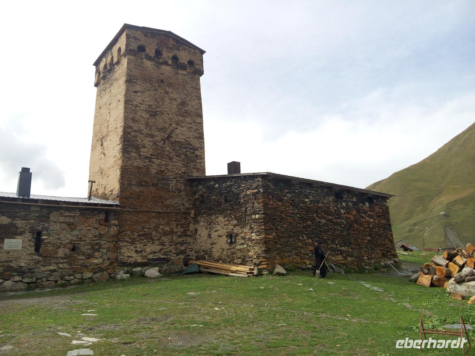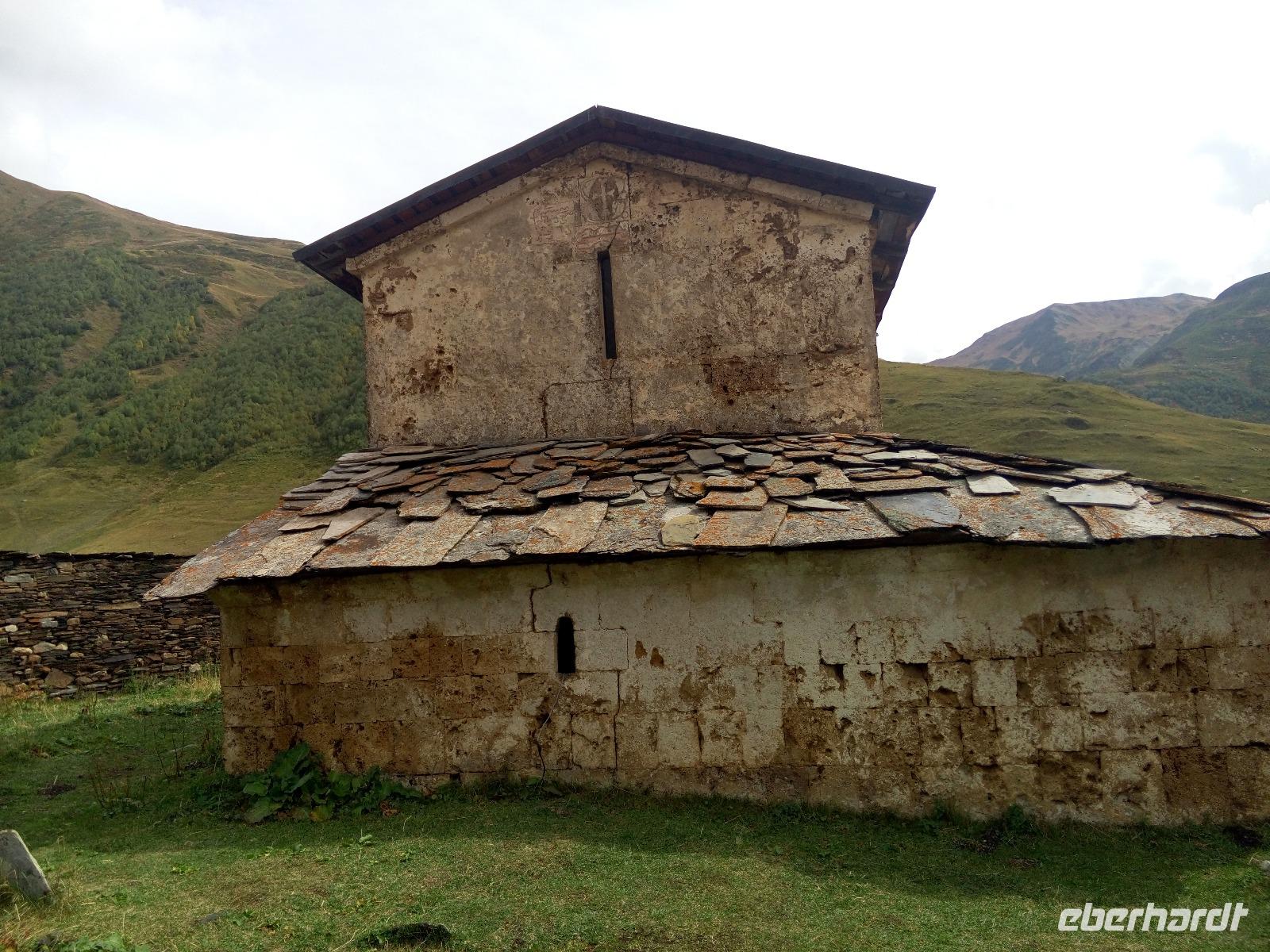 Uschguli, so heisst eine Gemeinschaft von 4 Dörfern, die sich auf der Höhe von 2200 Meter über dem Meeresspiegel befindet. Sie gilt als höchste in Europa. Da gibt es eine kleine Schule, 70 bis 80 Familien leben dort. Unsere Hinfahrt hat ca. 2,5 Stunden gedauert. In dieser Zeit haben wir die Distanz von 40-50 km gemacht, die Mestia von Uschguli trennen. Da haben wir grade den Satz von Vormittag verstanden: "nicht gut" entspricht vollkommen der Wahrheit, aber man freut sich, dass es überhaupt einen Weg gibt, daher die Fortsetzung "aber auch nicht sehr schlecht". Ich kann Euch versichern, dass das, was "sehr schlecht" ist, wollte ich nicht erleben. ;-)