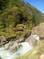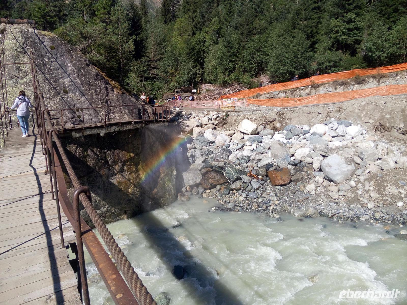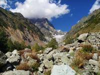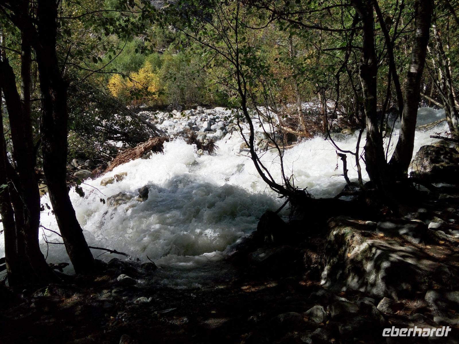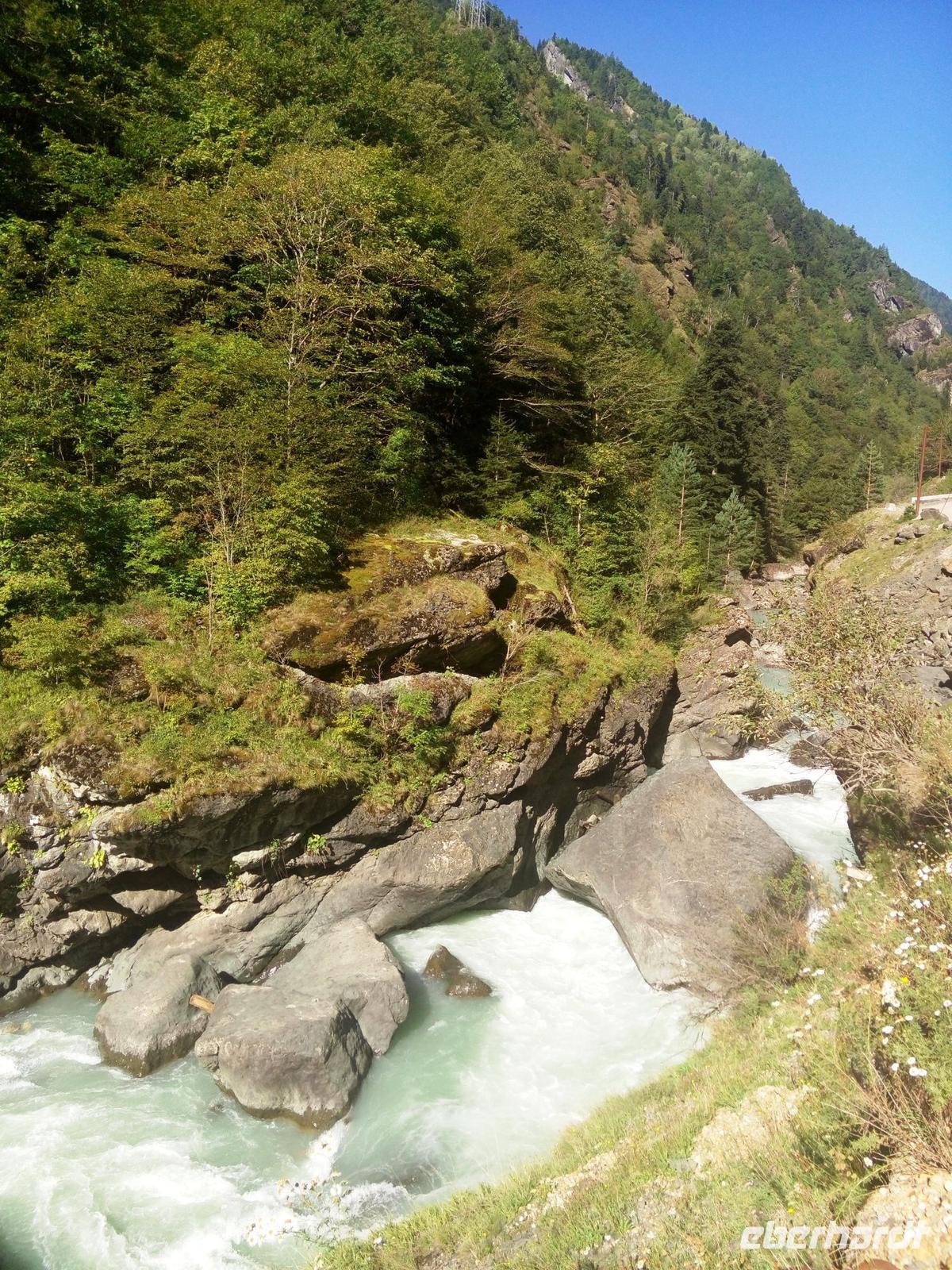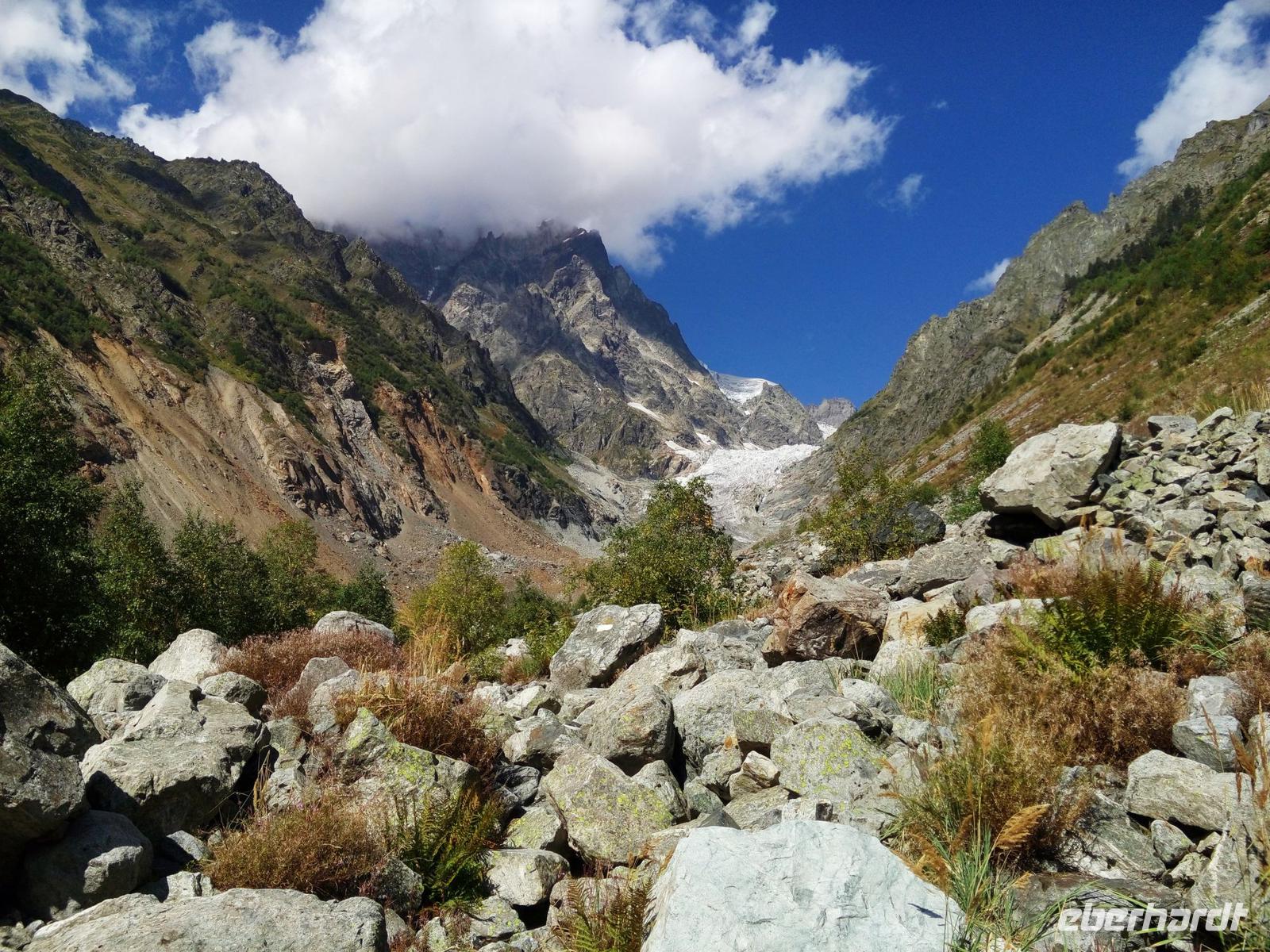 Heute früh waren Natja und ich einkaufen. Es wurde eine Wanderung zu dem Gletscher angesagt und wir haben ein Picknick vorbereitet. Pünktlich um 10:07 haben wir angefangen. Nach ca. 30 minütigen Fahrt mit unseren Jeeps sind wir ausgestiegen, haben eine kleine Brücke überquert und unsere Wanderung angefangen. Der Weg lief im Wald, war sehr angenehm. Der erste Teil war nicht so anstrengend, aber nach ca. 1,5 km wurde es komplizierter. Überall lagen große Steine. Bei dem Gletscher war viel los. Es war eine Gruppe von 30 Russen dabei. Wir haben nur den ersten Teil von dem Gletscher gesehen. Die Blicke waren herrlich, das Wetter war fantastisch. Sogar auf dieser Höhe war es warm. Ein Teil von den Russen ist mit ihrem Guide noch höher gegangen. Aber da brauchte man viel mehr Erfahrung, bessere Schuhe und so weiter. Wir entgegen sind nach einer Pause zurückgekehrt. Auf der Hälfte der Strecke haben wir ein Lagerfeuer gemacht und ein kleines Picknick vorbereitet. Aus den Ästen die überall lagen, haben wir paar Spieße gebastelt und Brot und Wurst auf dem Feuer gebraten. Mmmm, war das lecker. In Georgien, wie in Russland, kann man Feuer überall machen, es ist nicht verboten. Der Fluss mit dem kalten Wasser war daneben, da haben wir Bier und Wein kaltgestellt. Später haben wir das Wasser benutzt um das Feuer gründlich zu löschen.