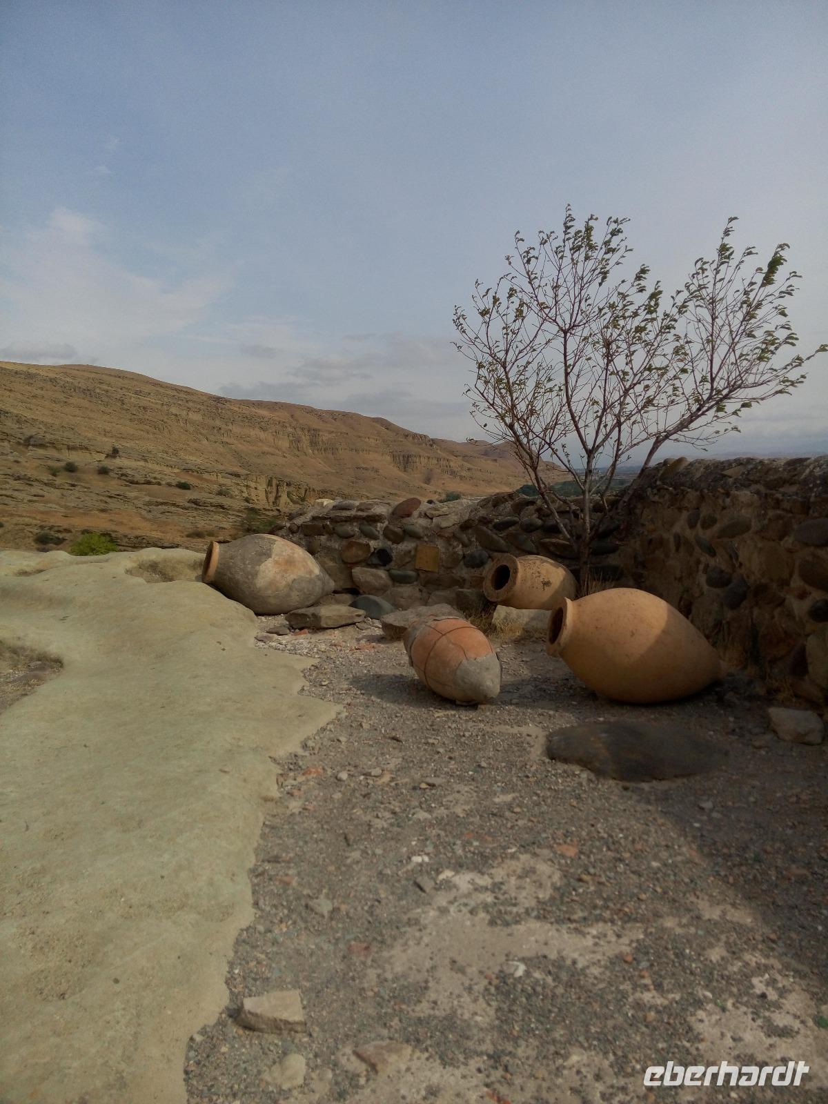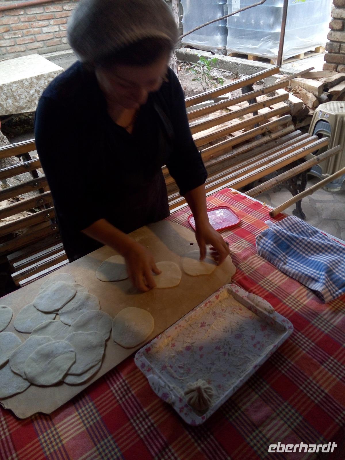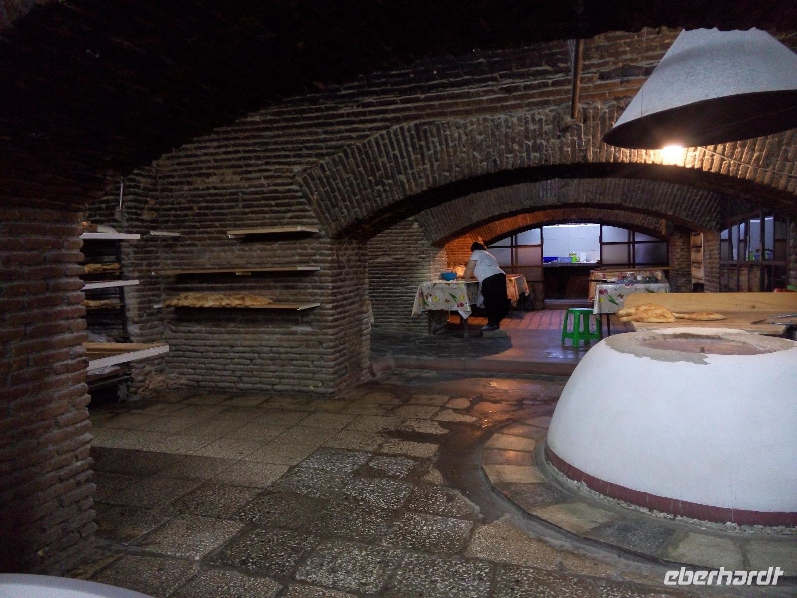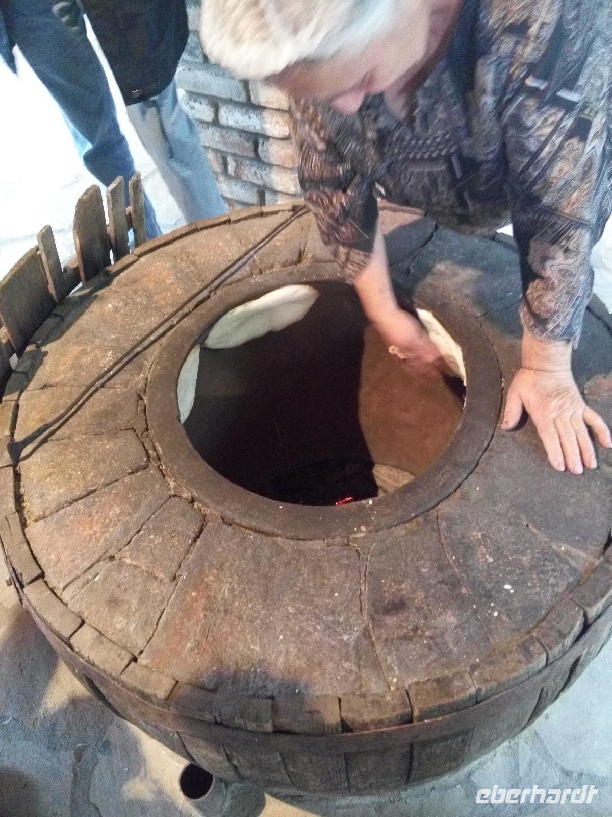Die Höllenstadt Uplisziche wurde im 6. Jh v. Chr. gegründet. Bis zum 19 Jh. haben dort Leute gewohnt. In der Goldzeit von Uplisziche gab es dort mehr als 700 Höllen. Jetzt gibt es ca. 150. Die Stadt befindet sich auf einem Plateau, deswegen ist dort oftmals Wind. Nachdem wir viele viele Fotos gemacht haben und in fast jede Hölle eingestiegen sind, sind wir wieder Richtung Gori gefahren, wo wir eine kleine Pause bei dem Museum von Stalin gemacht haben, ein paar Souvenirs eingekauft, sein Geburtshaus gesehen und weiter zu der Familie Iago unseren Weg fortgesetzt. Bei dem Bauernhof von der Familie Iago, wo wir gegen 16.30 angekommen sind, konnte man selbst das traditionelle georgische Brot braten, Hinkali vorbereiten, Chacha verkosten oder die Tschurtschchela machen. Man konnte auch den georgischen Weinkeller besuchen, wo der Wein im großen Amphoren in der Erde begraben ist. Am Anschluss hatten wir ein Abendessen bekommen, auch von den Produkten die wir selbst gemacht haben. Natürlich, gab es auch Schaschlik, ein Fleisch, was am Spieß gebratenen ist. Damit wir etwas mehr von den Sitten und Traditionen von Georgien erfahren, wurde eine Folkloregruppe eingeladen. Besonders schön waren die roten traditionellen Kleider von den Männern aus der Folkloregruppe. Bei den Trinksprüchen und georgischen Liedern ist die Zeit geflogen. Schon waren wir wieder unterwegs, Richtung Tbilisi.